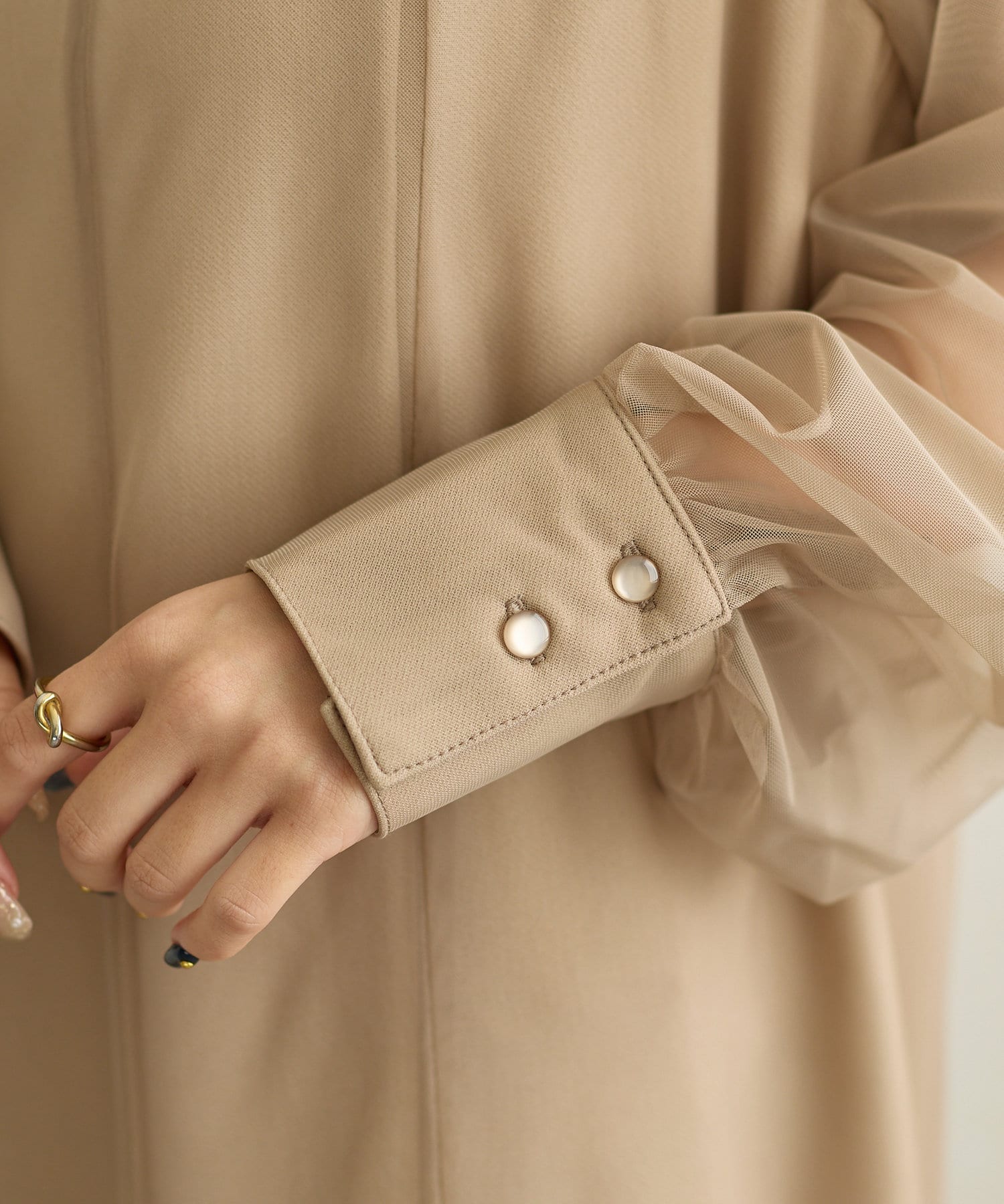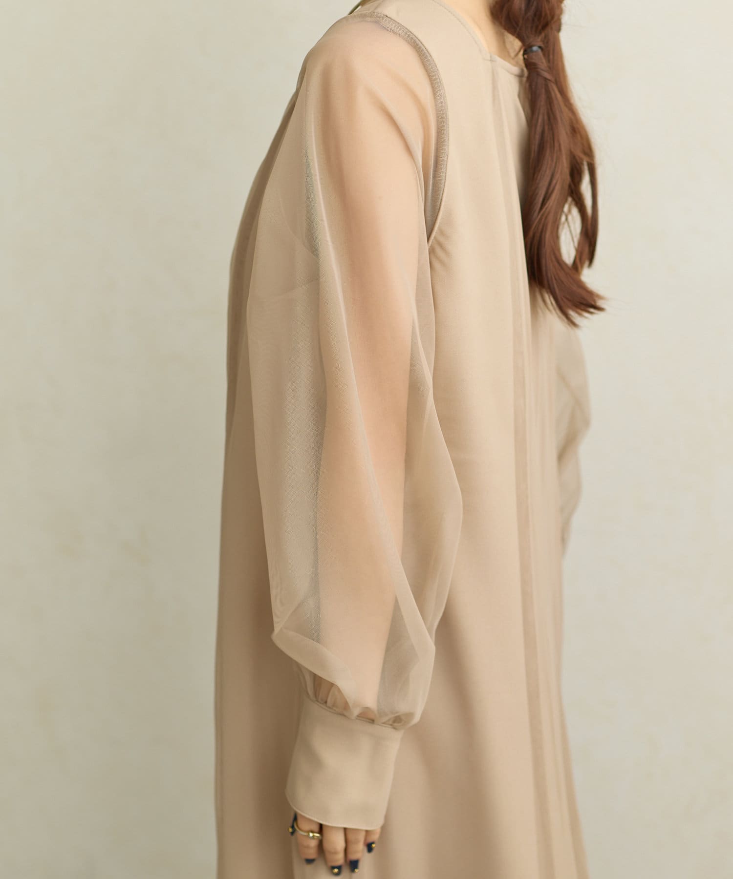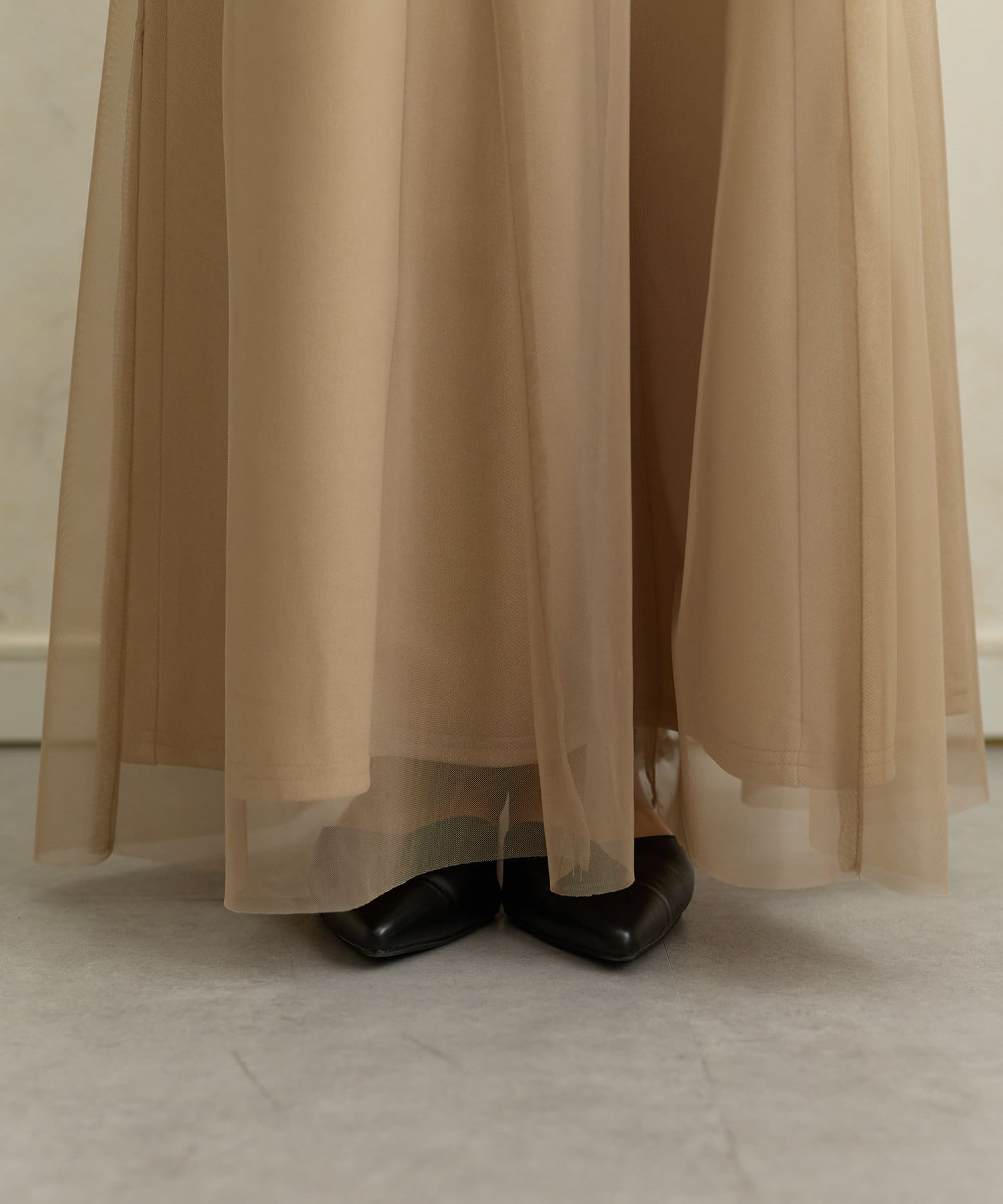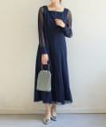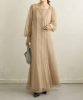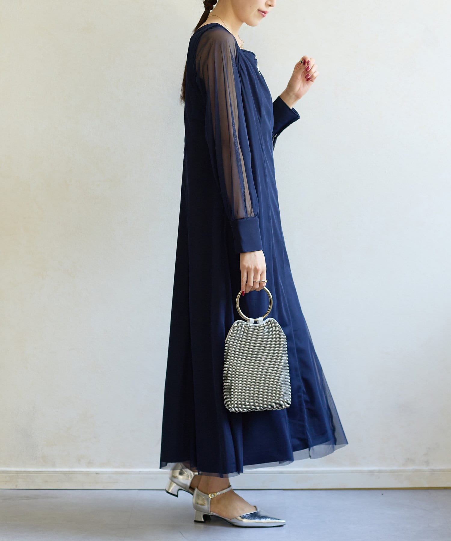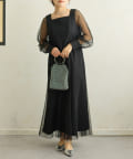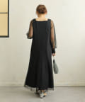 【オケージョン】スクエアネック袖チュールマーメイドワンピース