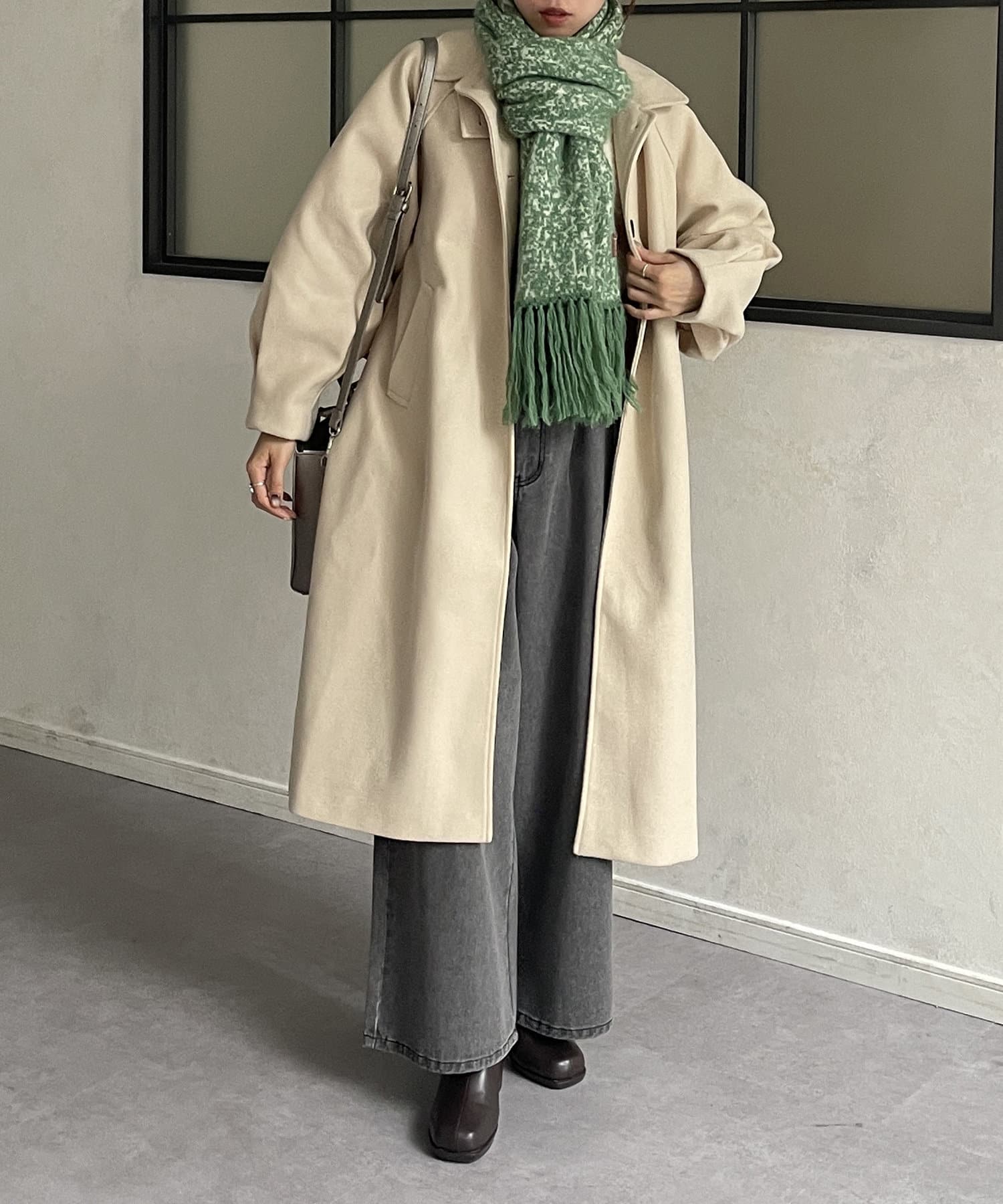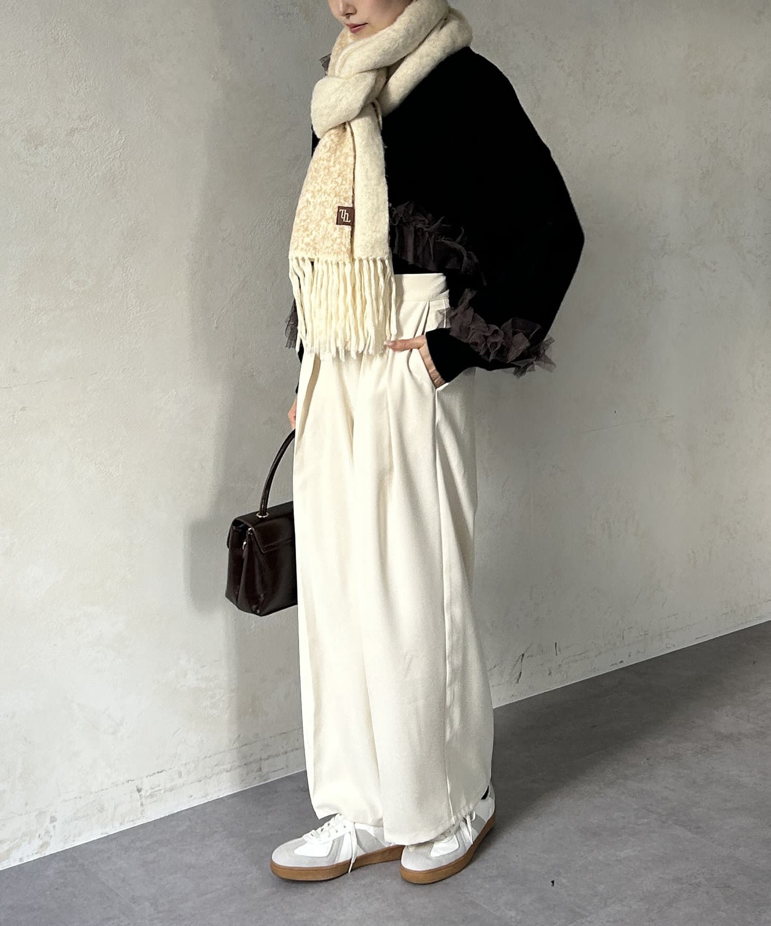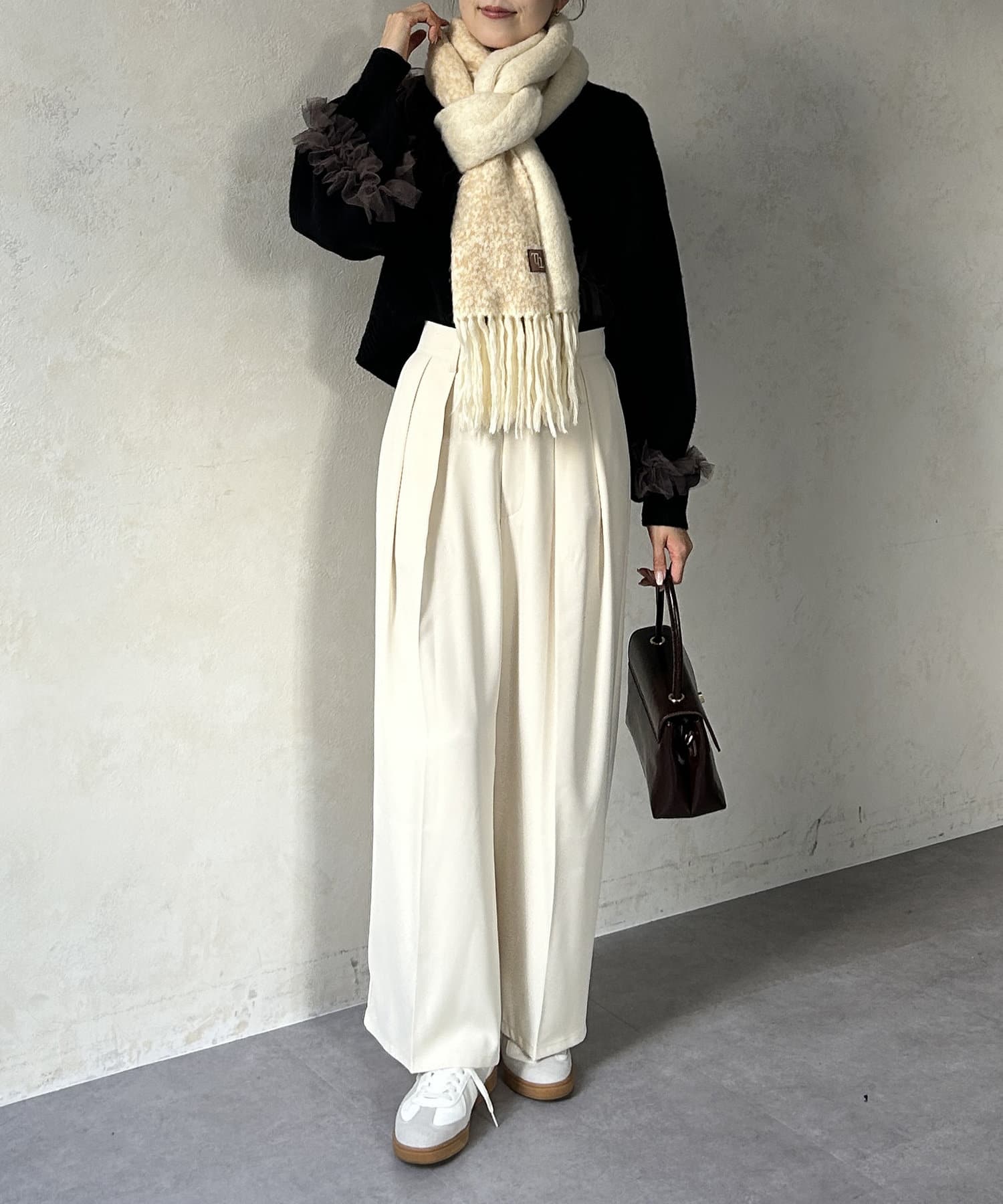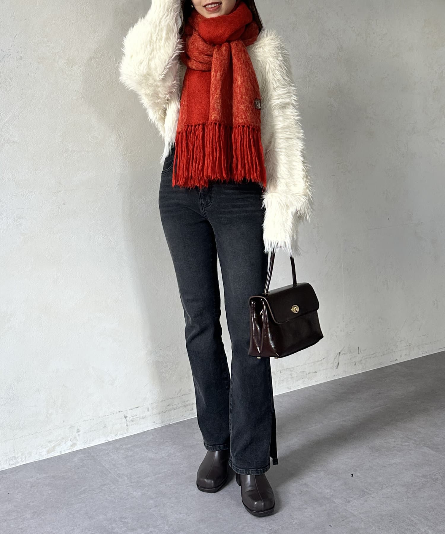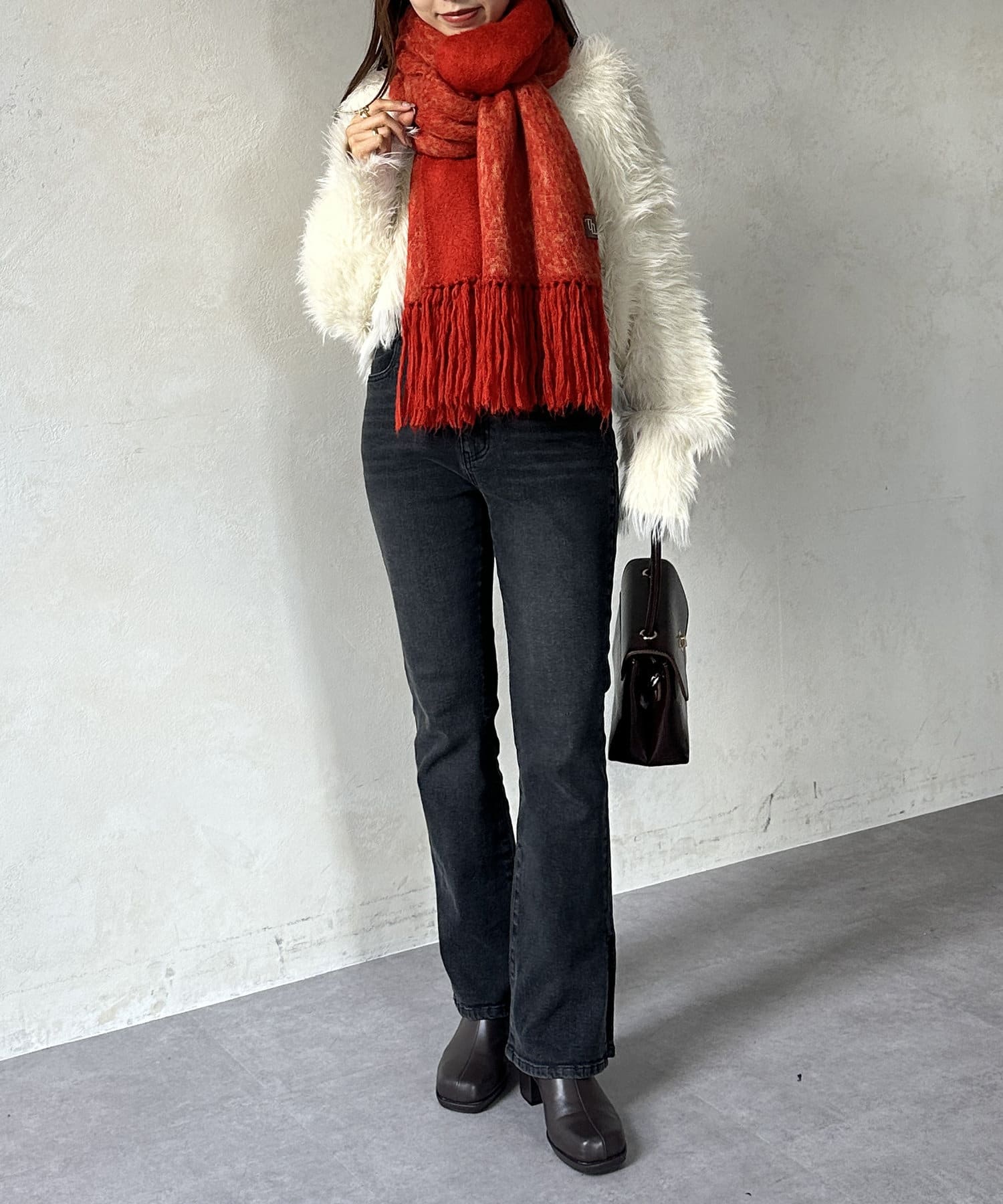 タイトスカートまで幅広いコーデに合う万能マフラーです◎
