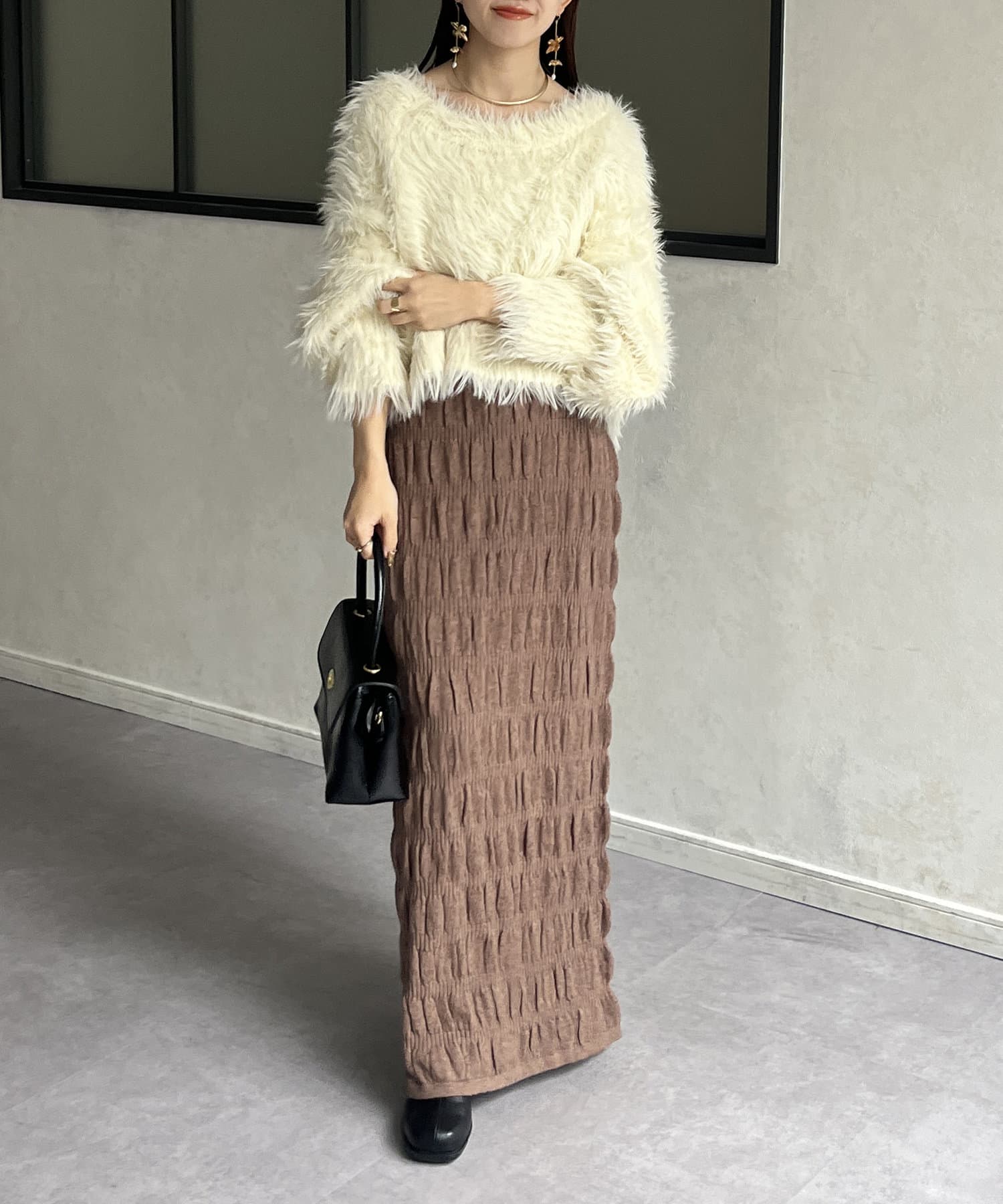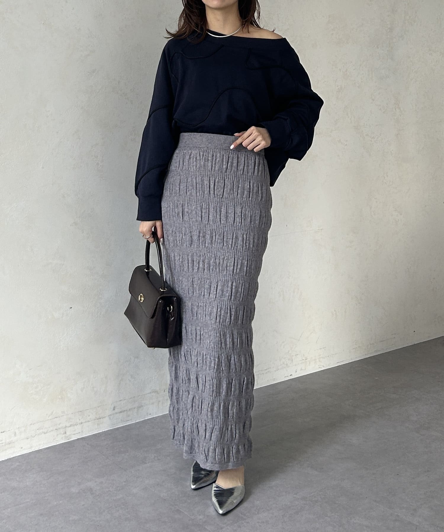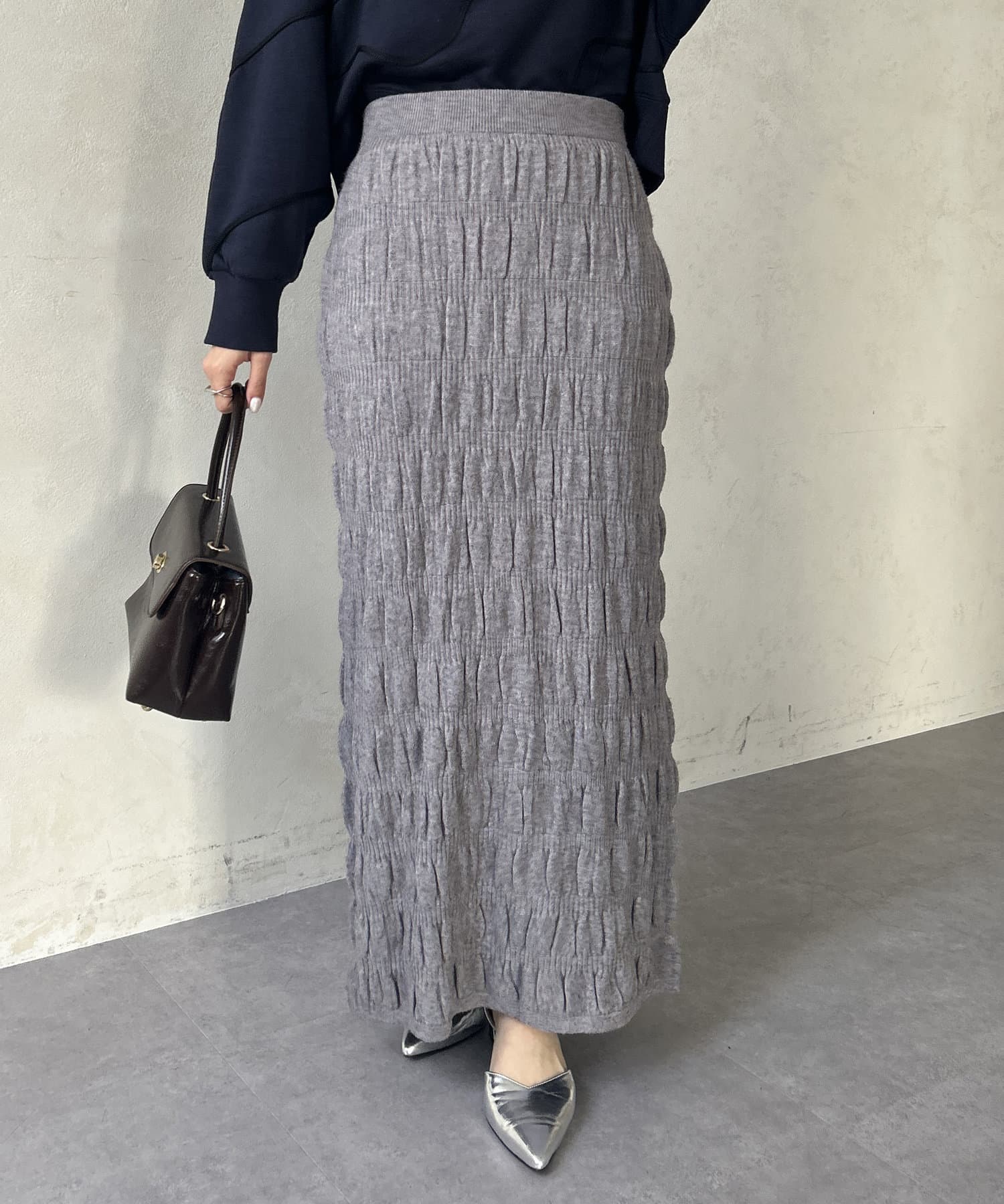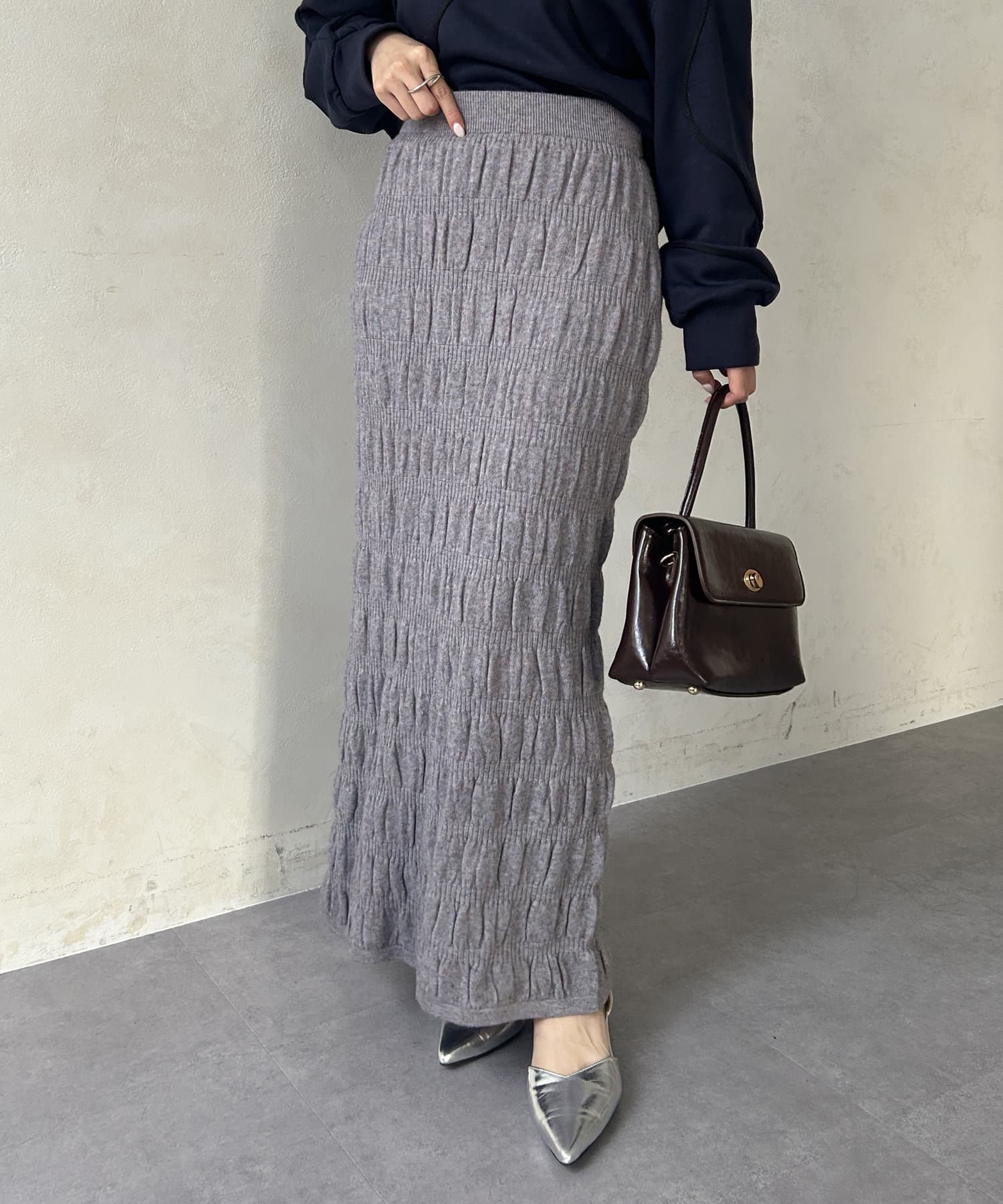 #スカート #ニットスカート #シャーリング