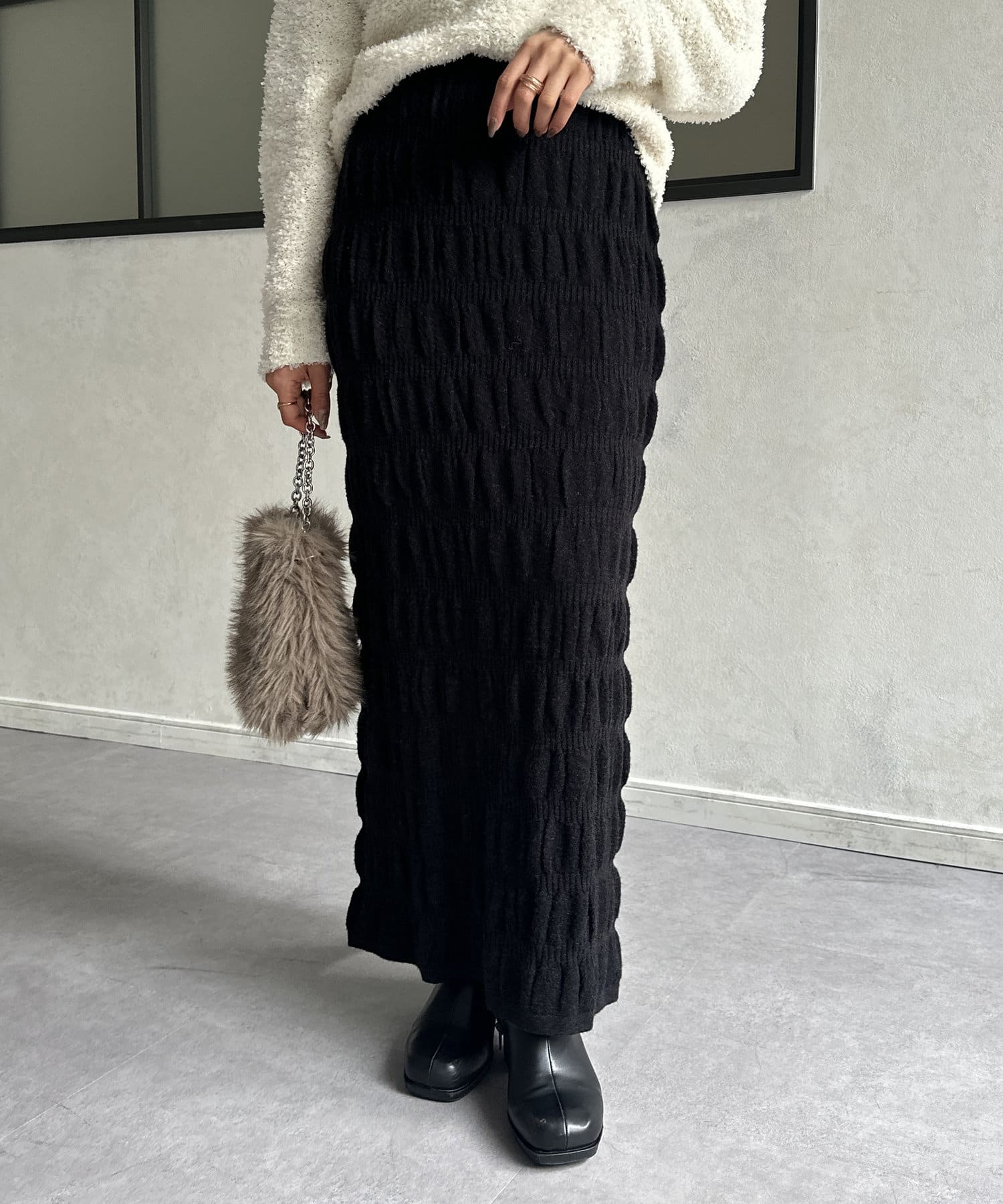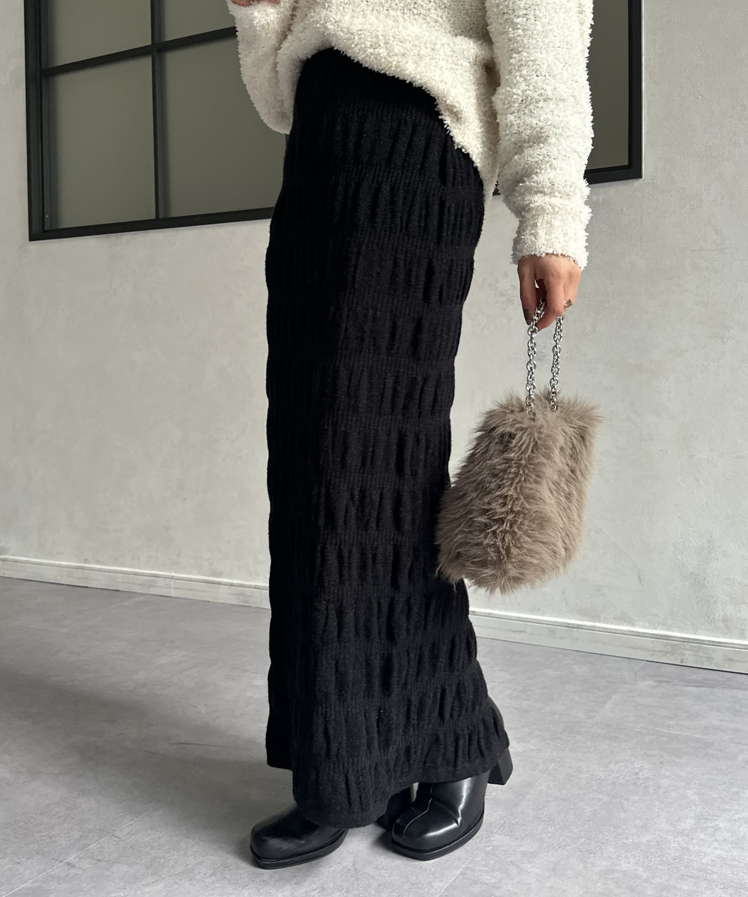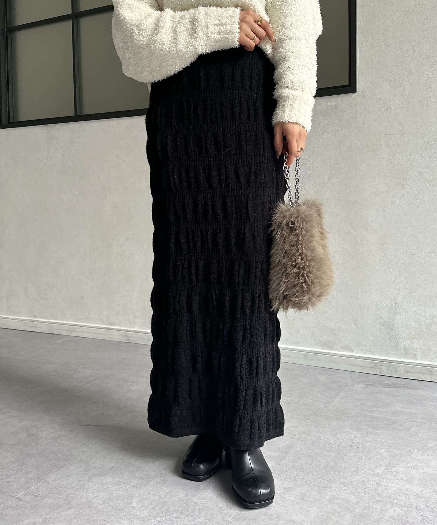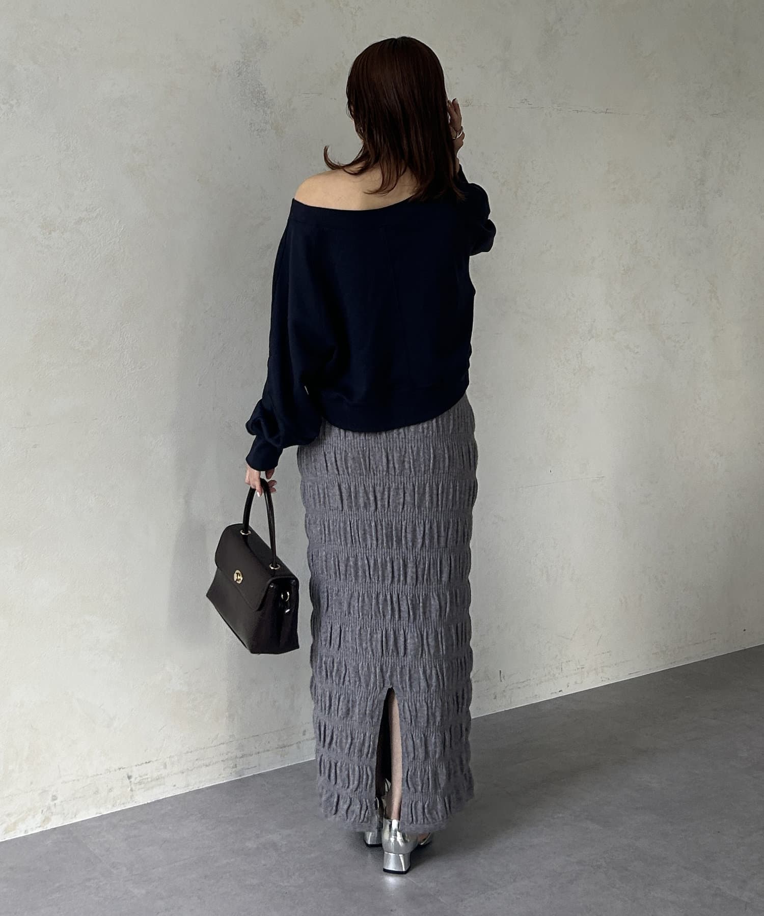 #スカート #ニットスカート #シャーリング