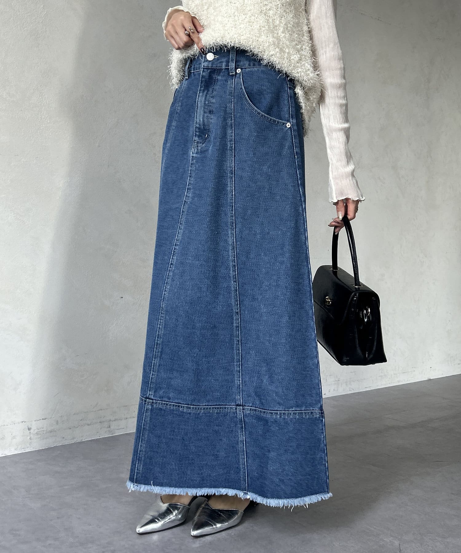 フレアラインが上品に広がるデニムスカート