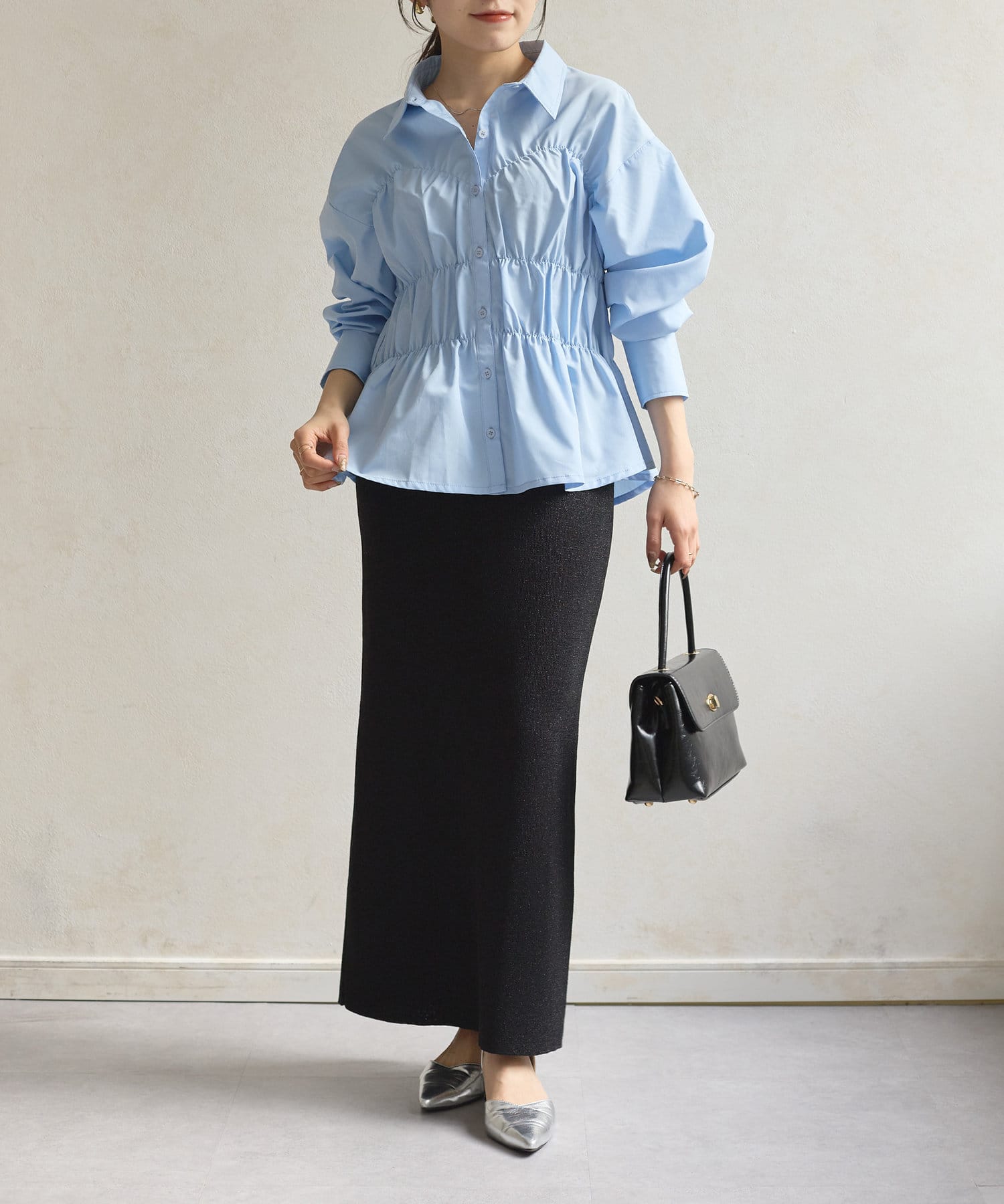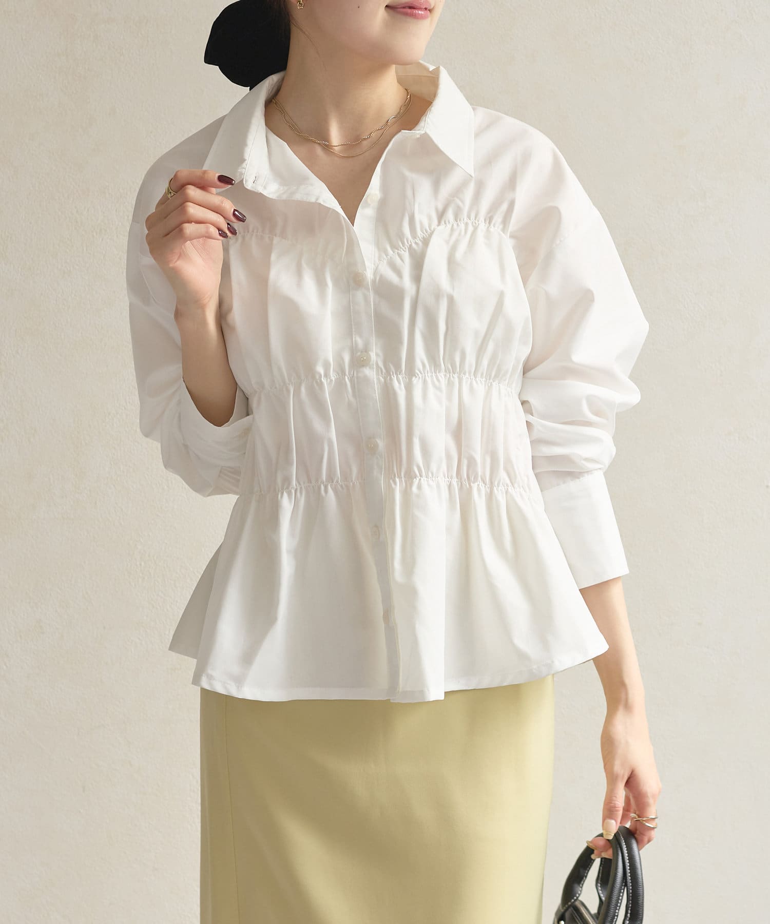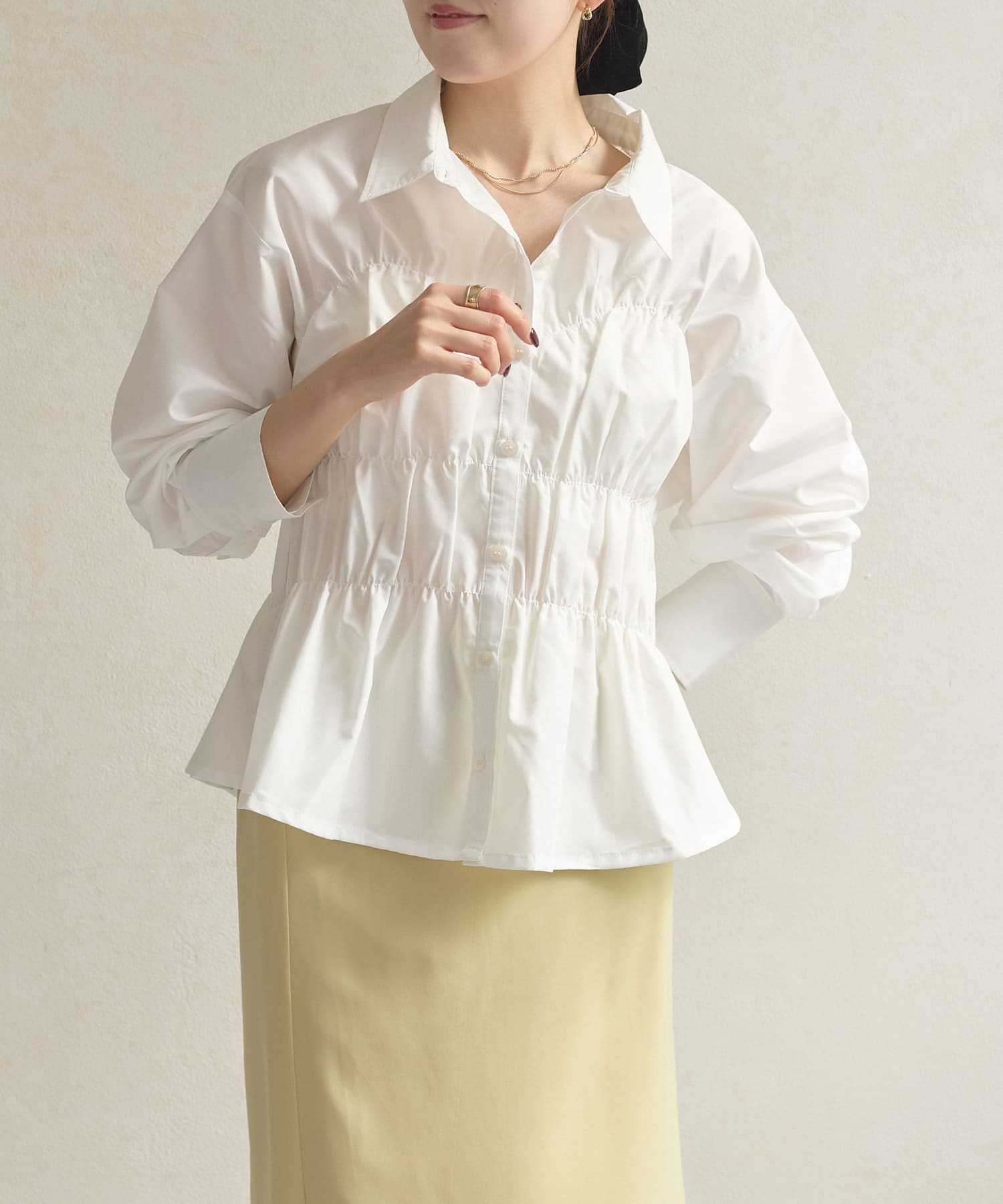 #シャツ #カラーシャツ #ビスチェシャツ #シャーリングデザイン