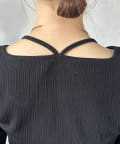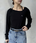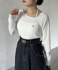 アシメネックホルター刺繍ロゴプルオーバー