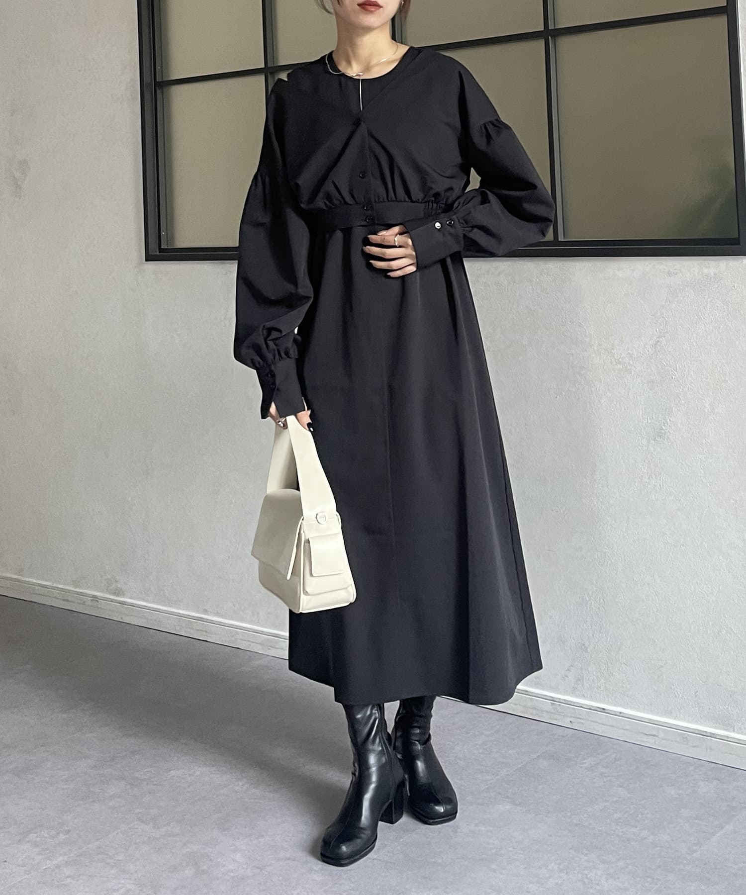 ワンピースも1枚で着用していただけるので、幅広いコーデが