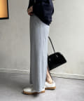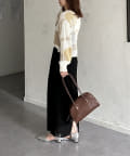 ・タイトなニット合わせで縦ラインを強調したきれいめコーデは