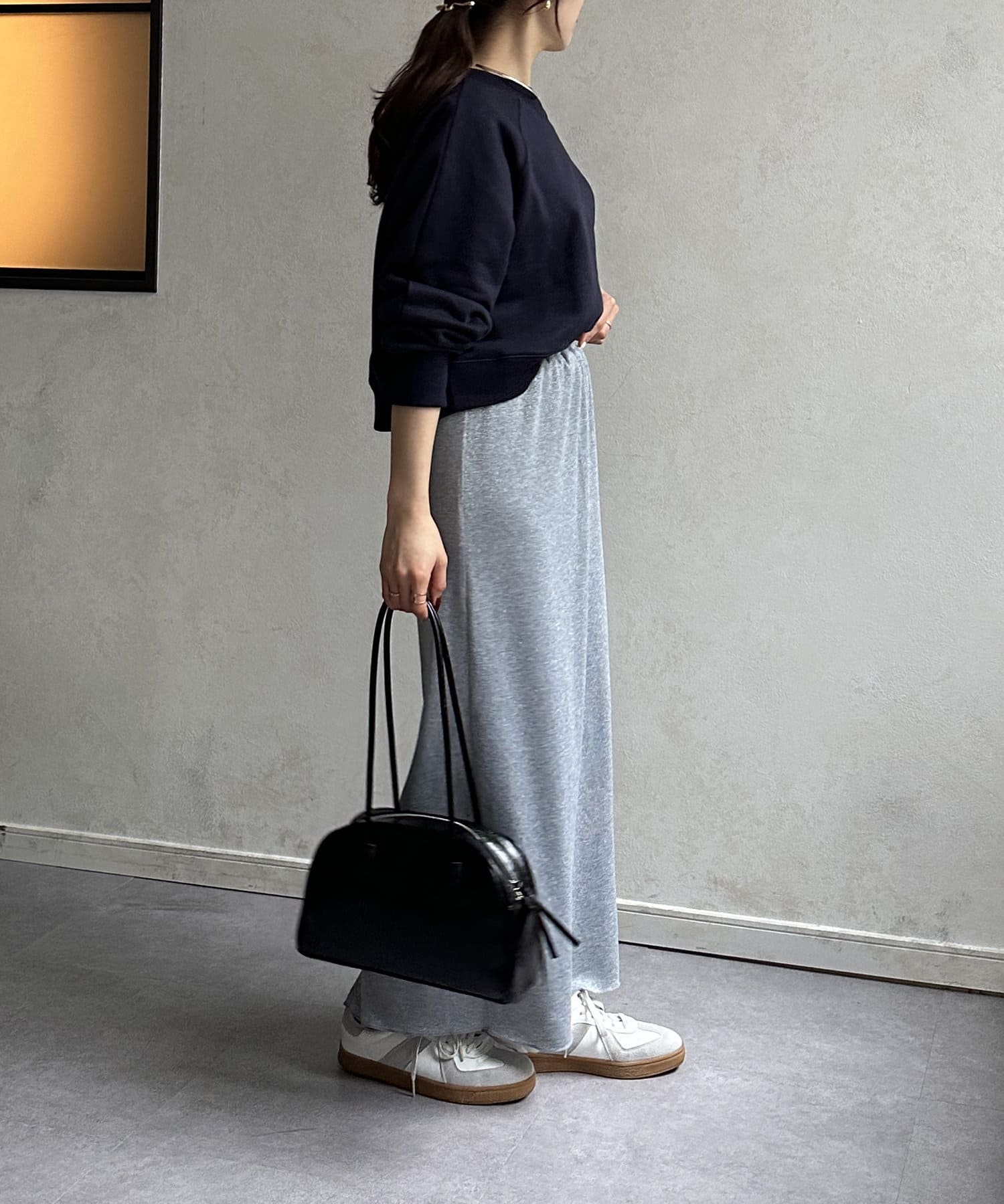 カジュアルなスウェットと合わせても女性らしい印象になります。