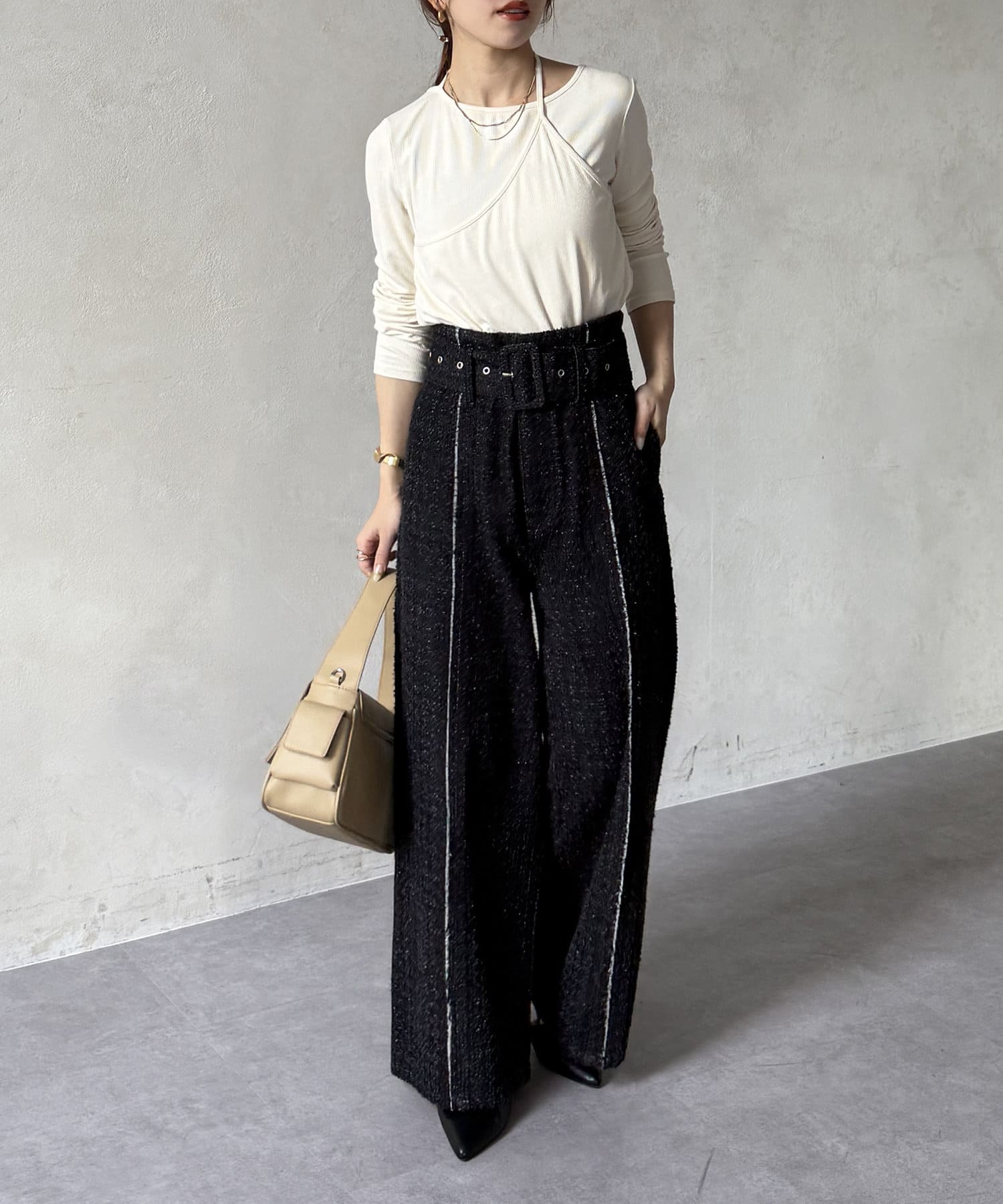 タイトめなトップスを合わせてインするとスタイルアップ効果抜群です!