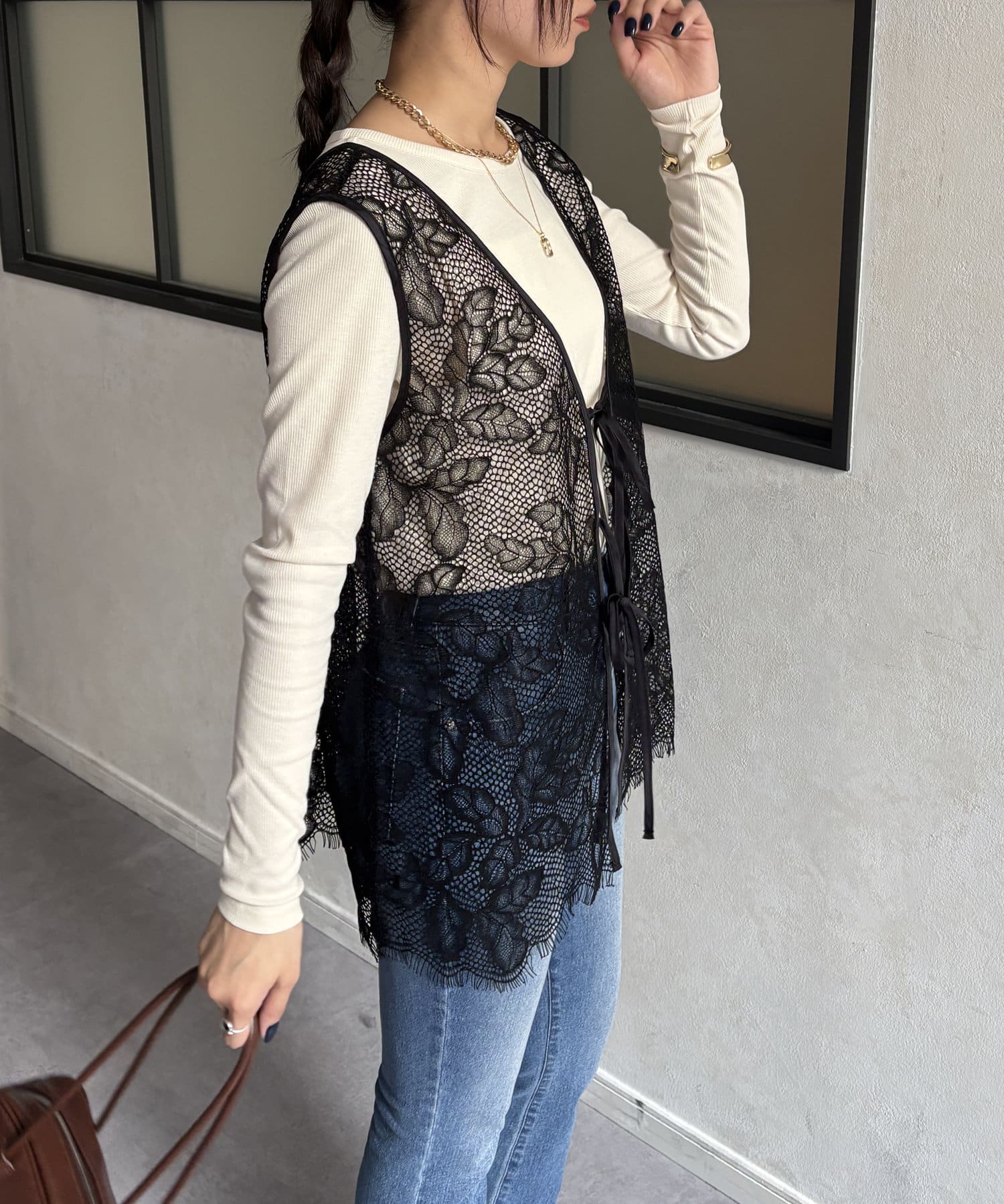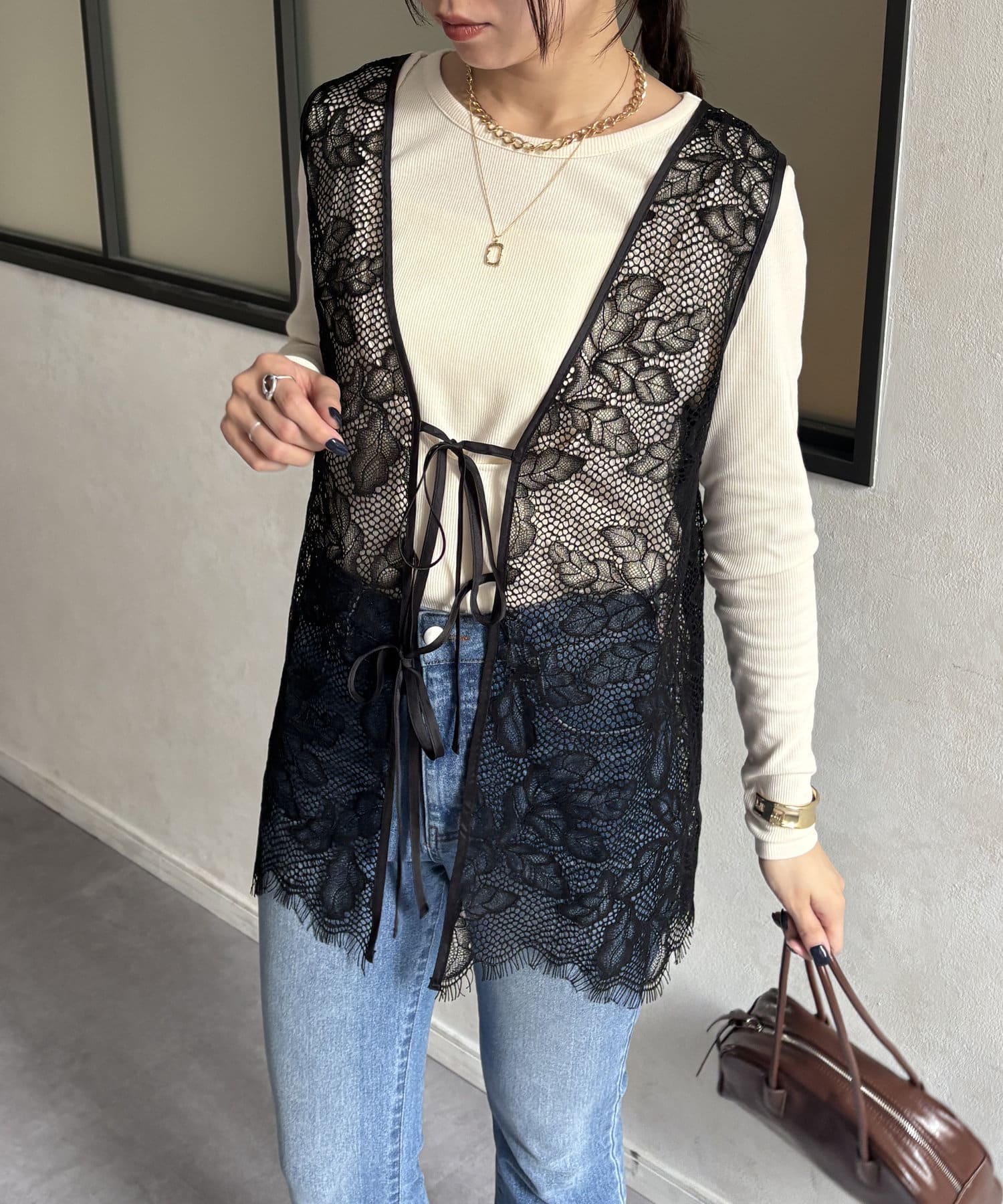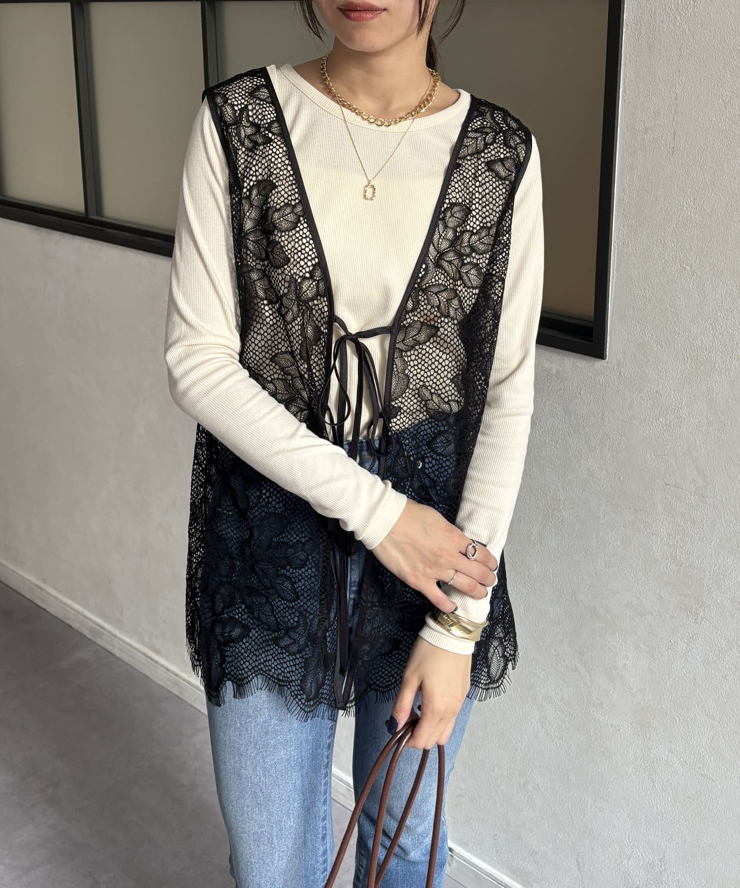 ・リボン付きのレース素材でやや甘めなデザインなので、