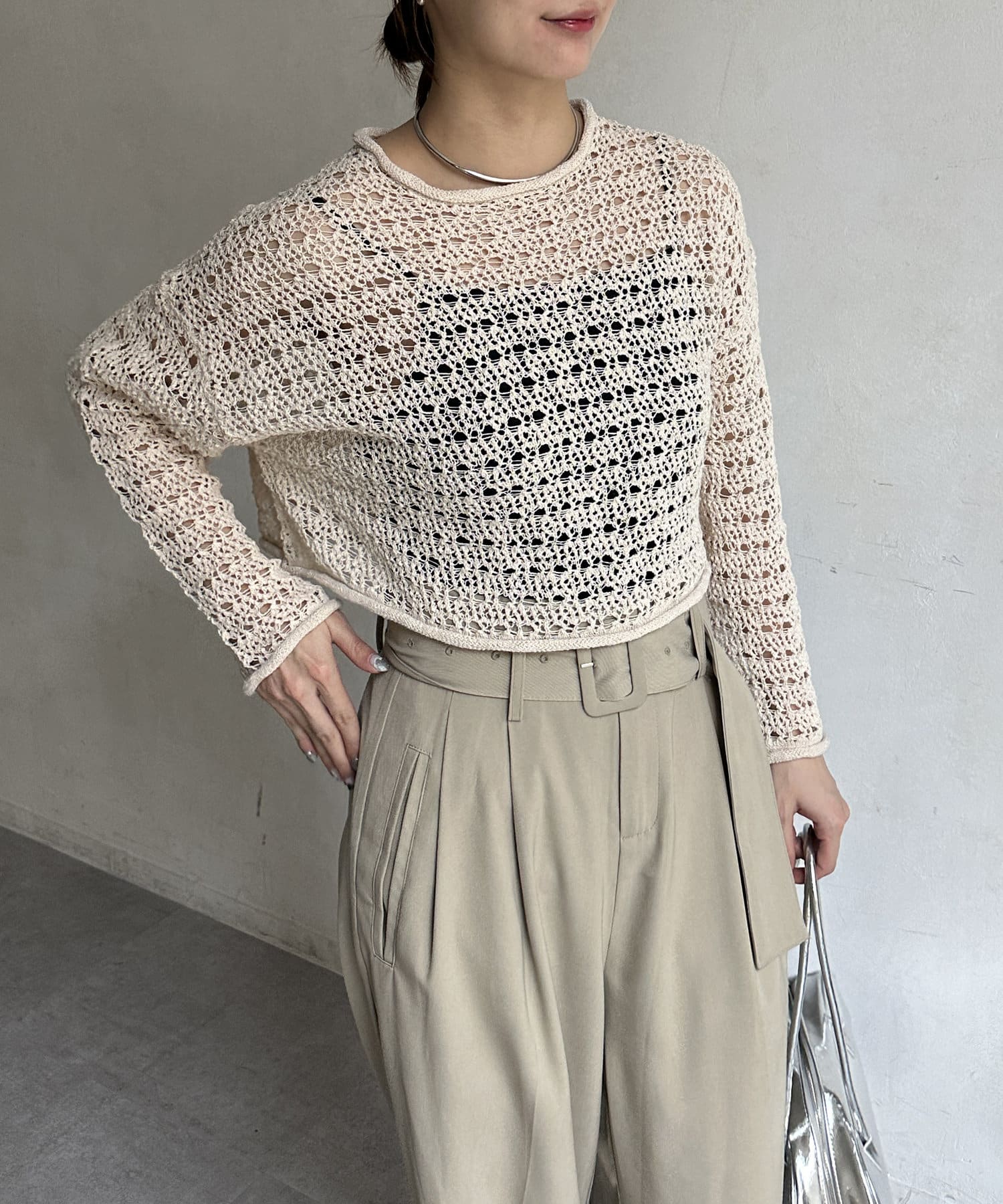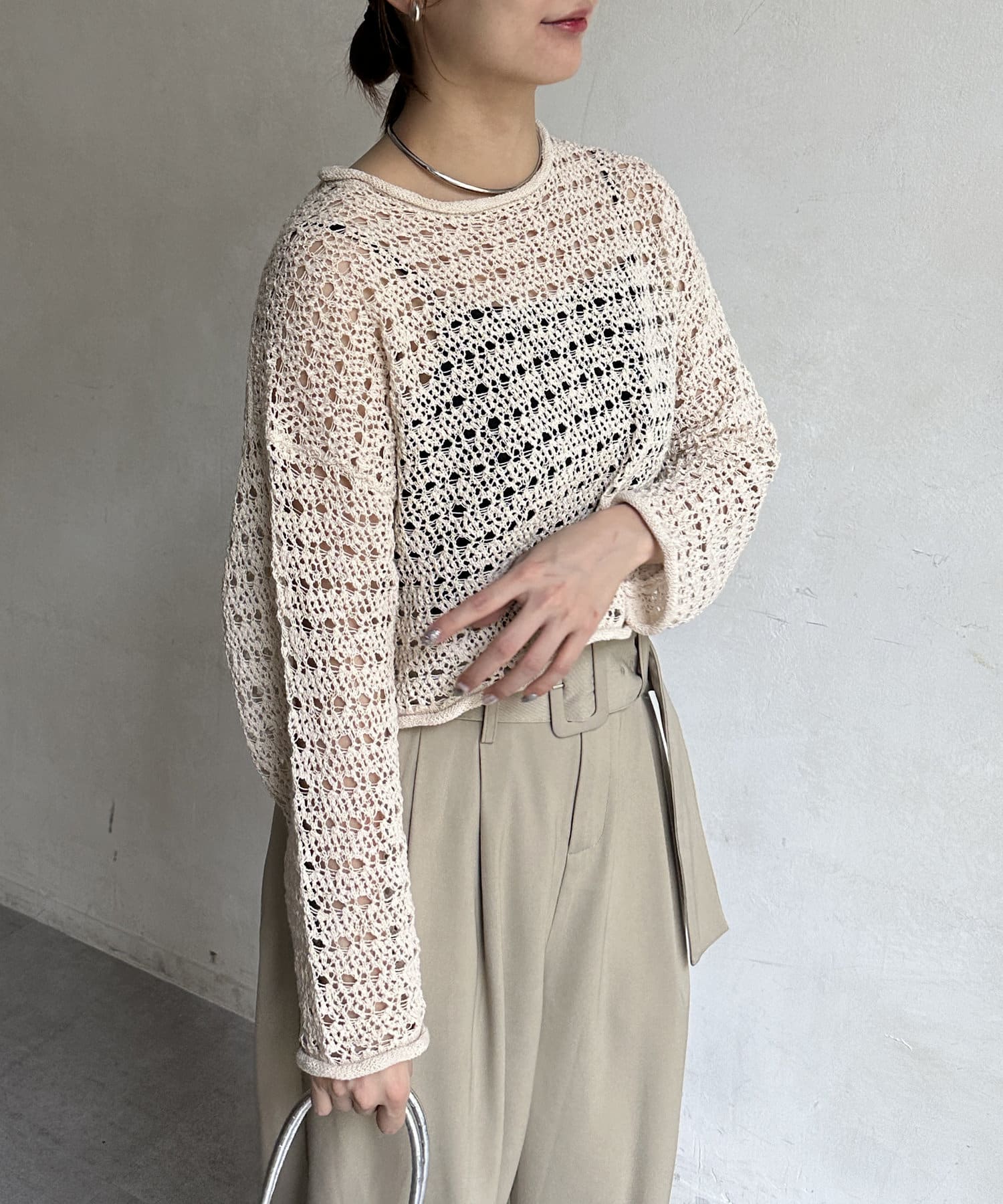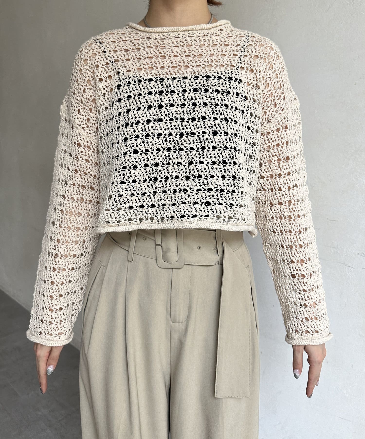 #メッシュ素材 #ショート丈プルオーバー #春ニット