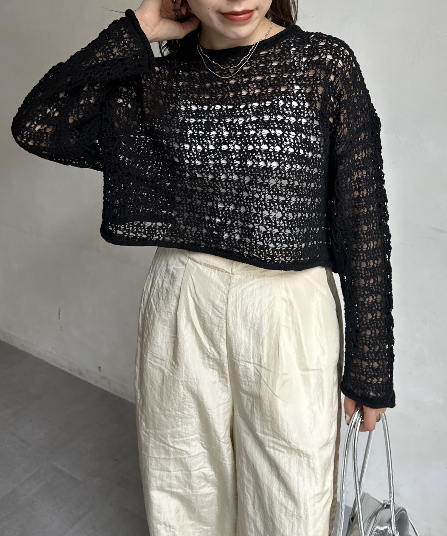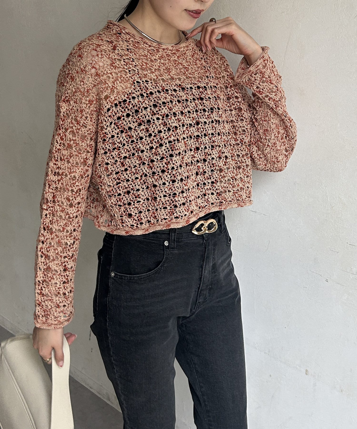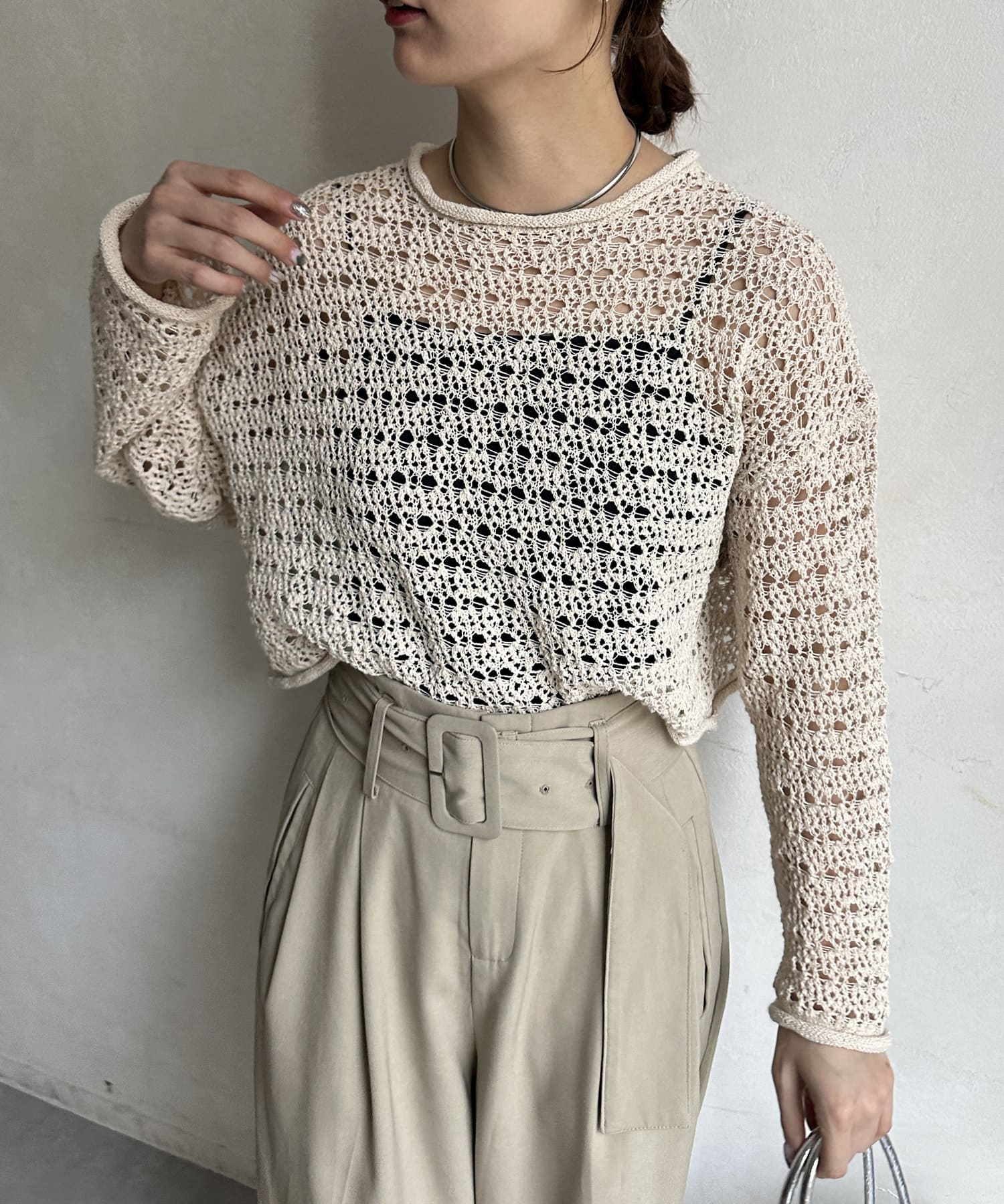 #メッシュ素材 #ショート丈プルオーバー #春ニット
