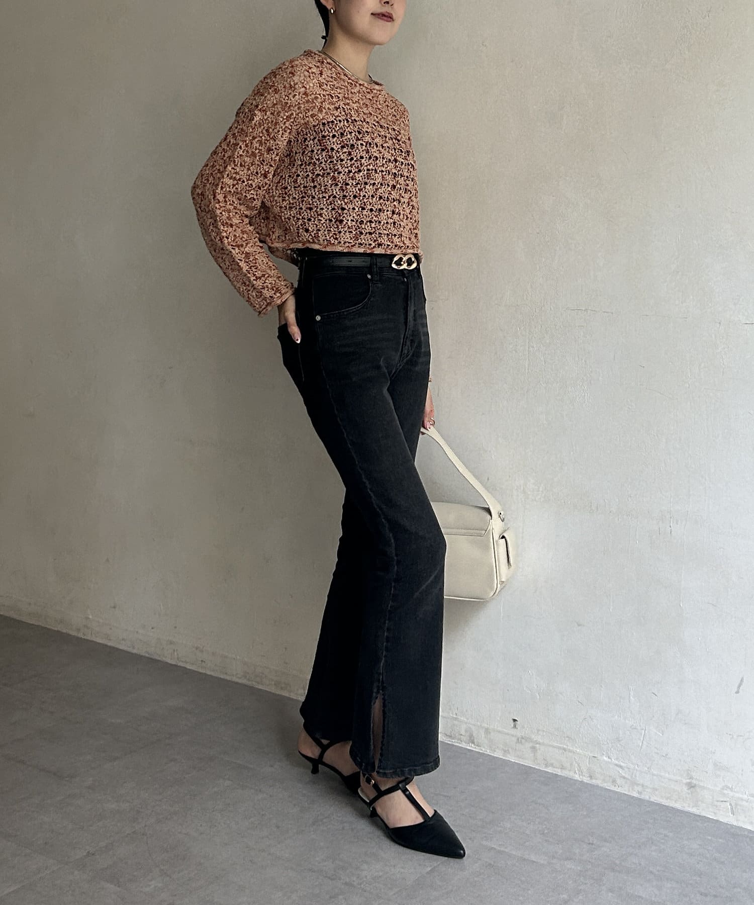 ・ショート丈なのでハイウエストのパンツと合わせるとスタイルUPするのでおすすめです。