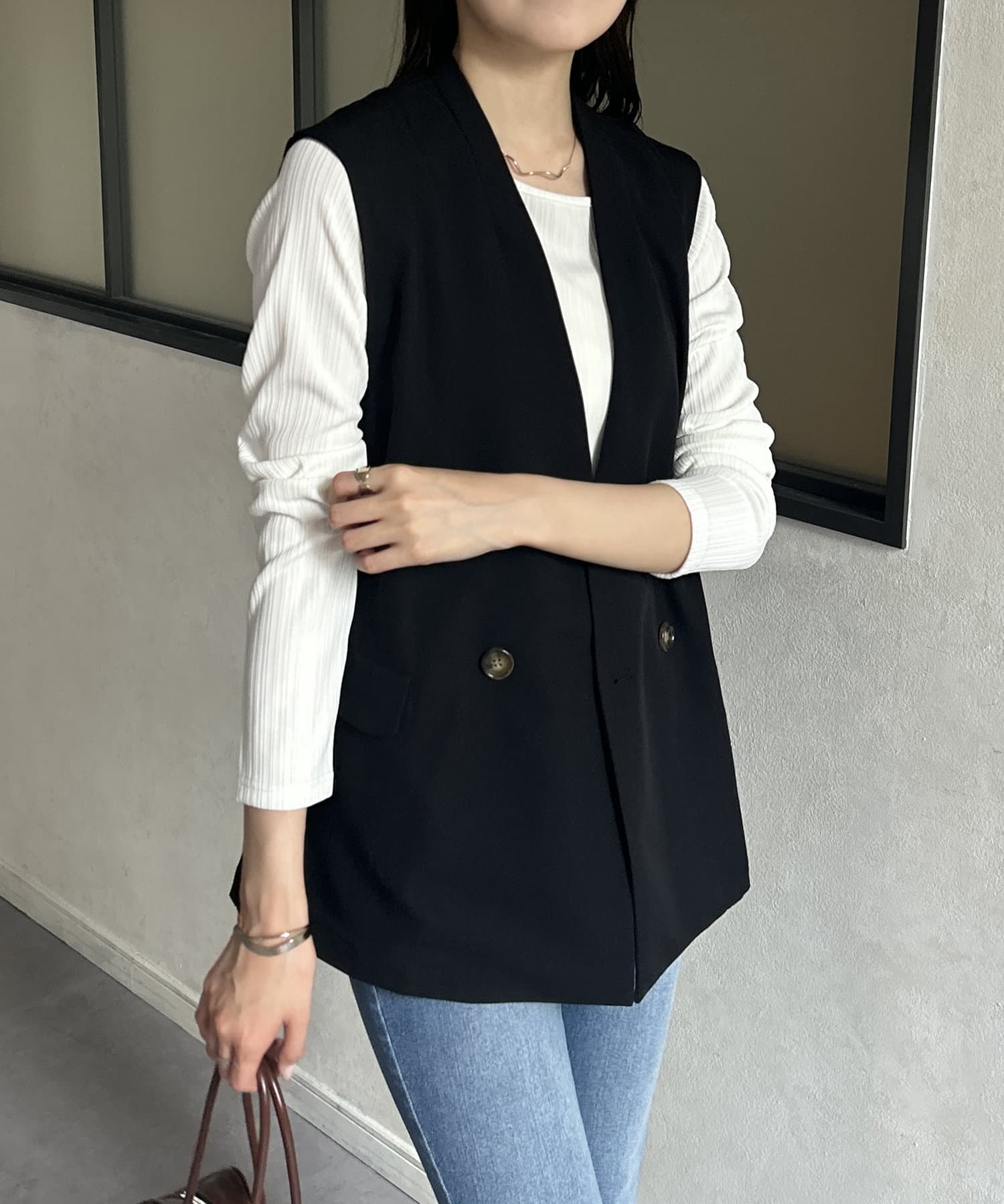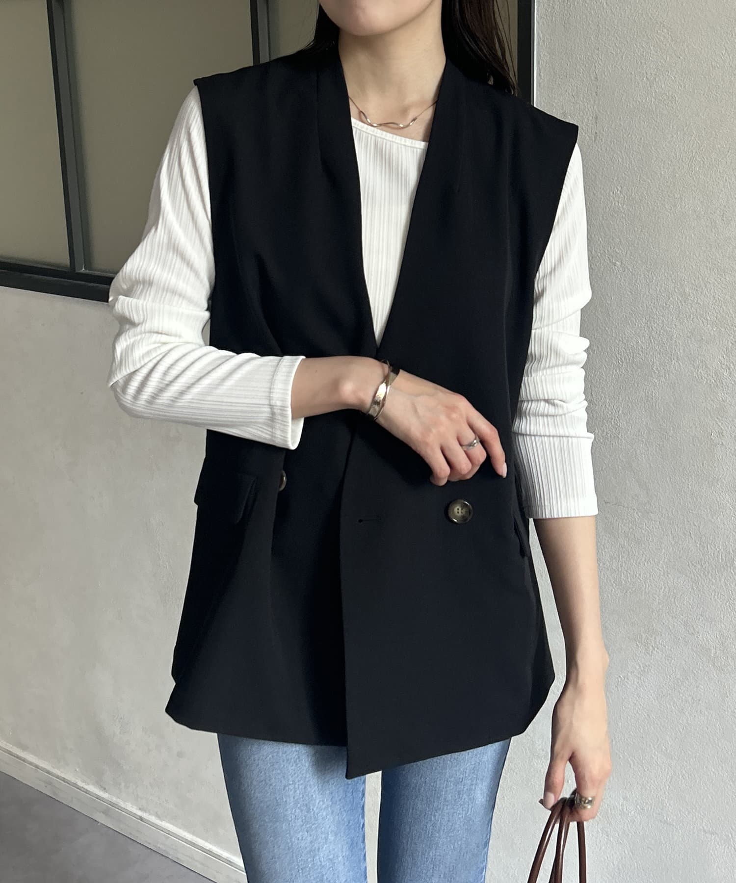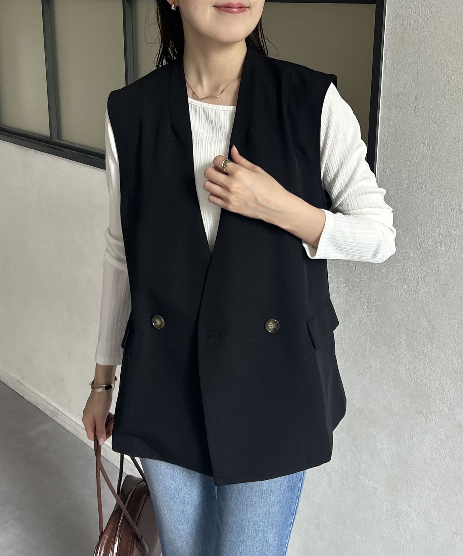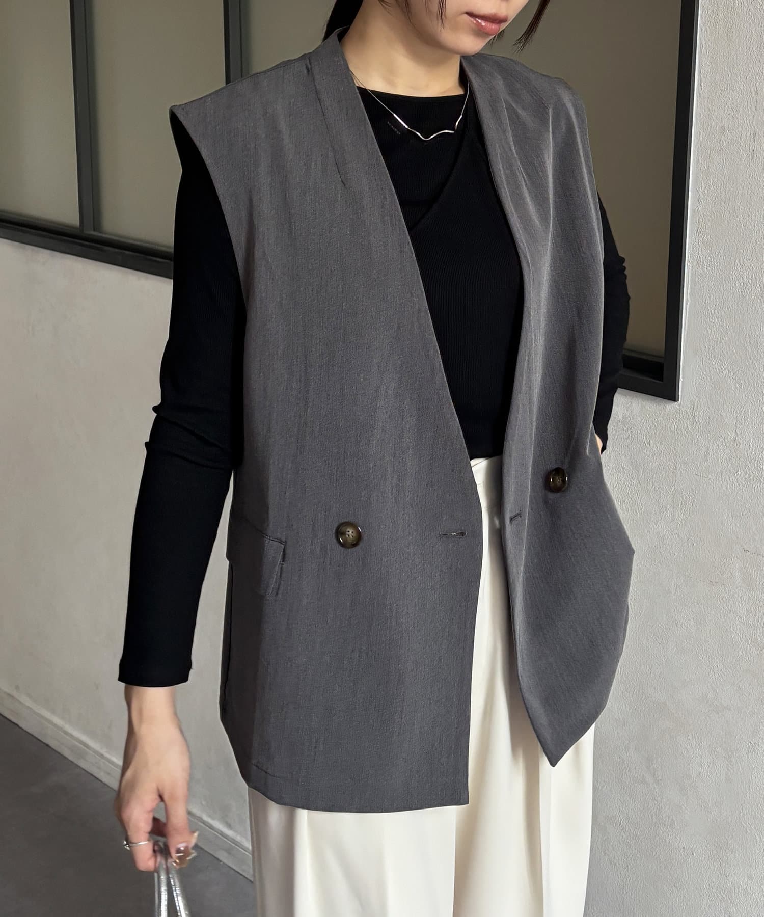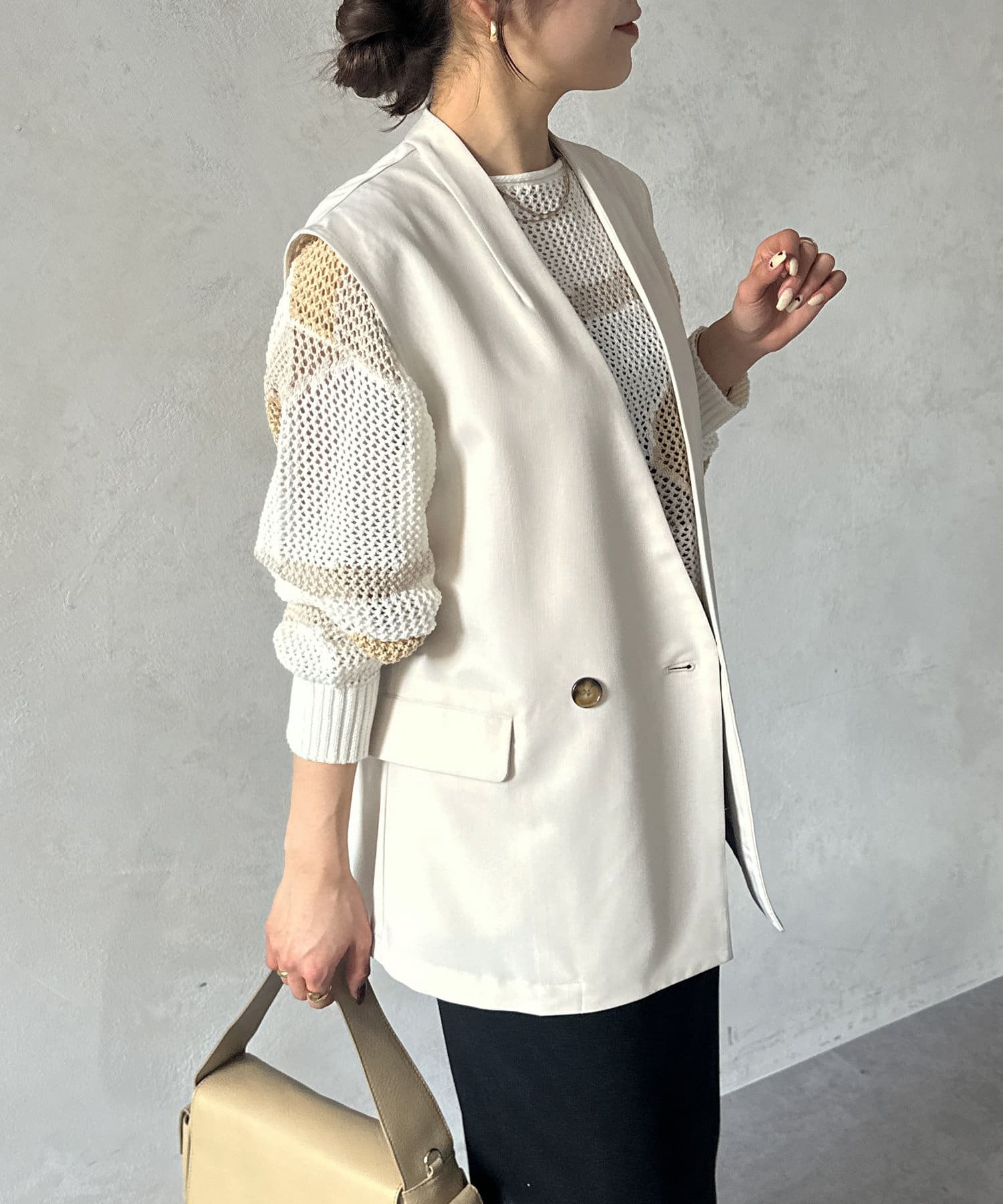 #ノーカラージャケット #ジレ #春アウター #きれいめ #オフィス