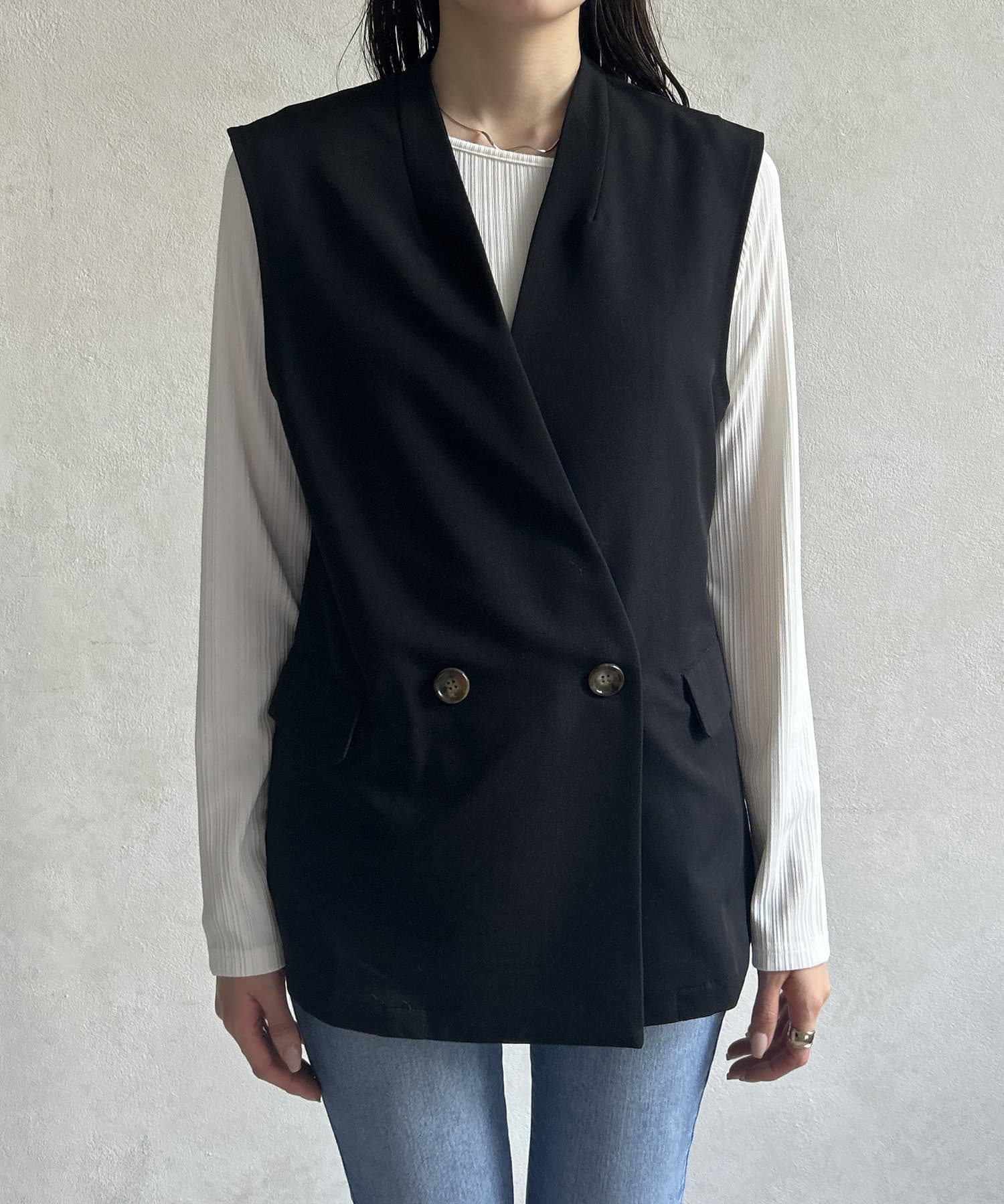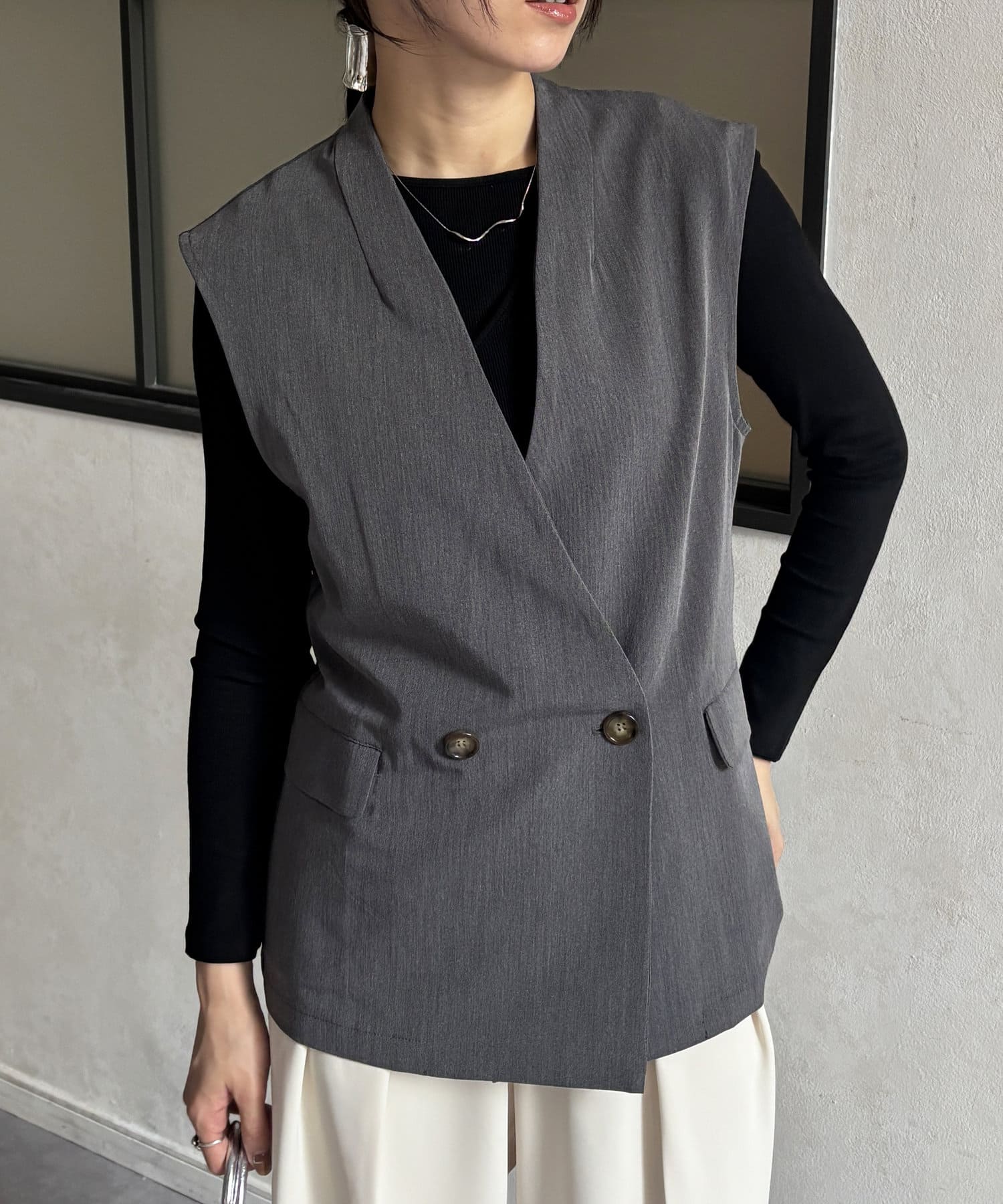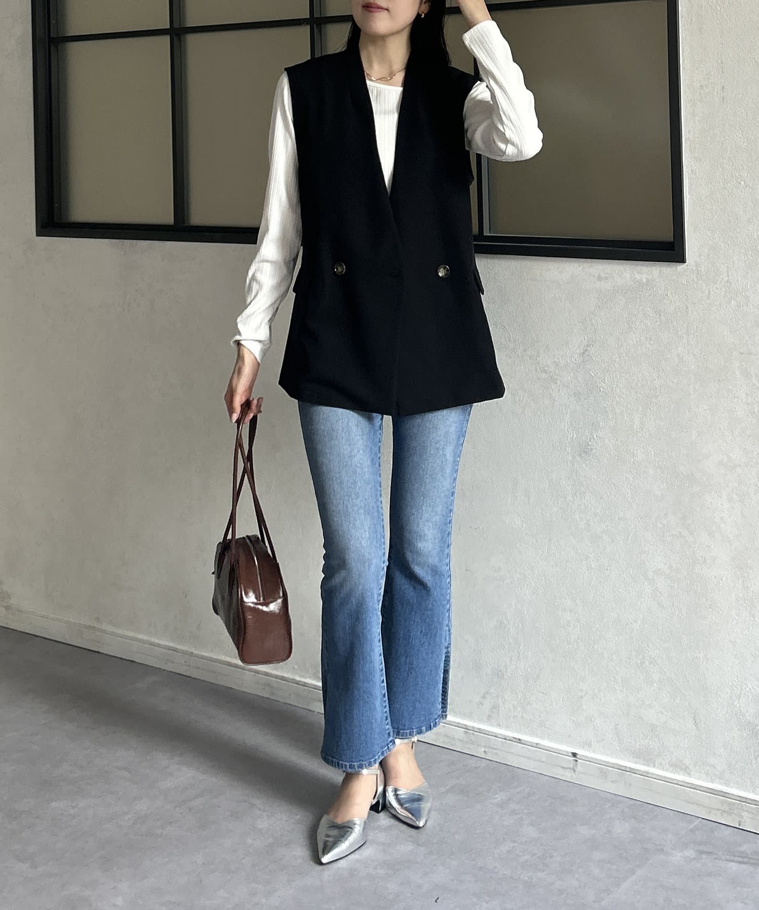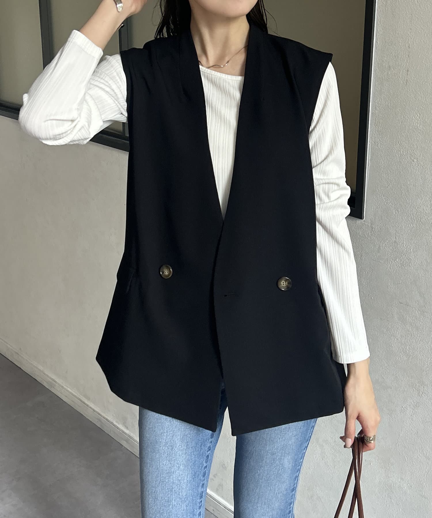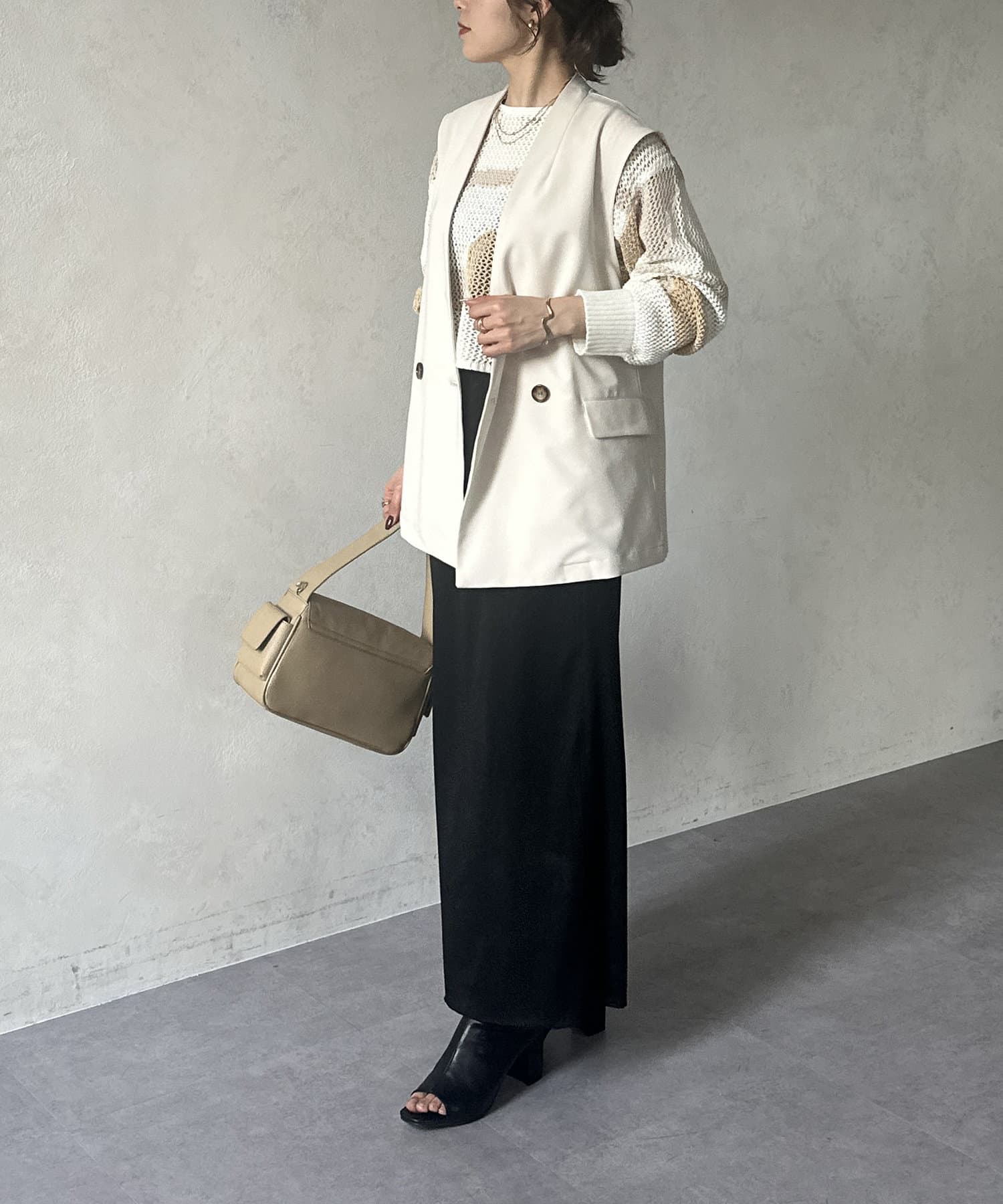 #ノーカラージャケット #ジレ #春アウター #きれいめ #オフィス