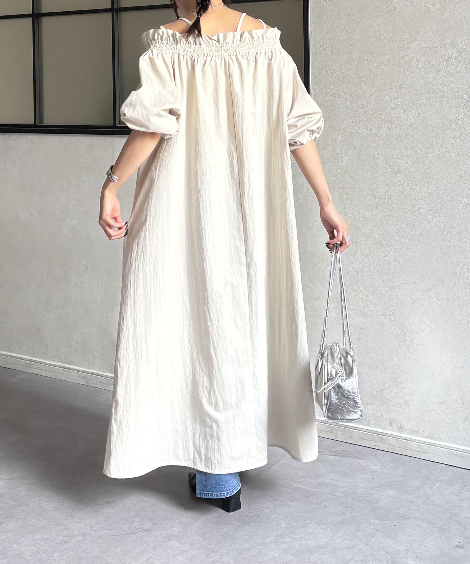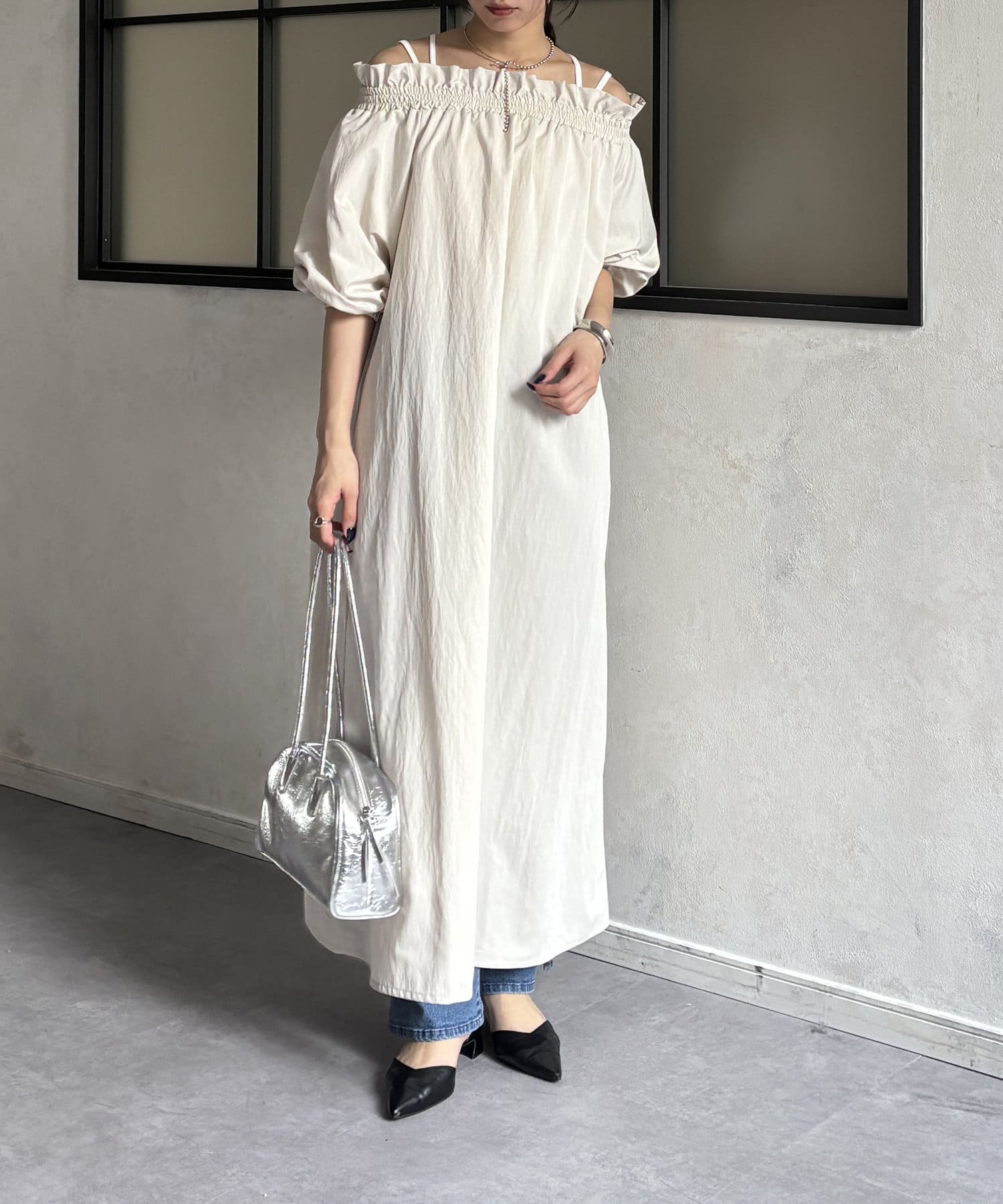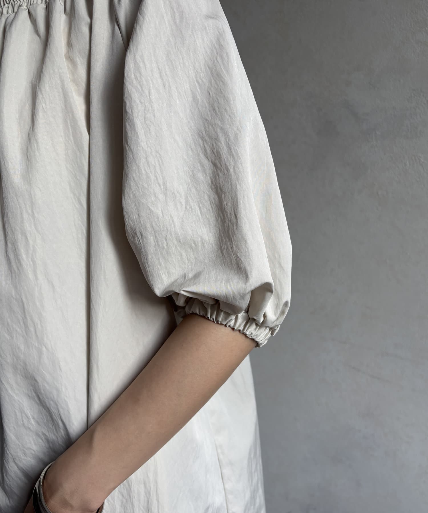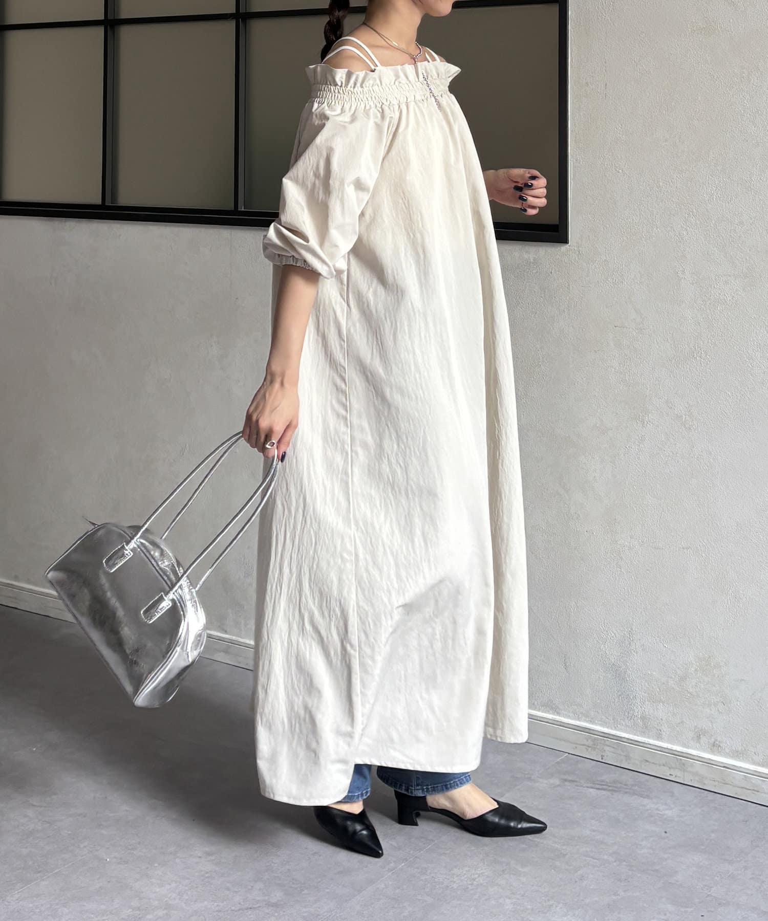 ・スリーブ袖と首元のギャザーデザインが特徴的なのでワンピース一枚で様になるアイテムです。