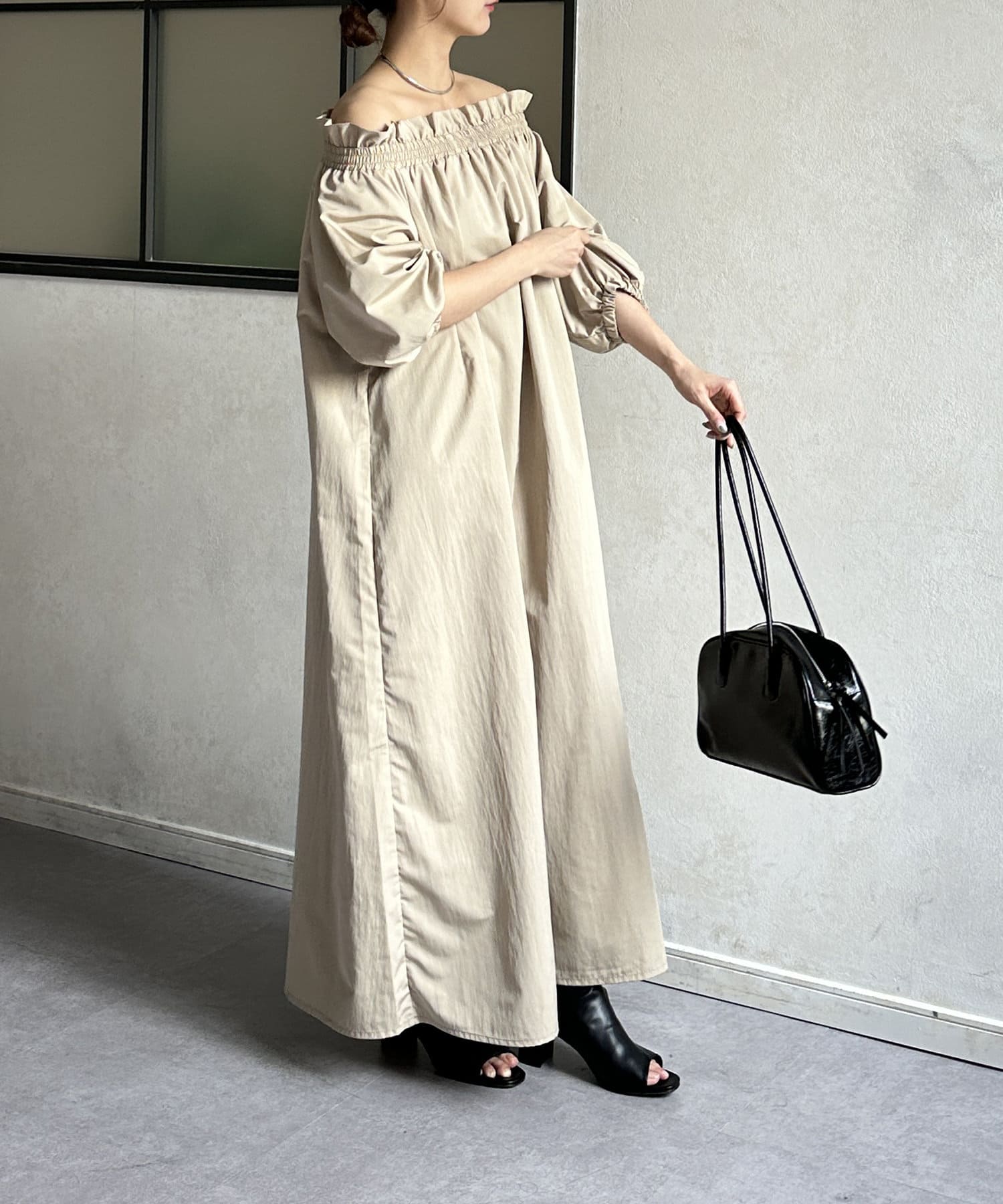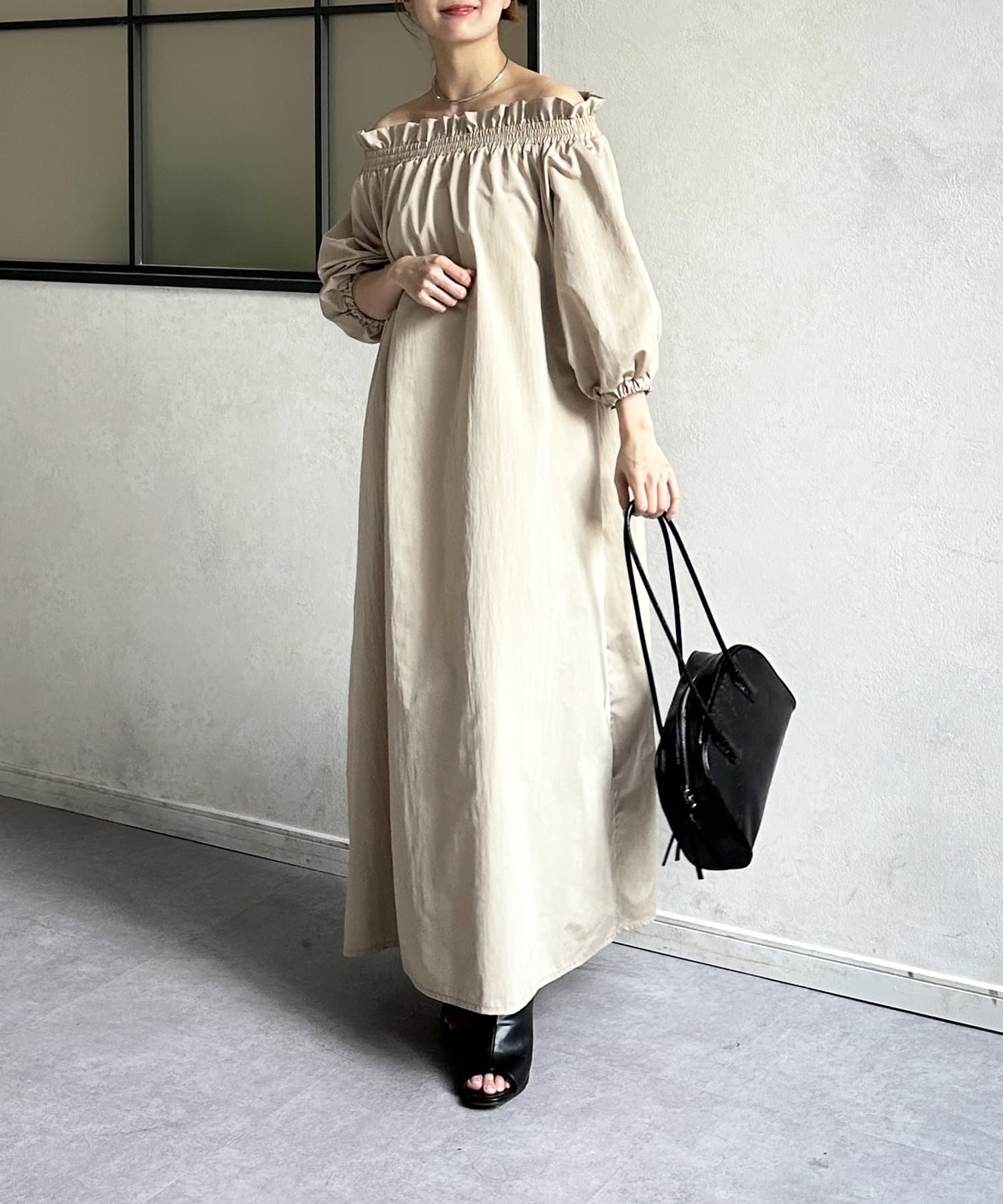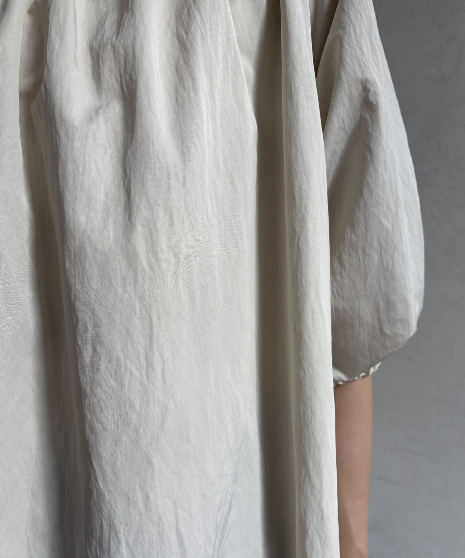 ・スリーブ袖と首元のギャザーデザインが特徴的なのでワンピース一枚で様になるアイテムです。