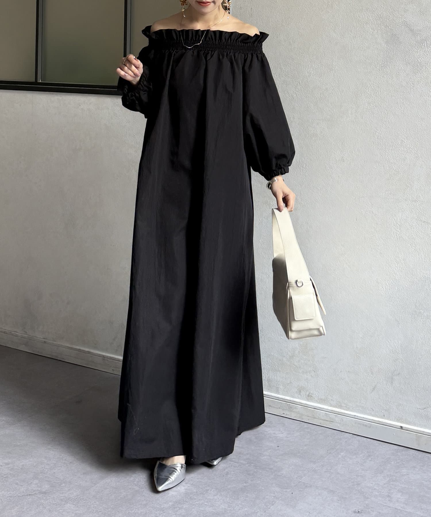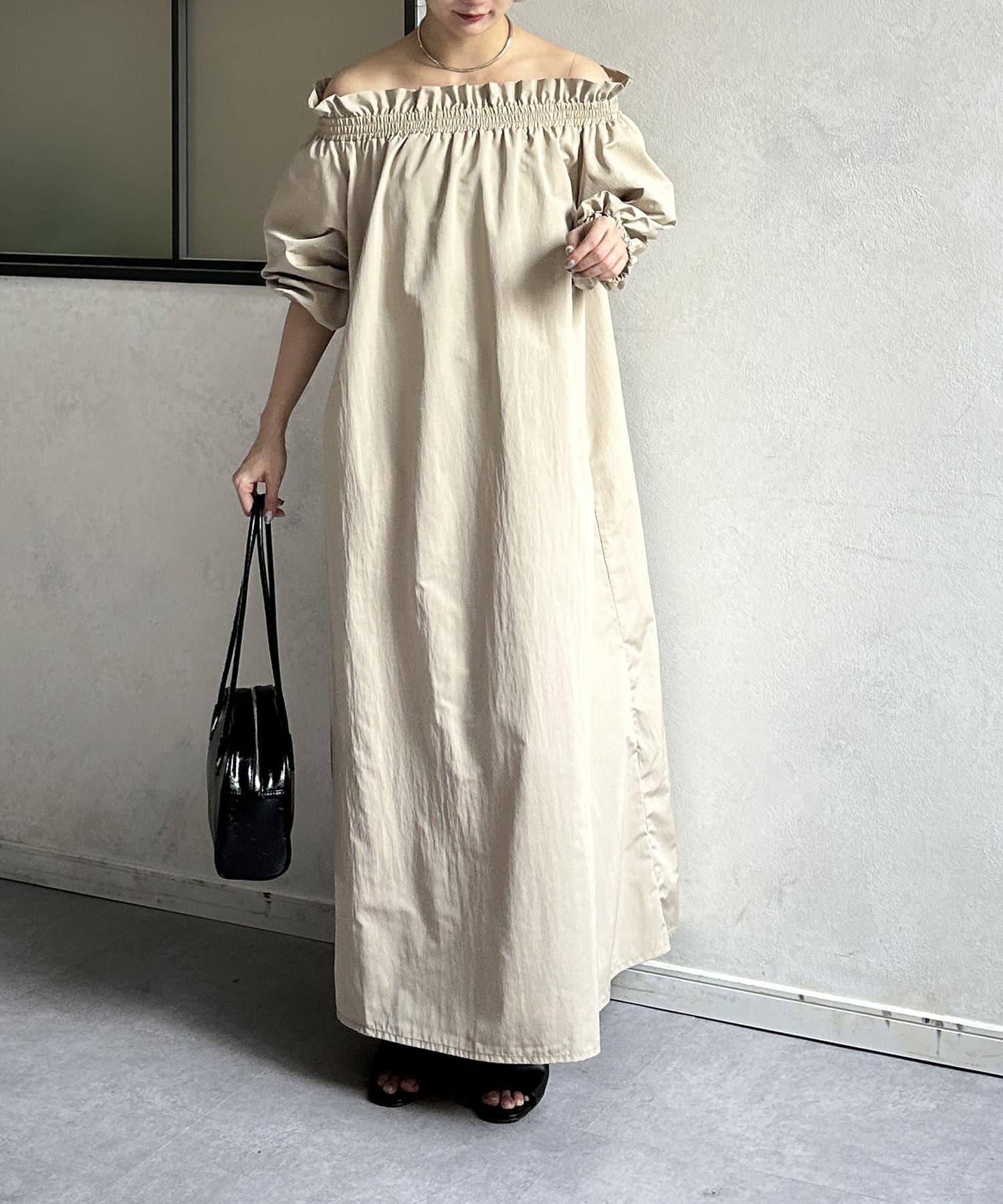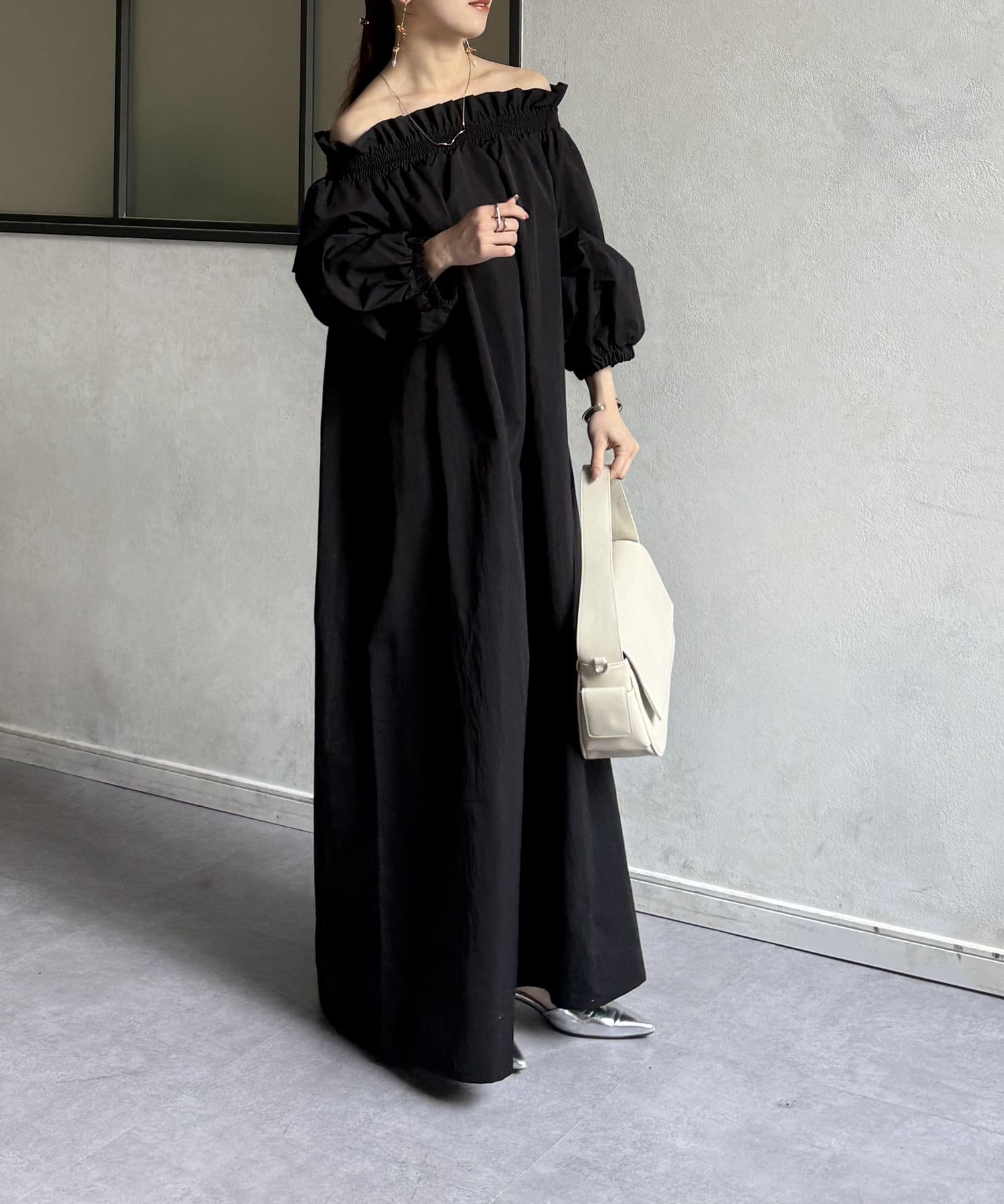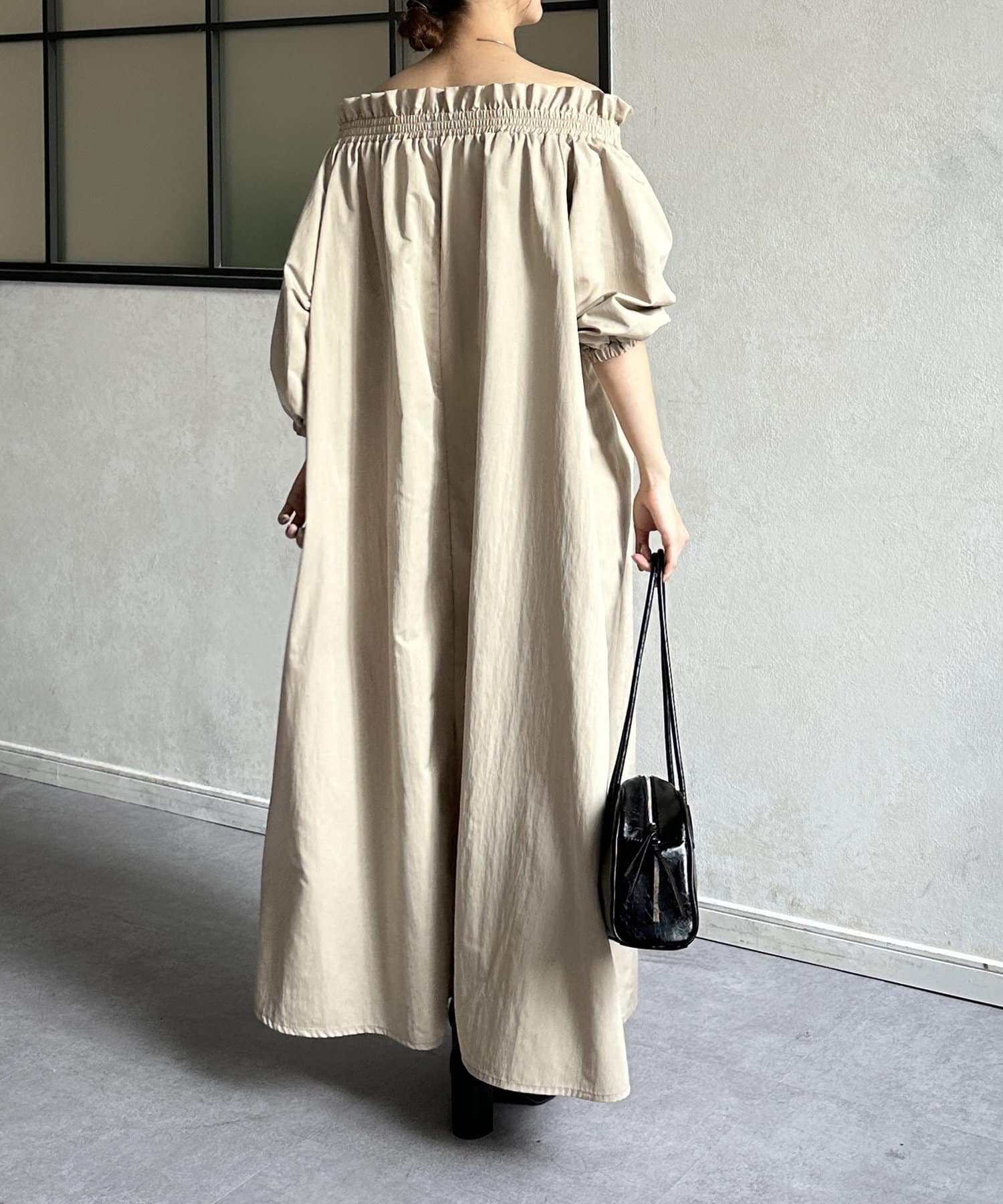 ・スリーブ袖と首元のギャザーデザインが特徴的なのでワンピース一枚で様になるアイテムです。
