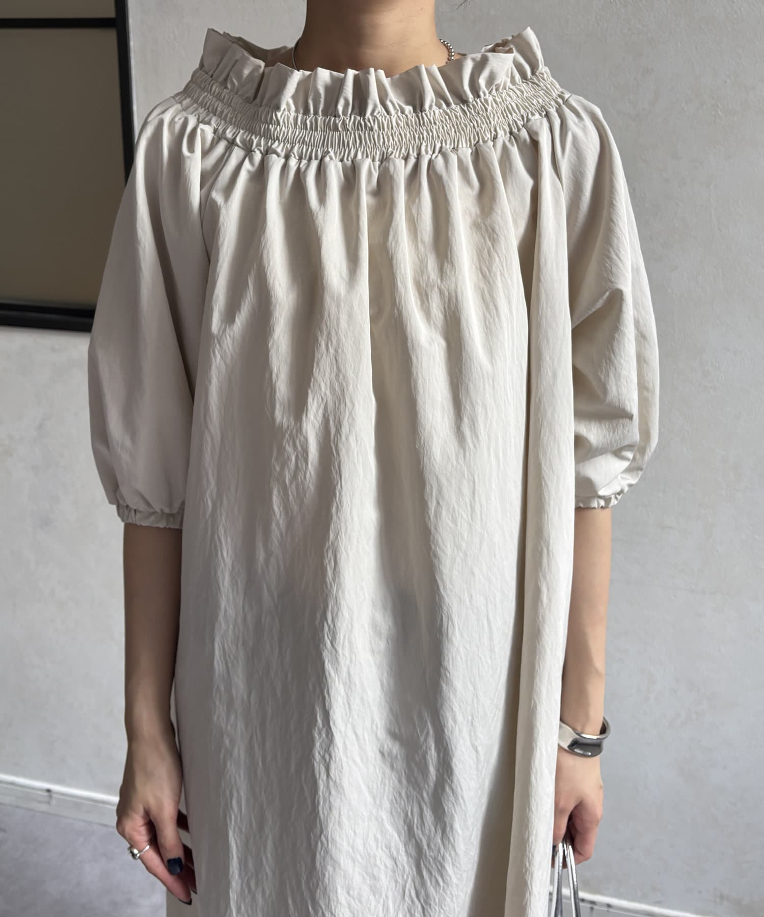 #ナイロンワンピース #シャーリングネック #ナイロン素材