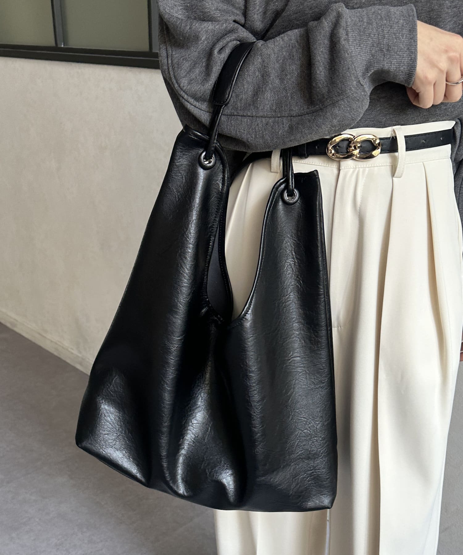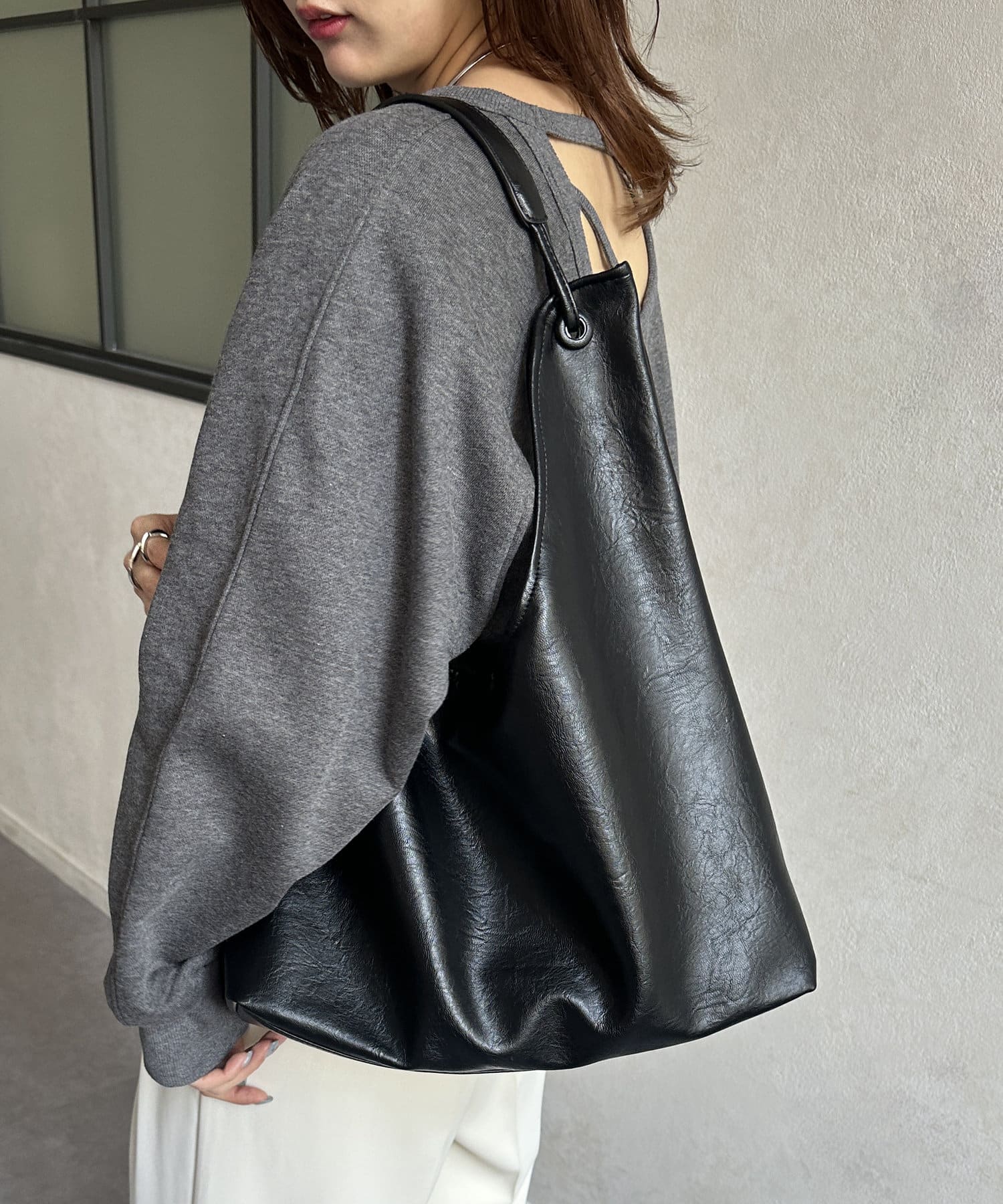 ・大きめサイズでも体に馴染むフェイクレザー
