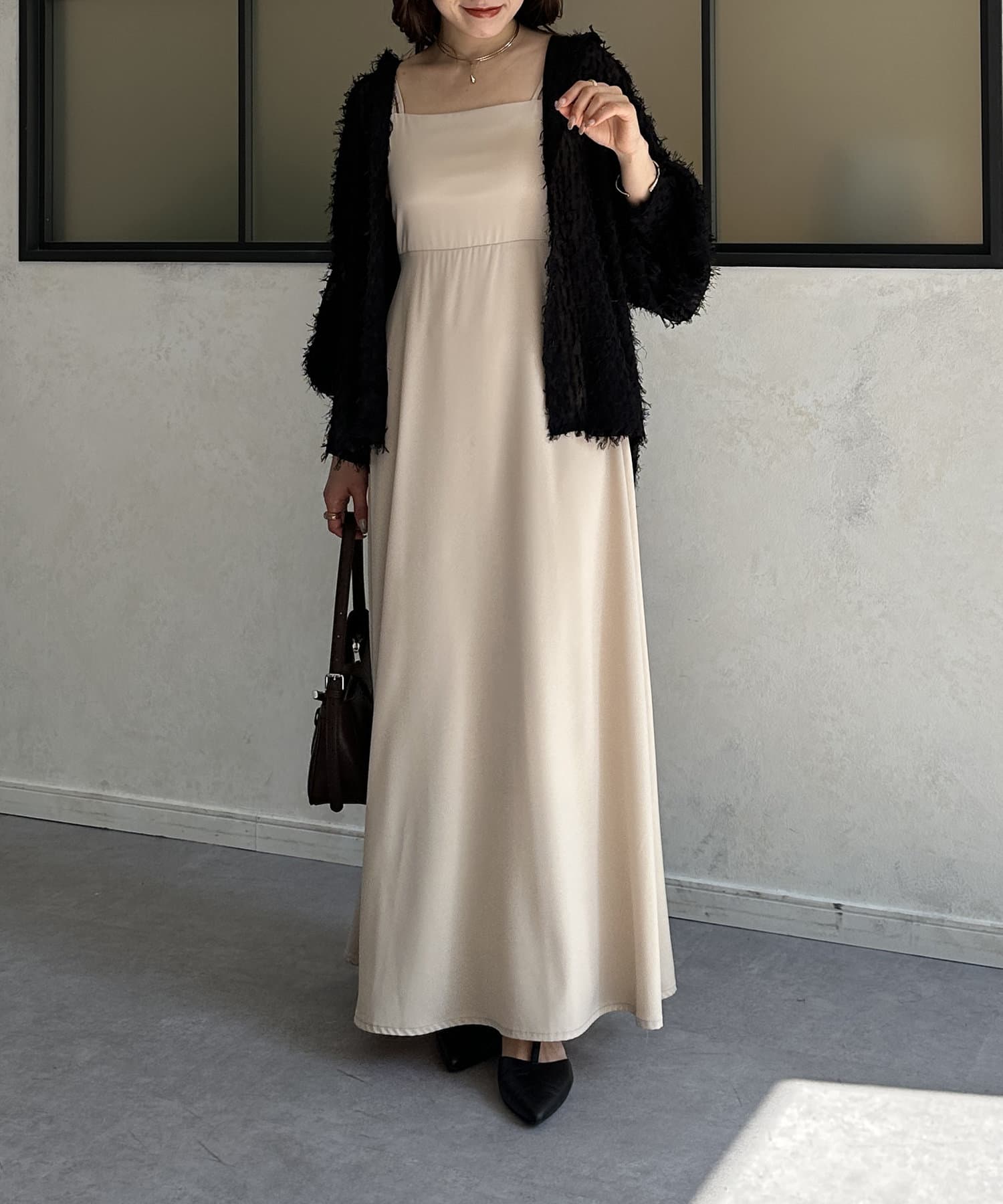 ・キャミソールをインナーに合わせてヘルシーに透け感を楽しめたり、肌寒い季節にはスウェットにレイヤードして重ね着を楽しめます◎