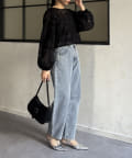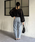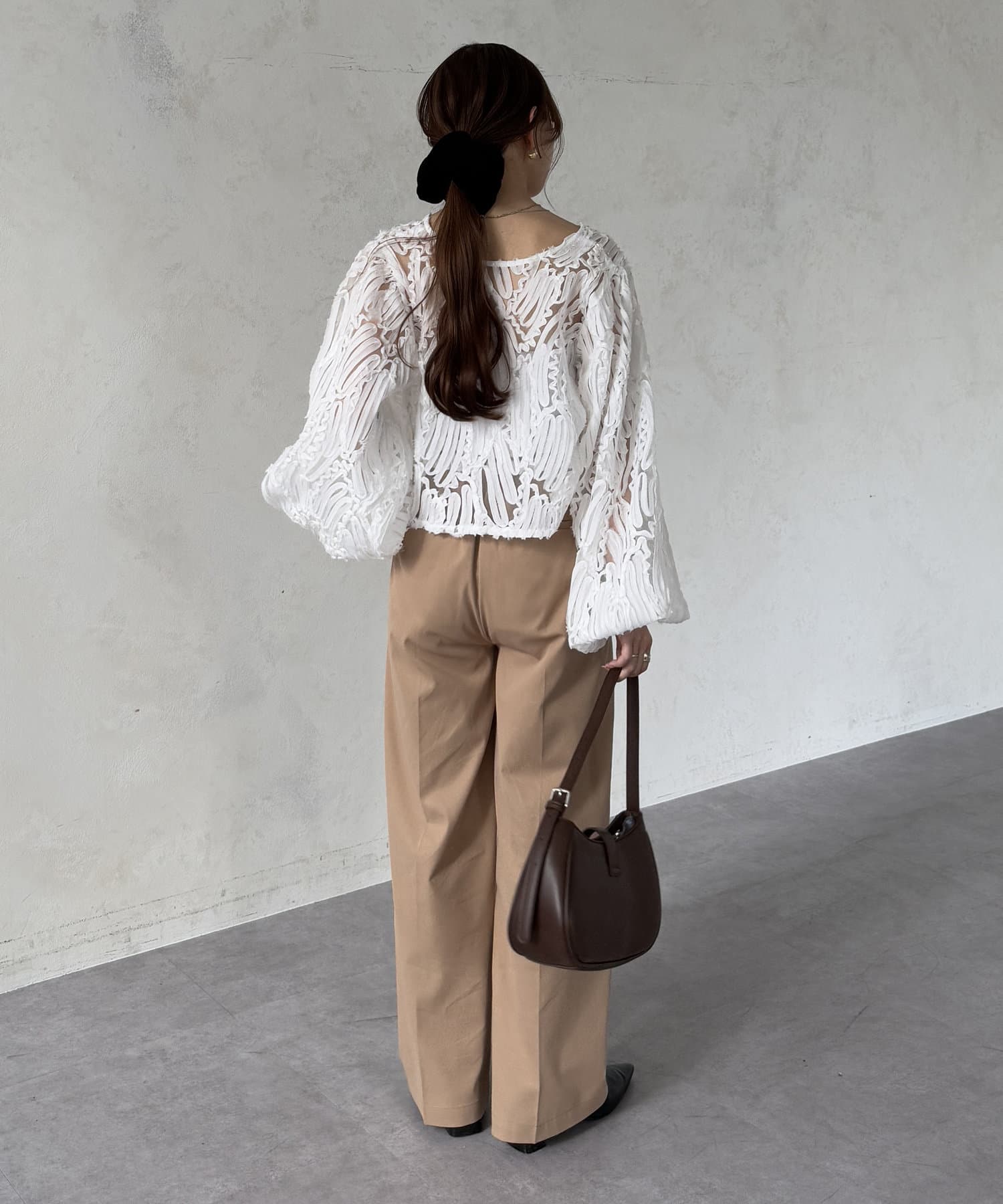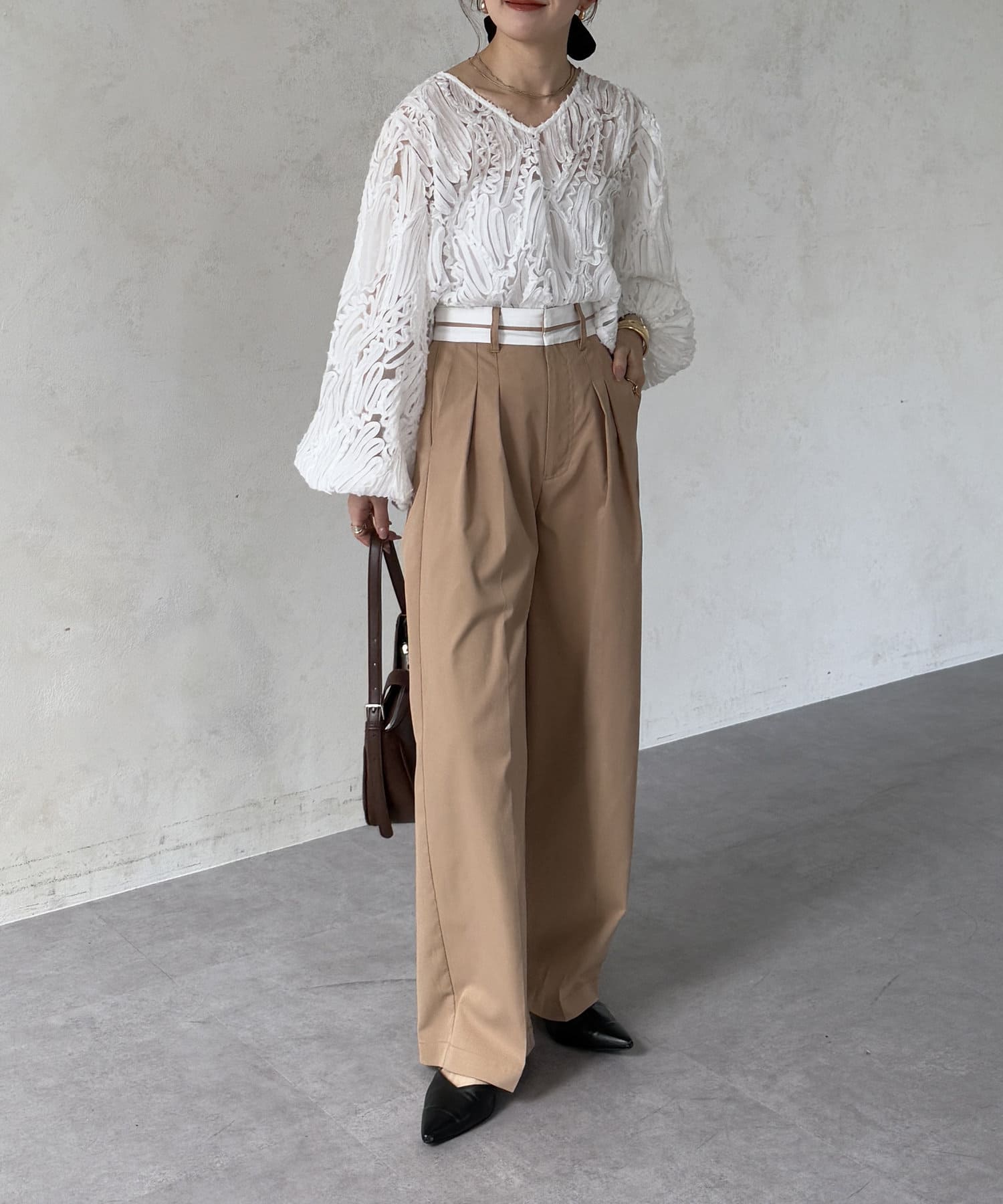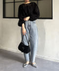 ・短めの丈なので、ハイウエストのパンツやワイドパンツとの合わせがおすすめです。