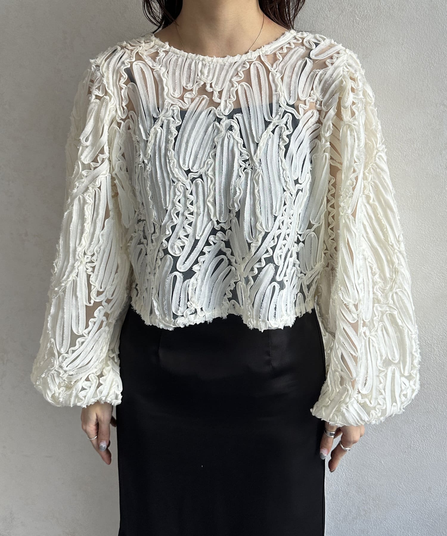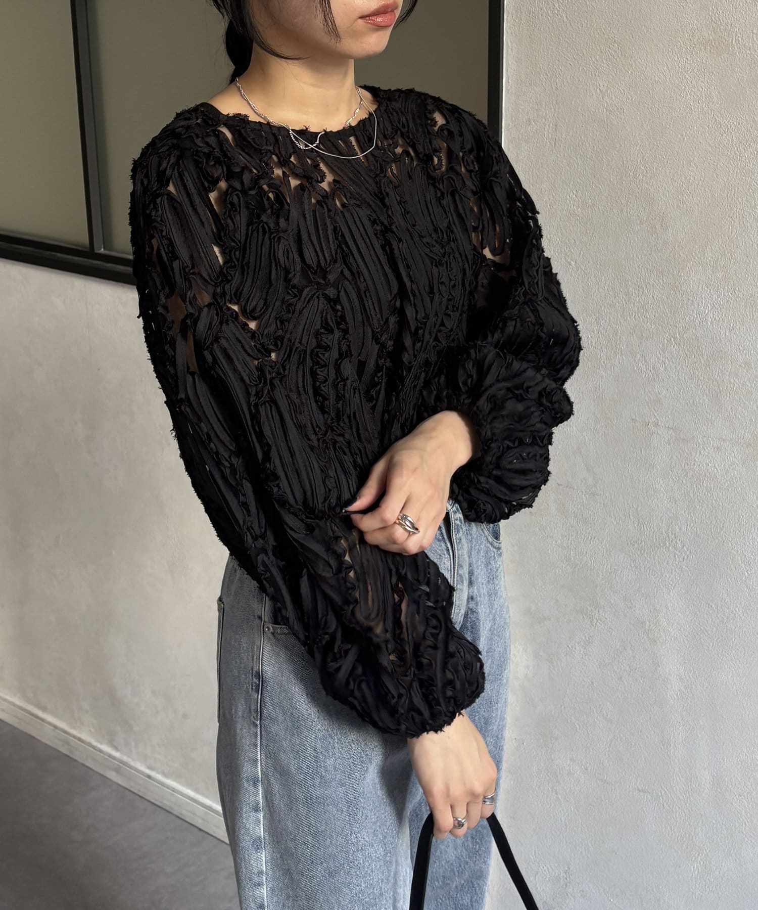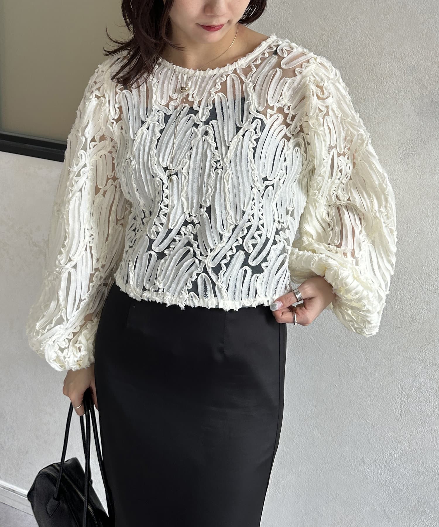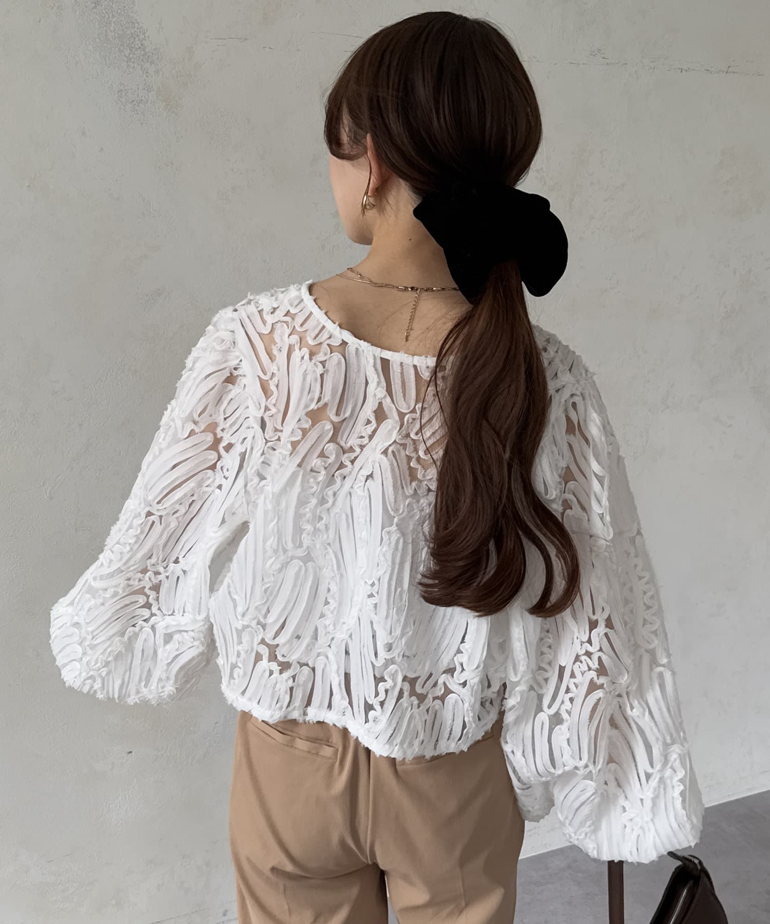 ・キャミソールやタンクトップをインナーに合わせて、透け感を楽しめるアイテムです。