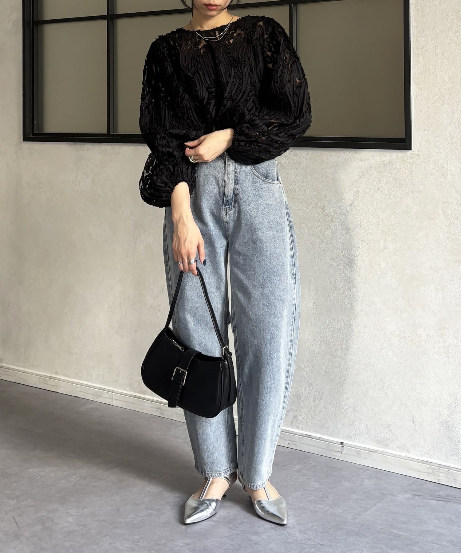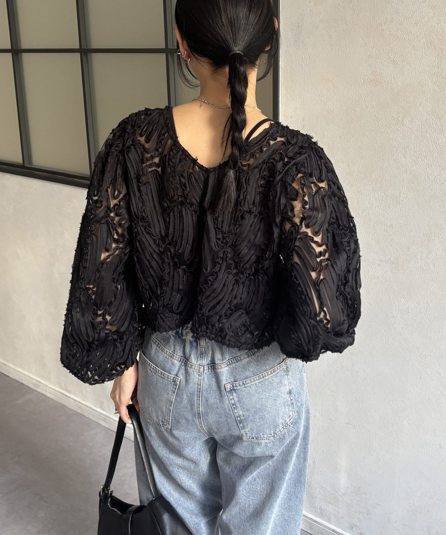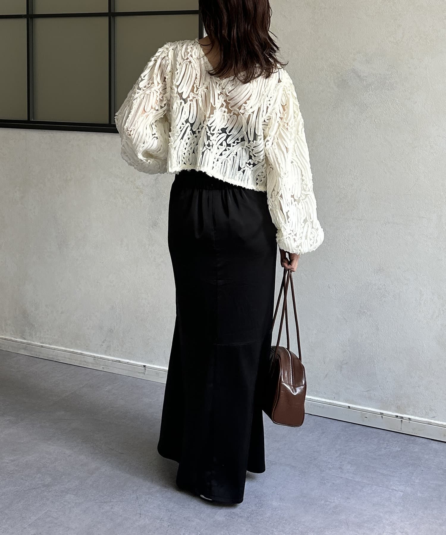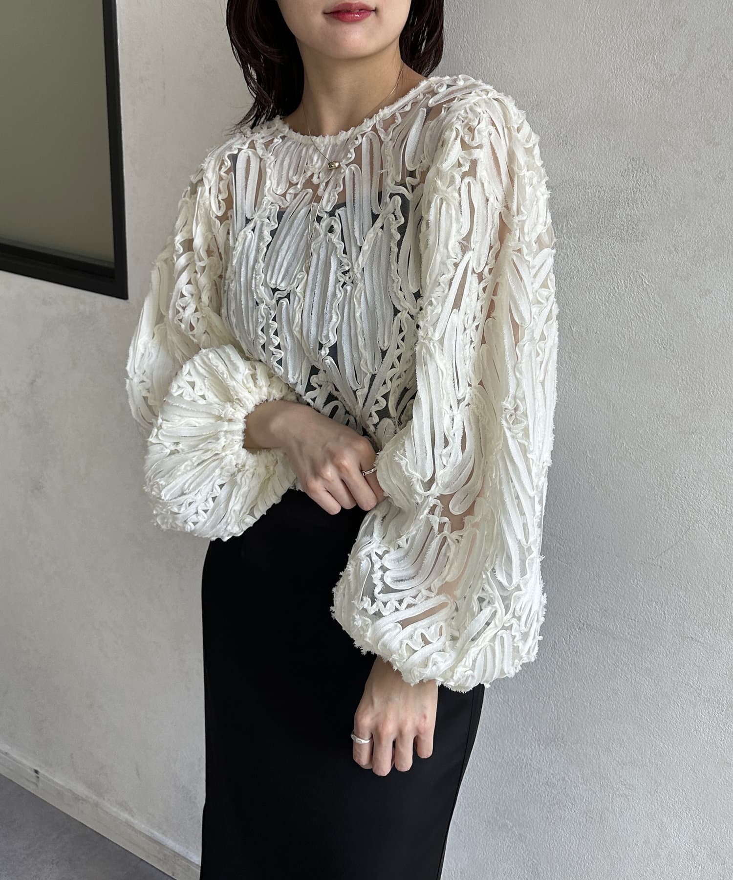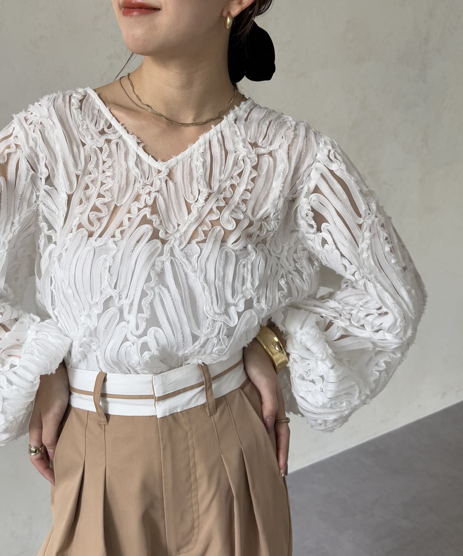 ・キャミソールやタンクトップをインナーに合わせて、透け感を楽しめるアイテムです。