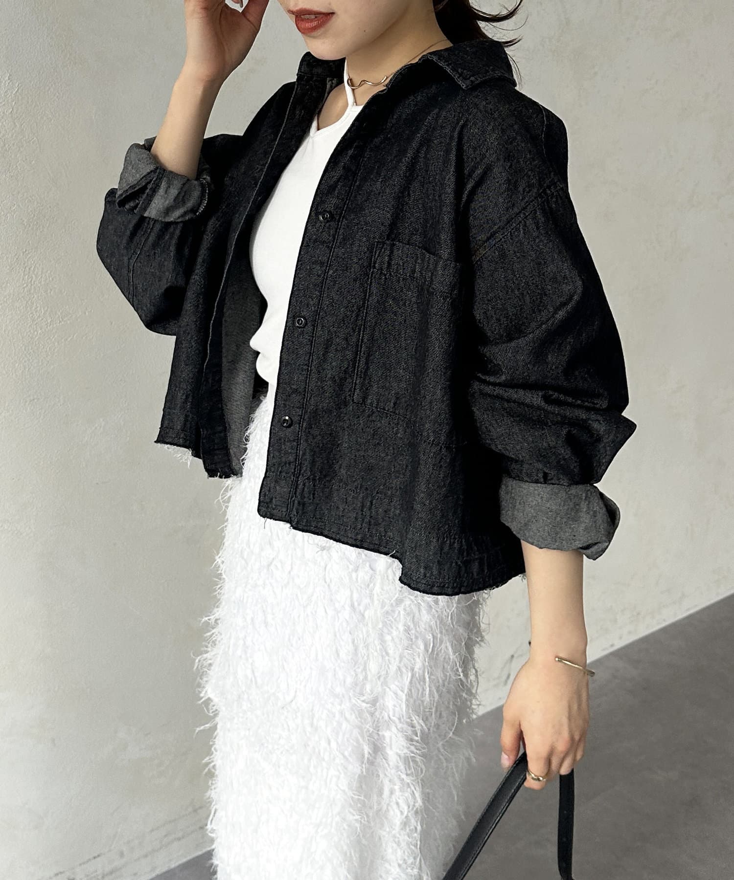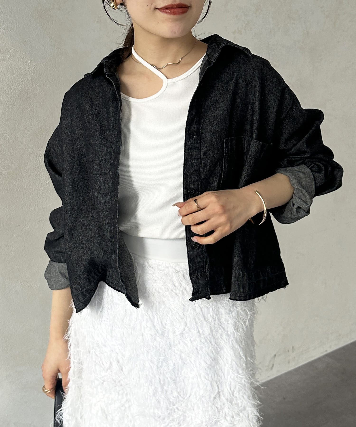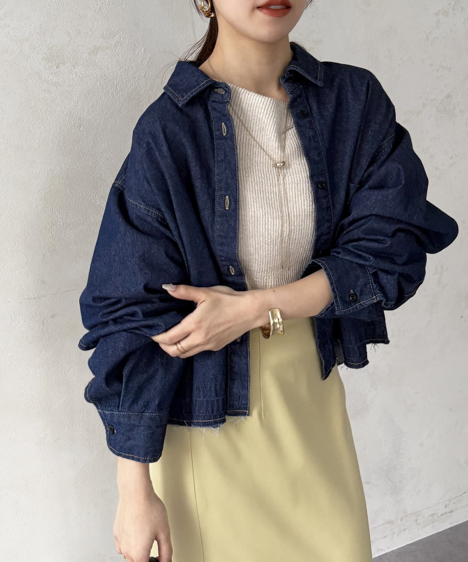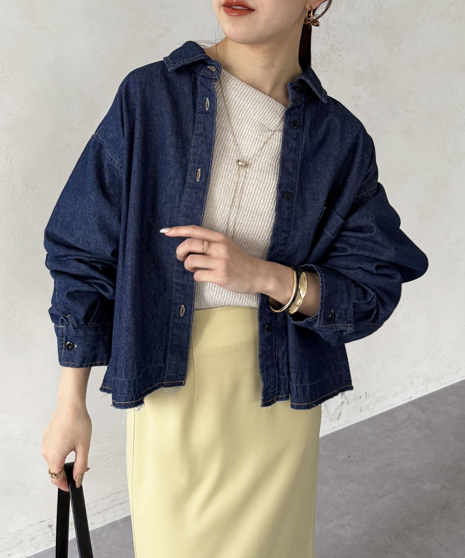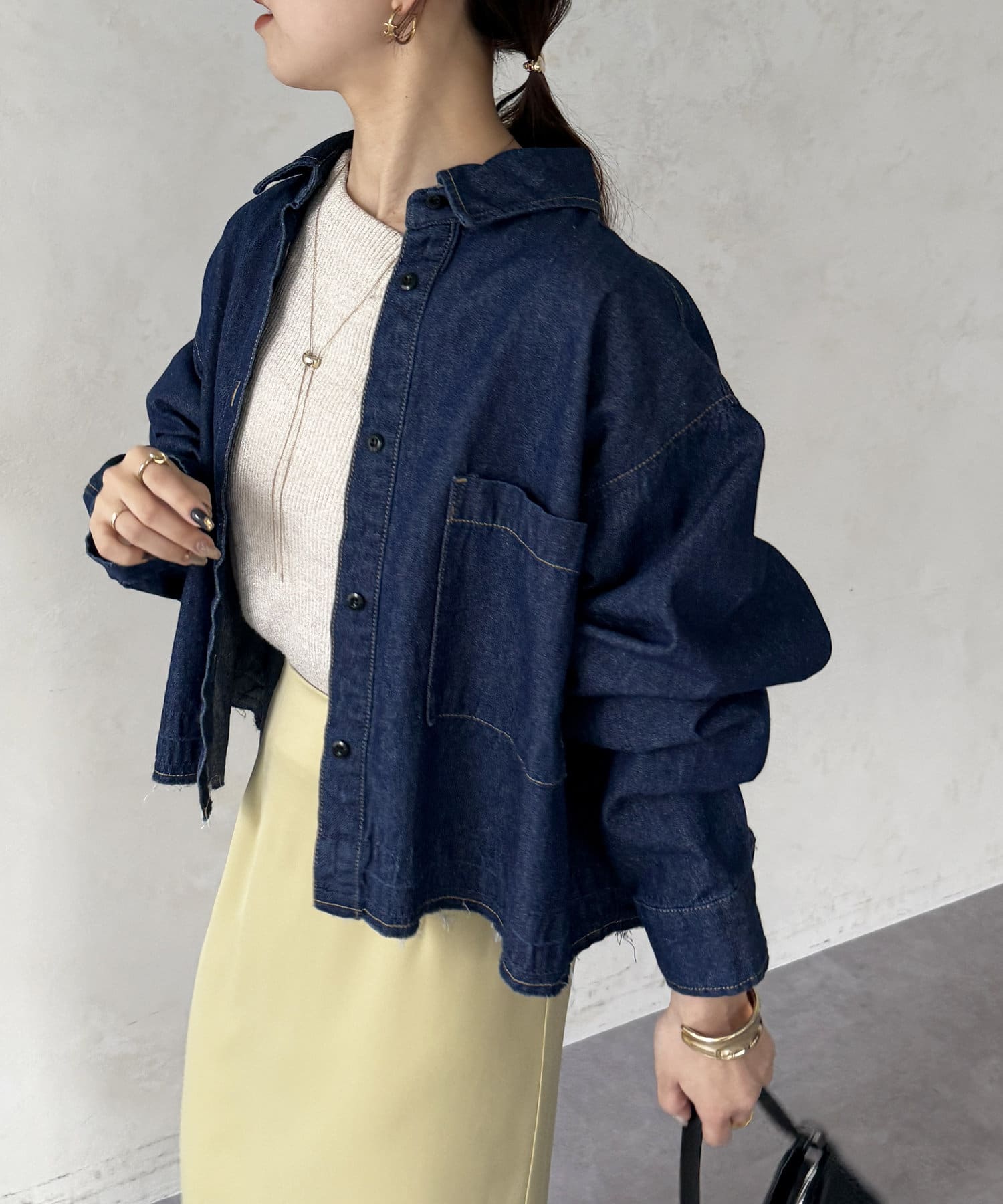 羽織るだけでこなれ感の出るショートデニムシャツ