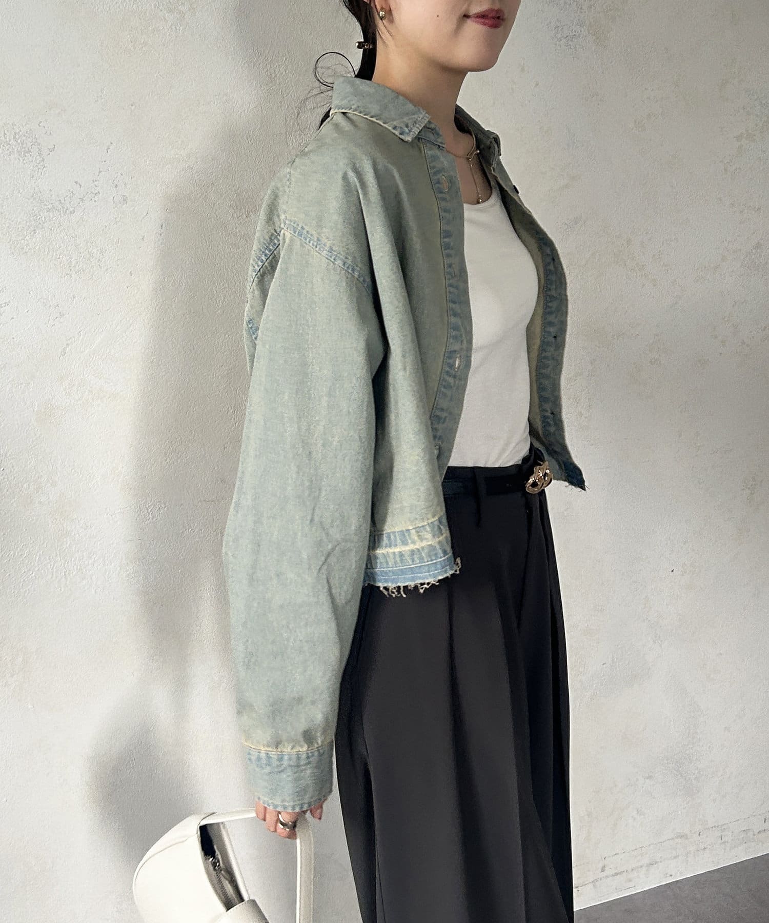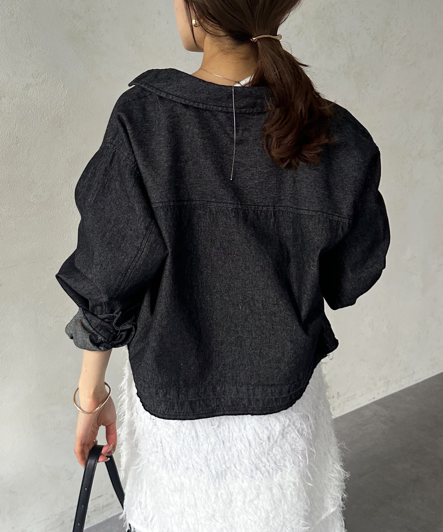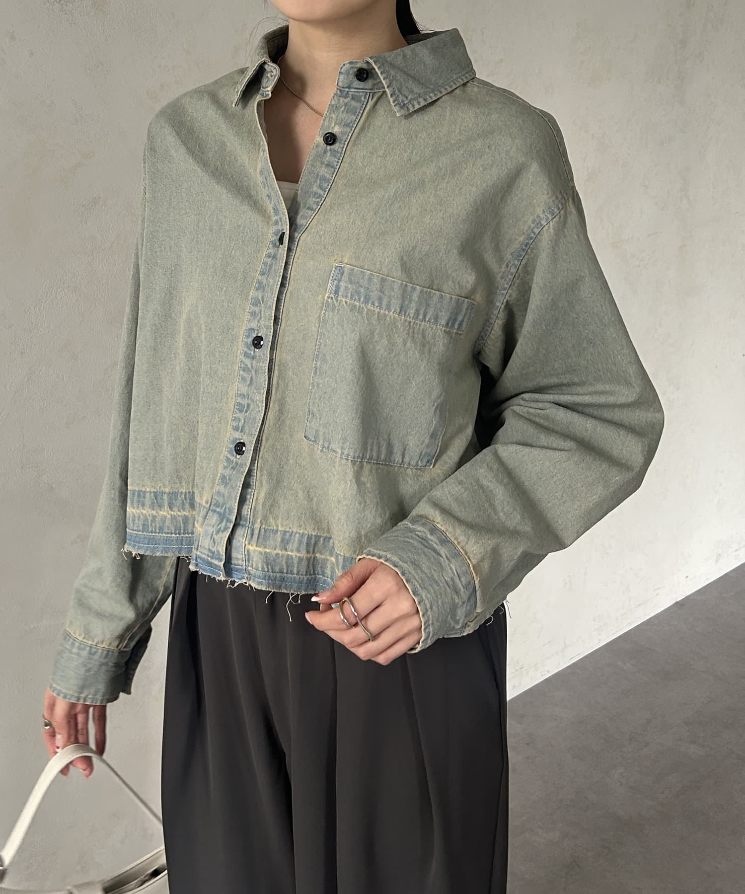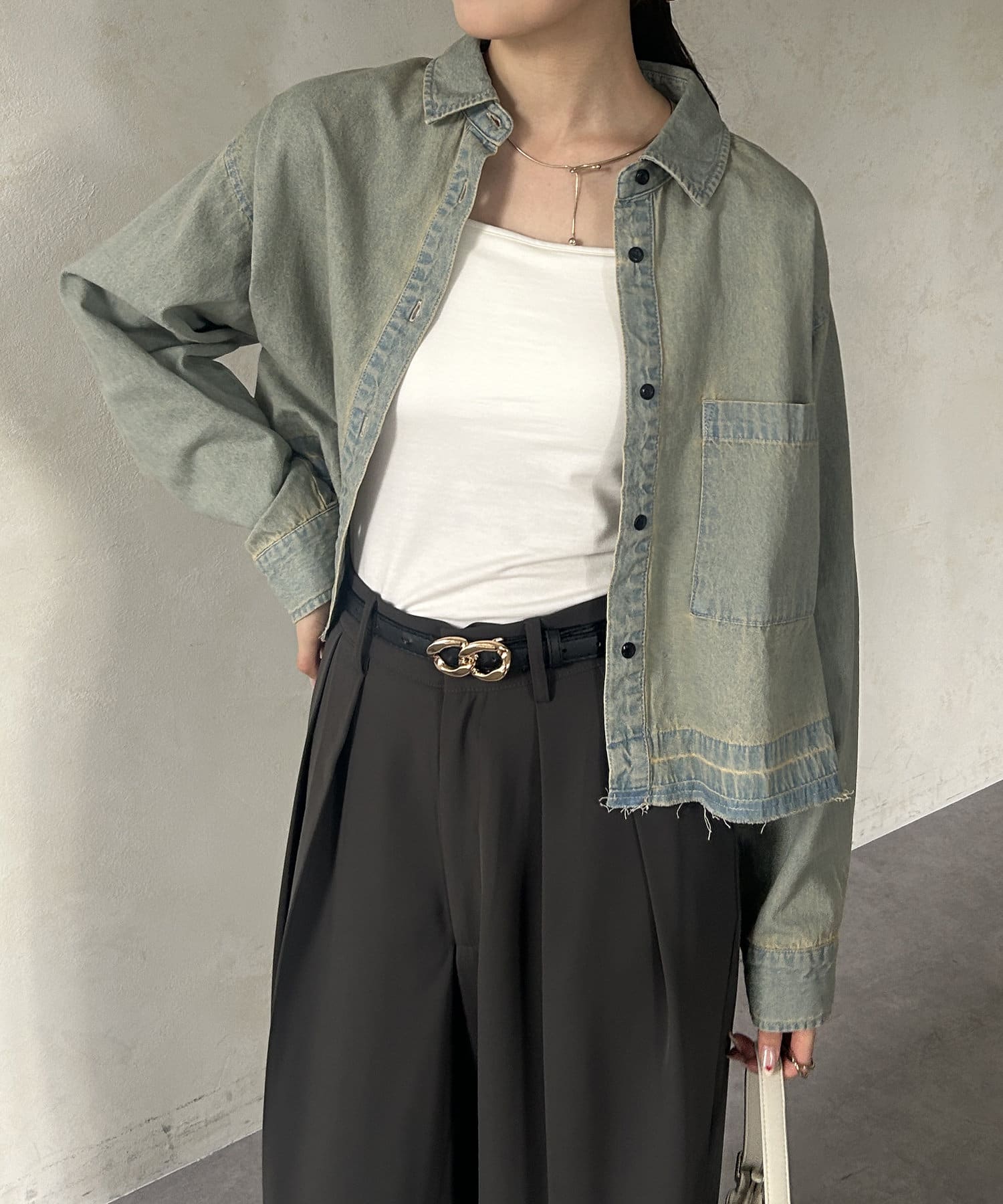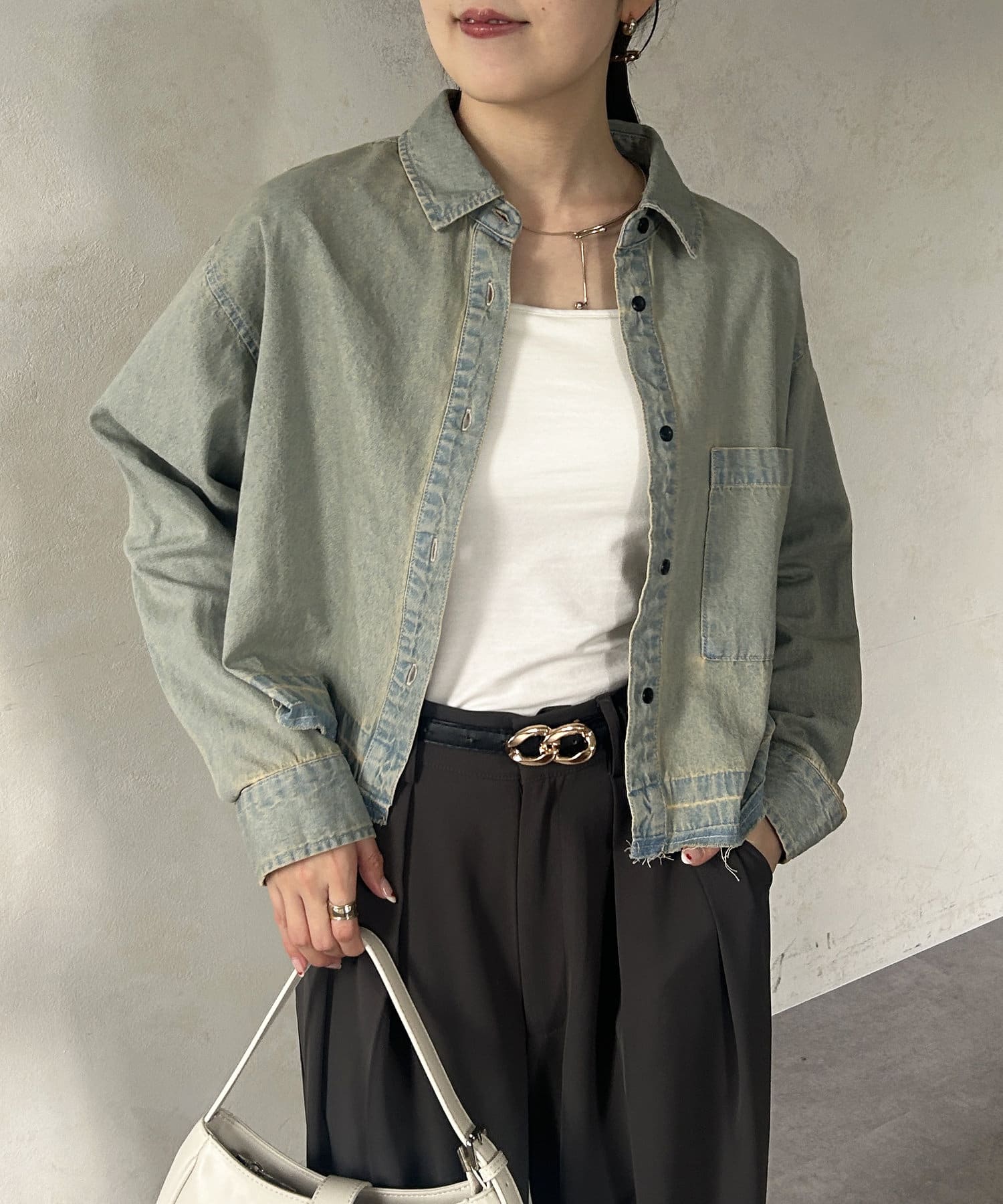 羽織るだけでこなれ感の出るショートデニムシャツ