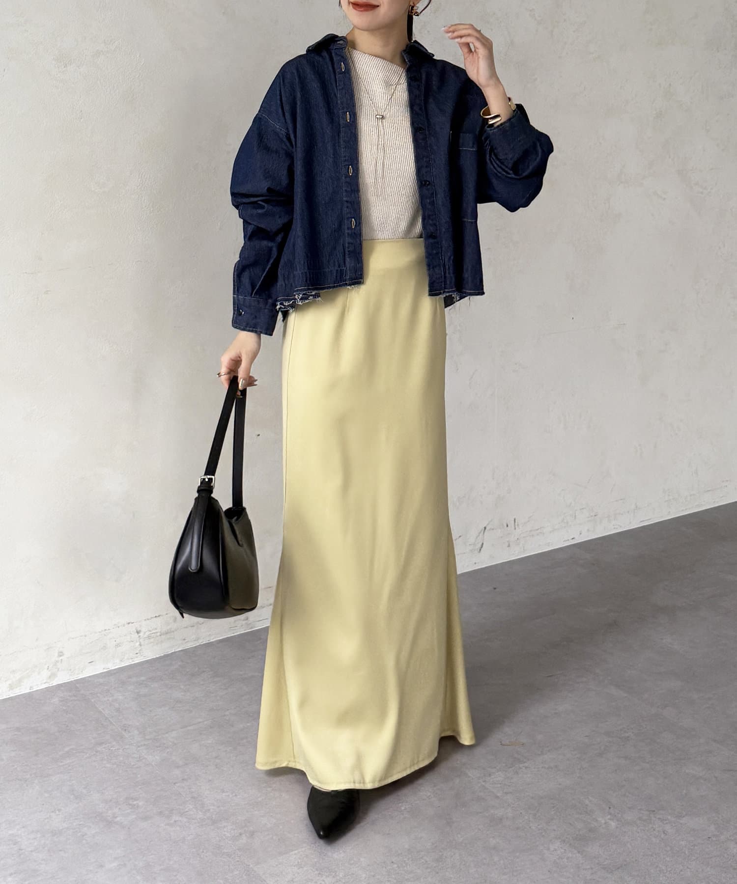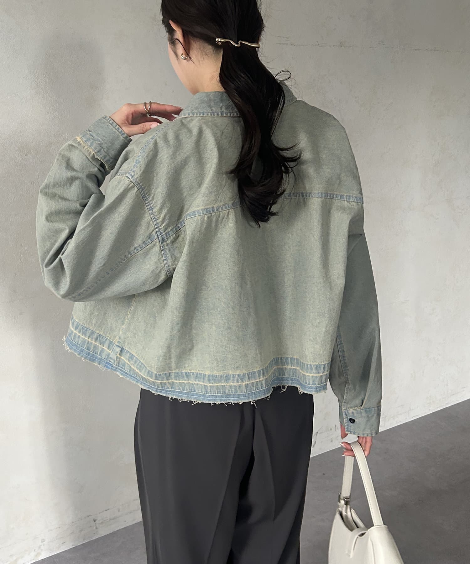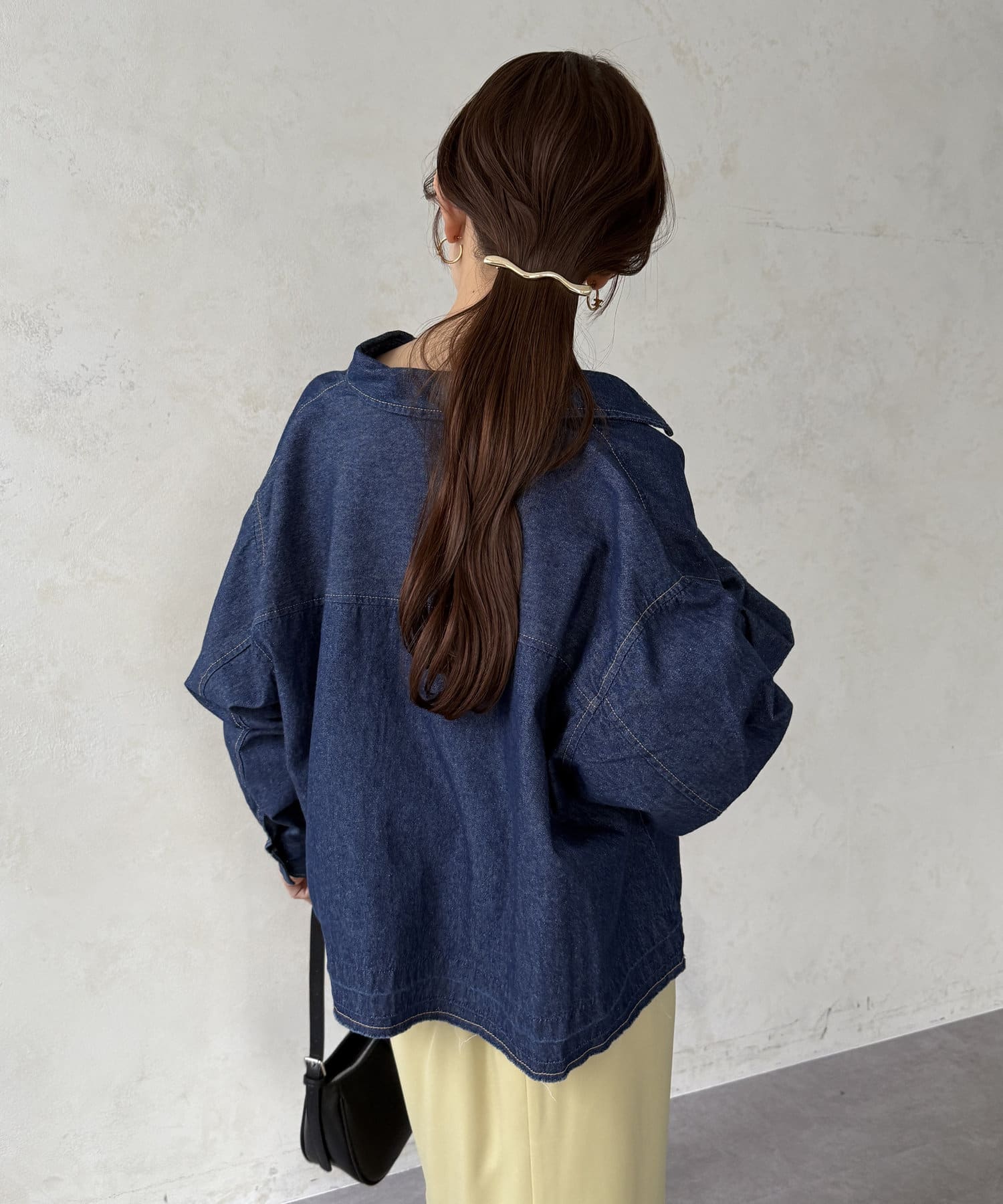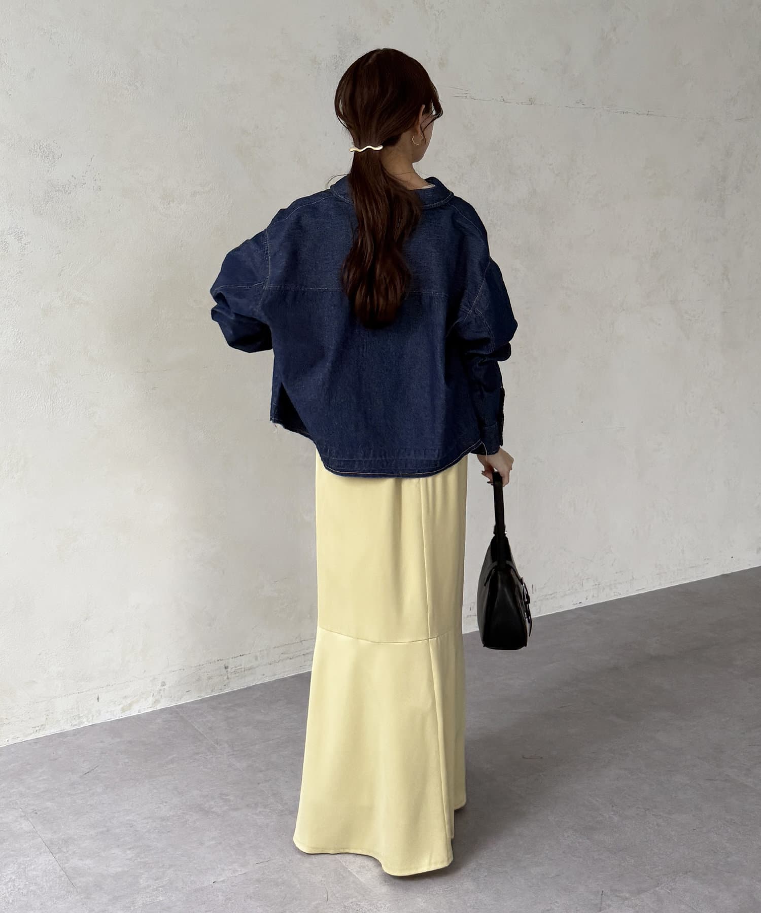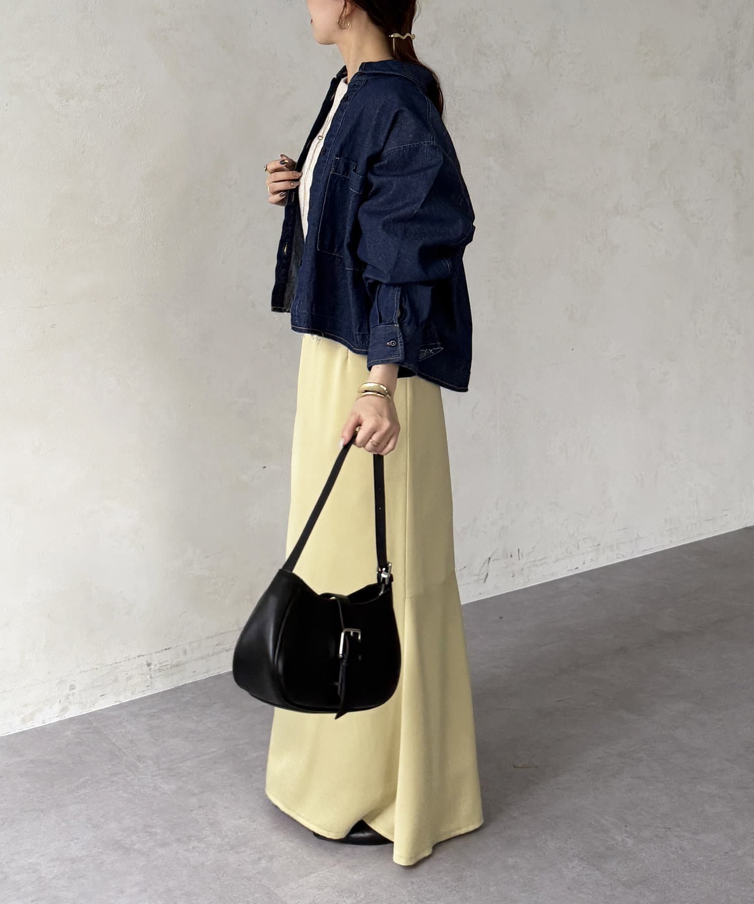 羽織るだけでこなれ感の出るショートデニムシャツ