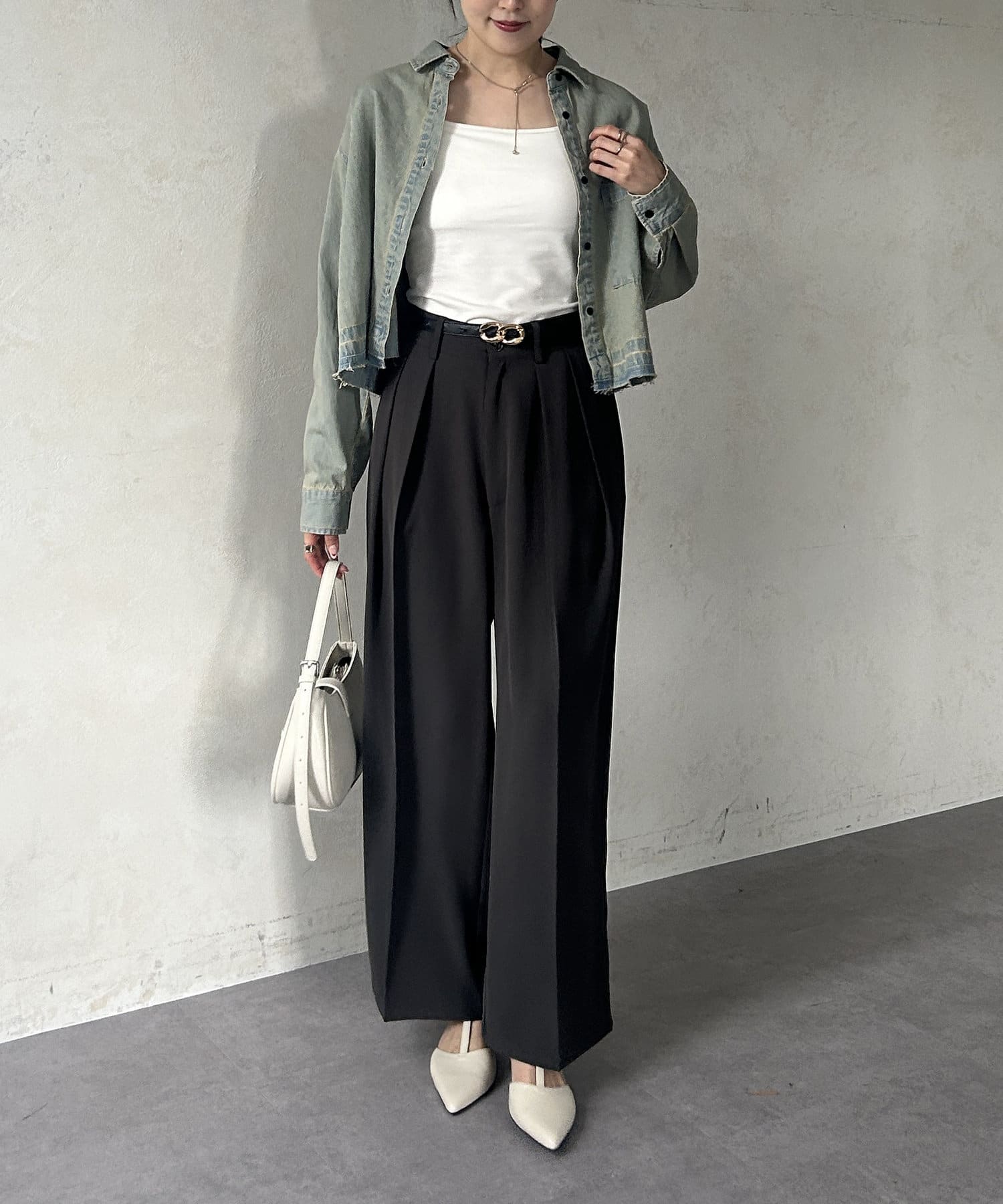 ・ワイドパンツ、スラックスなどボリュームのあるボトムともバランスよく着ていただけるアイテムです。