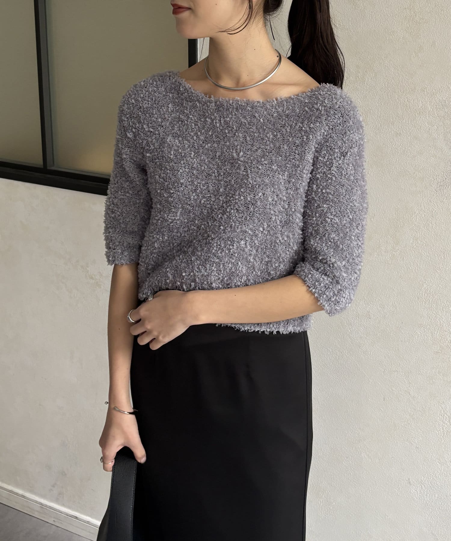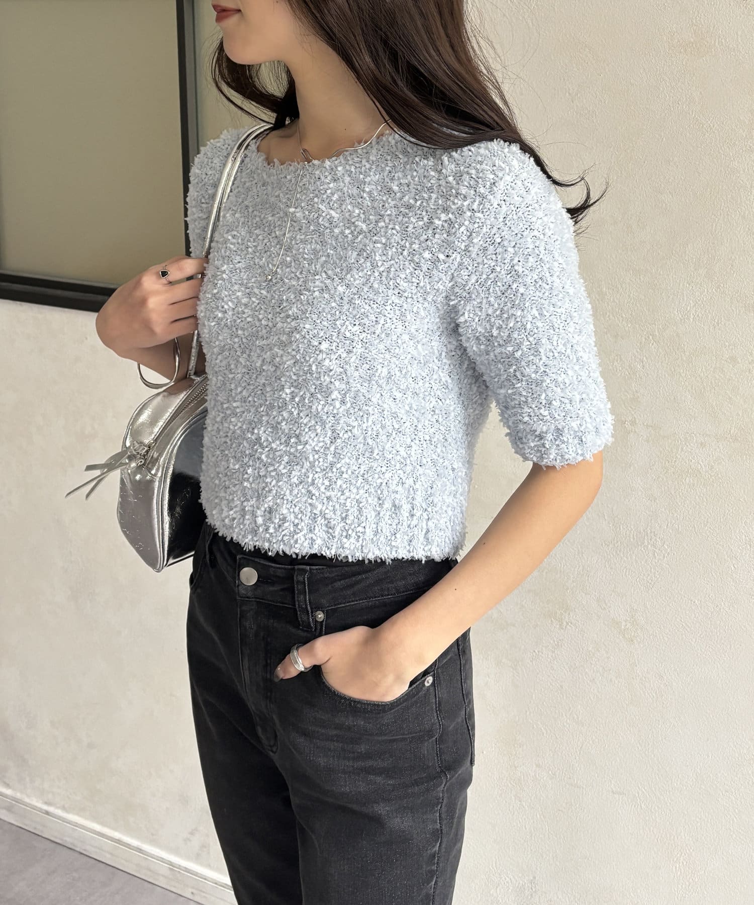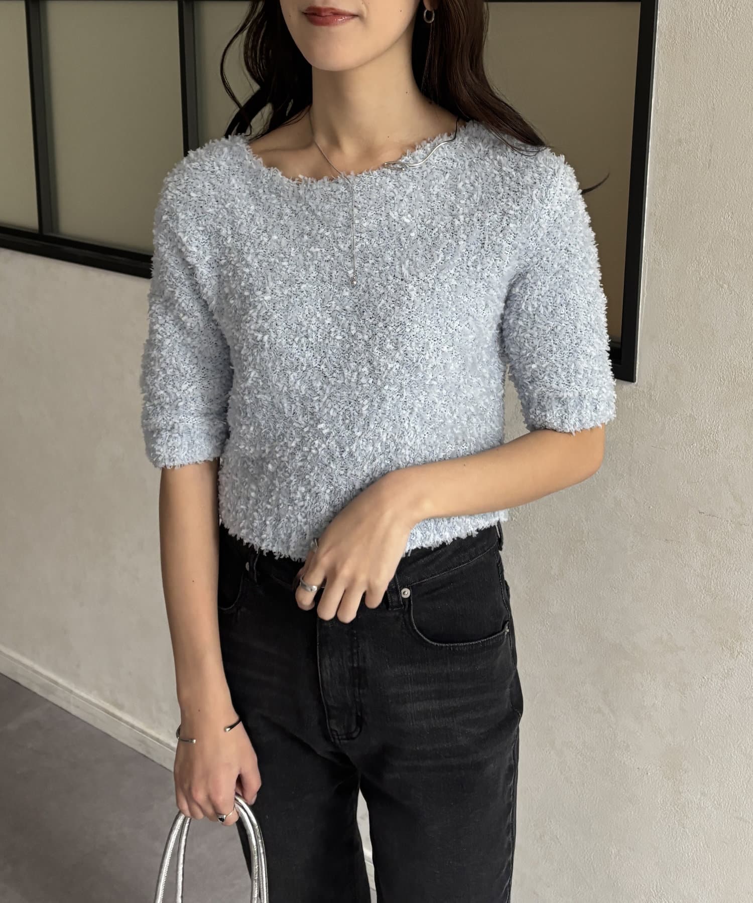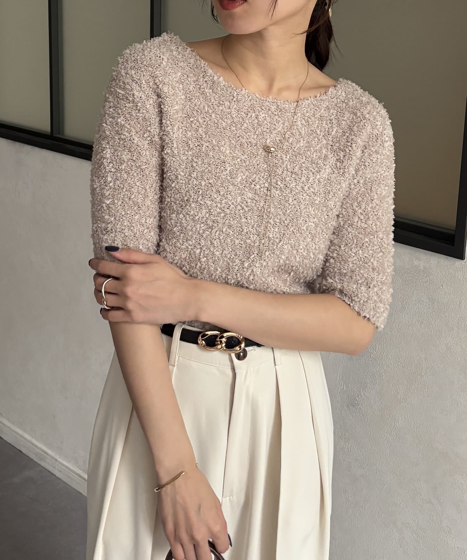 どんなコーディネートにもぴったりなリボンヤーンニット