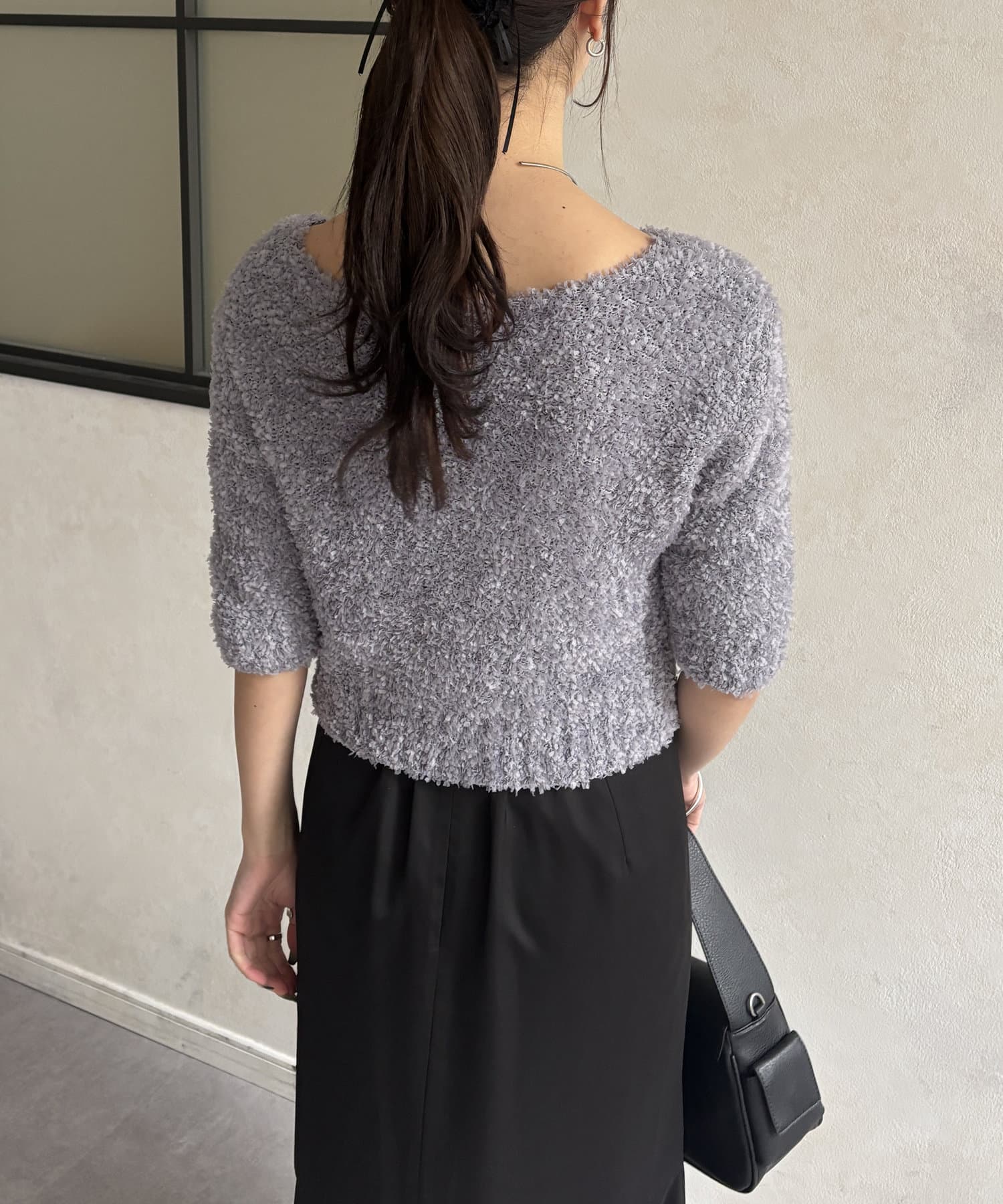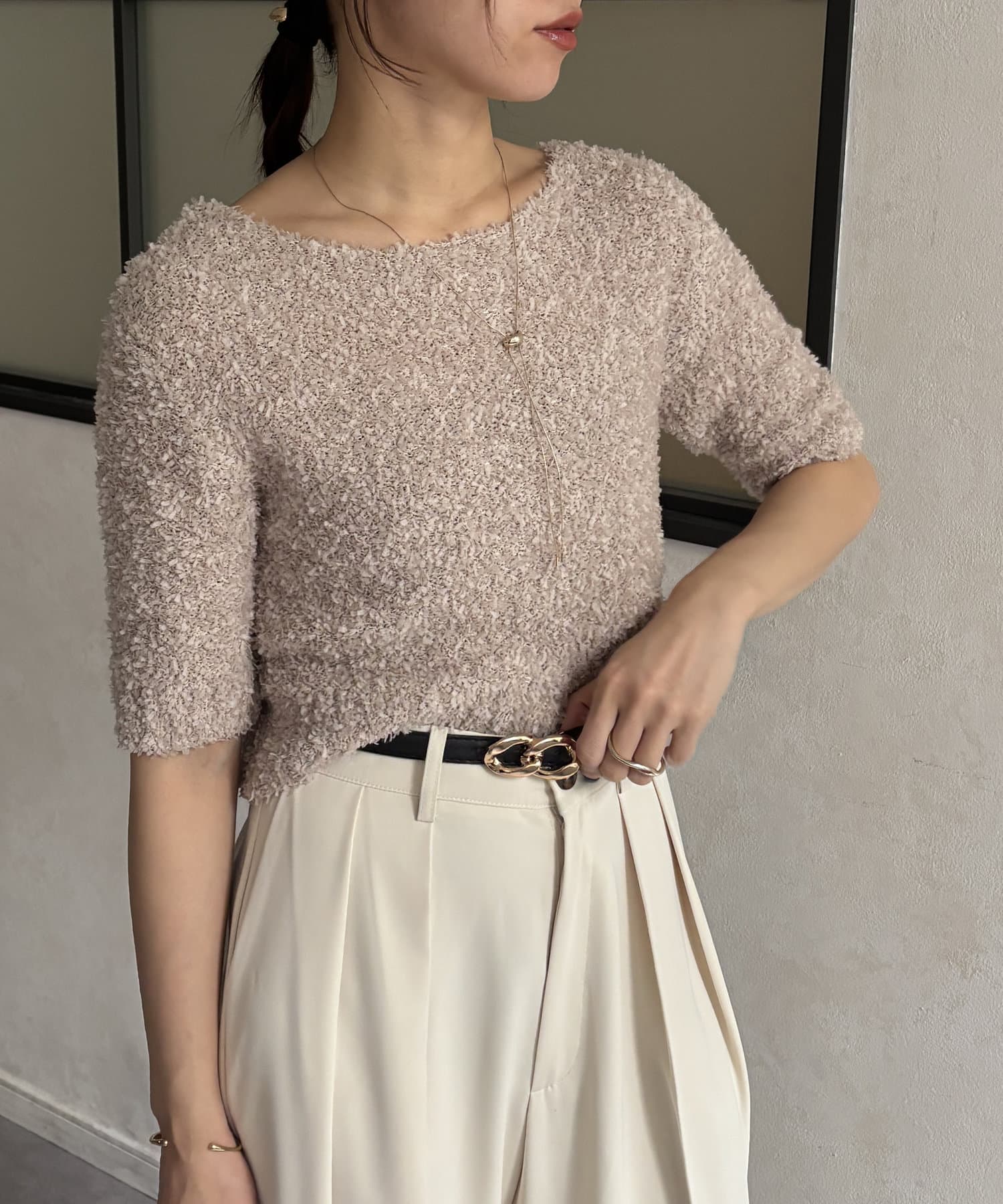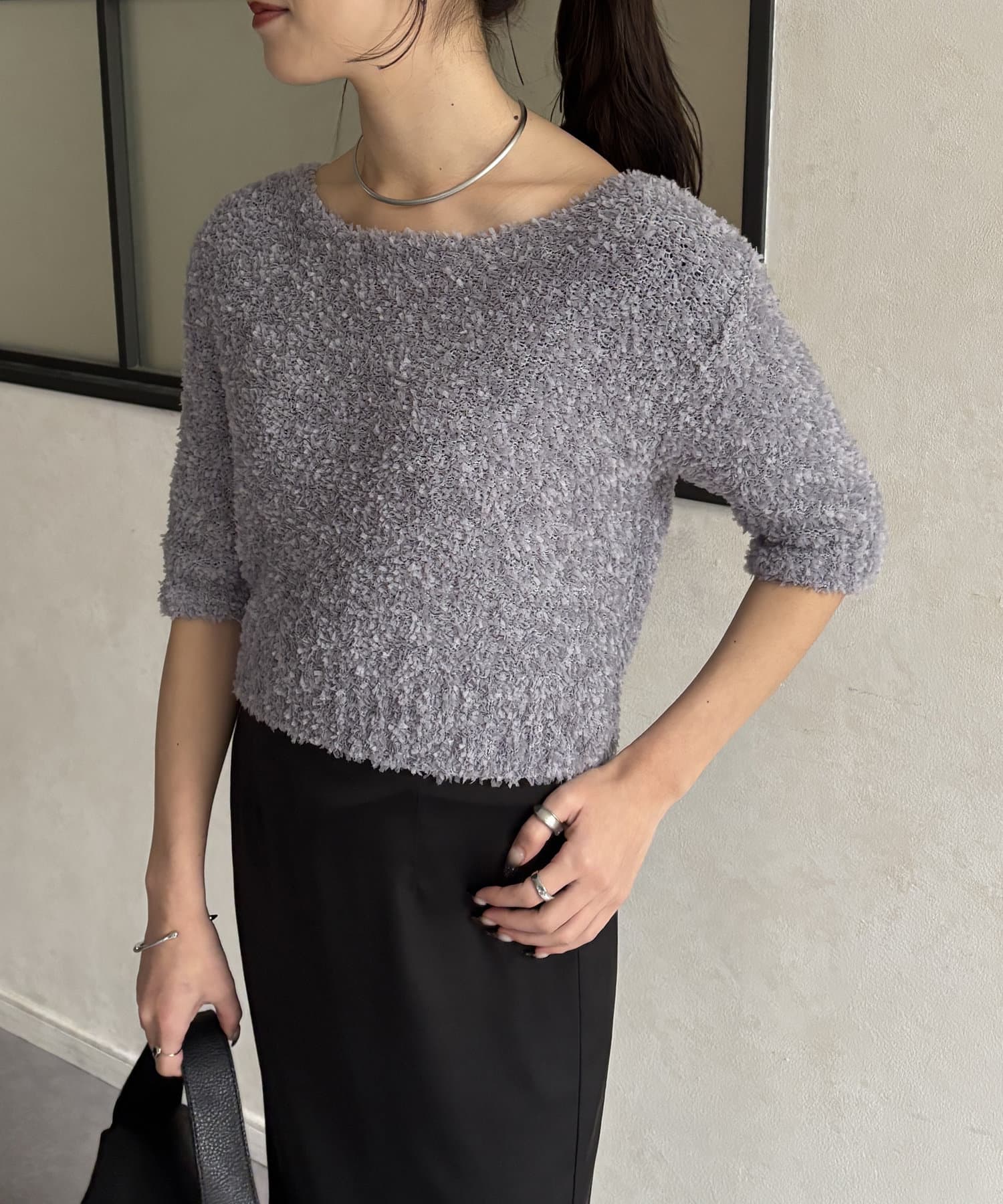どんなコーディネートにもぴったりなリボンヤーンニット