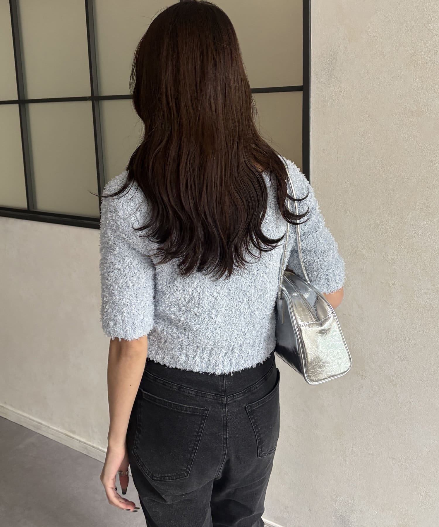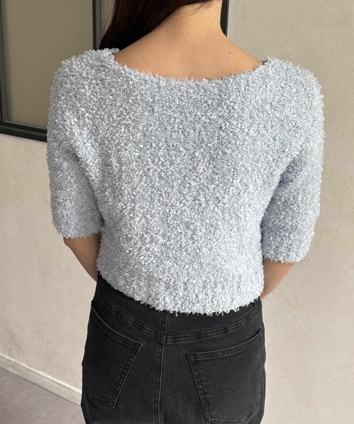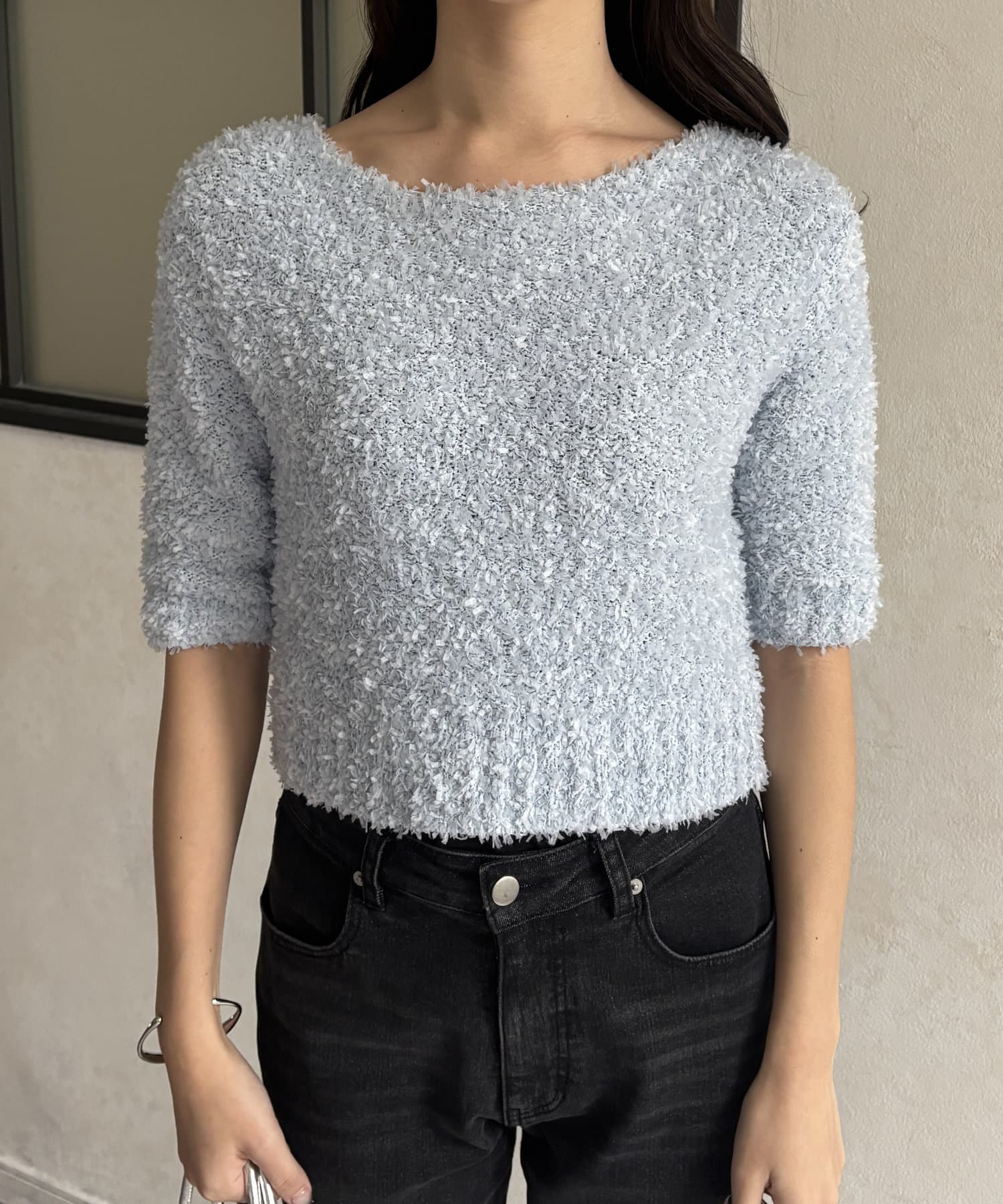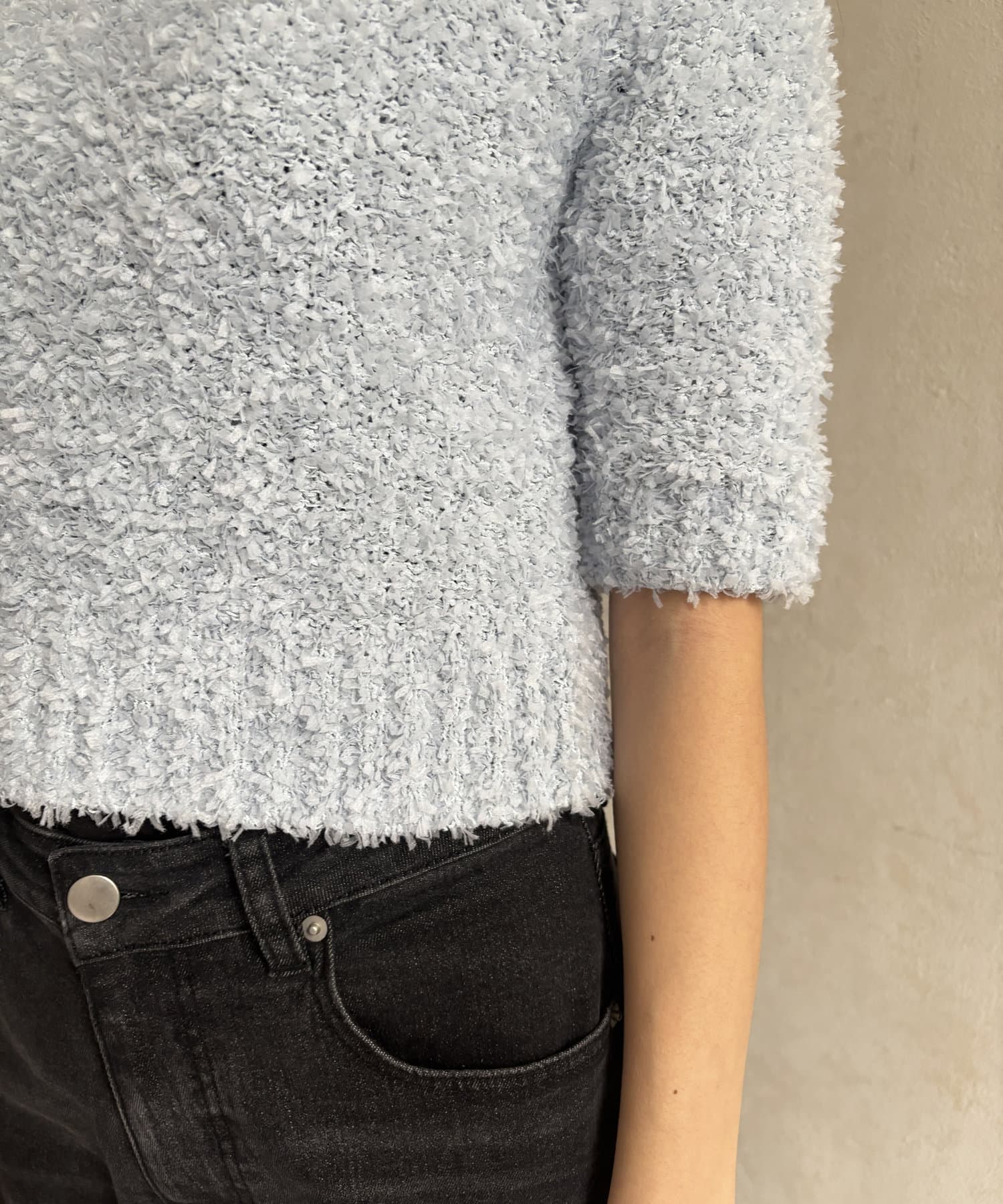 どんなコーディネートにもぴったりなリボンヤーンニット