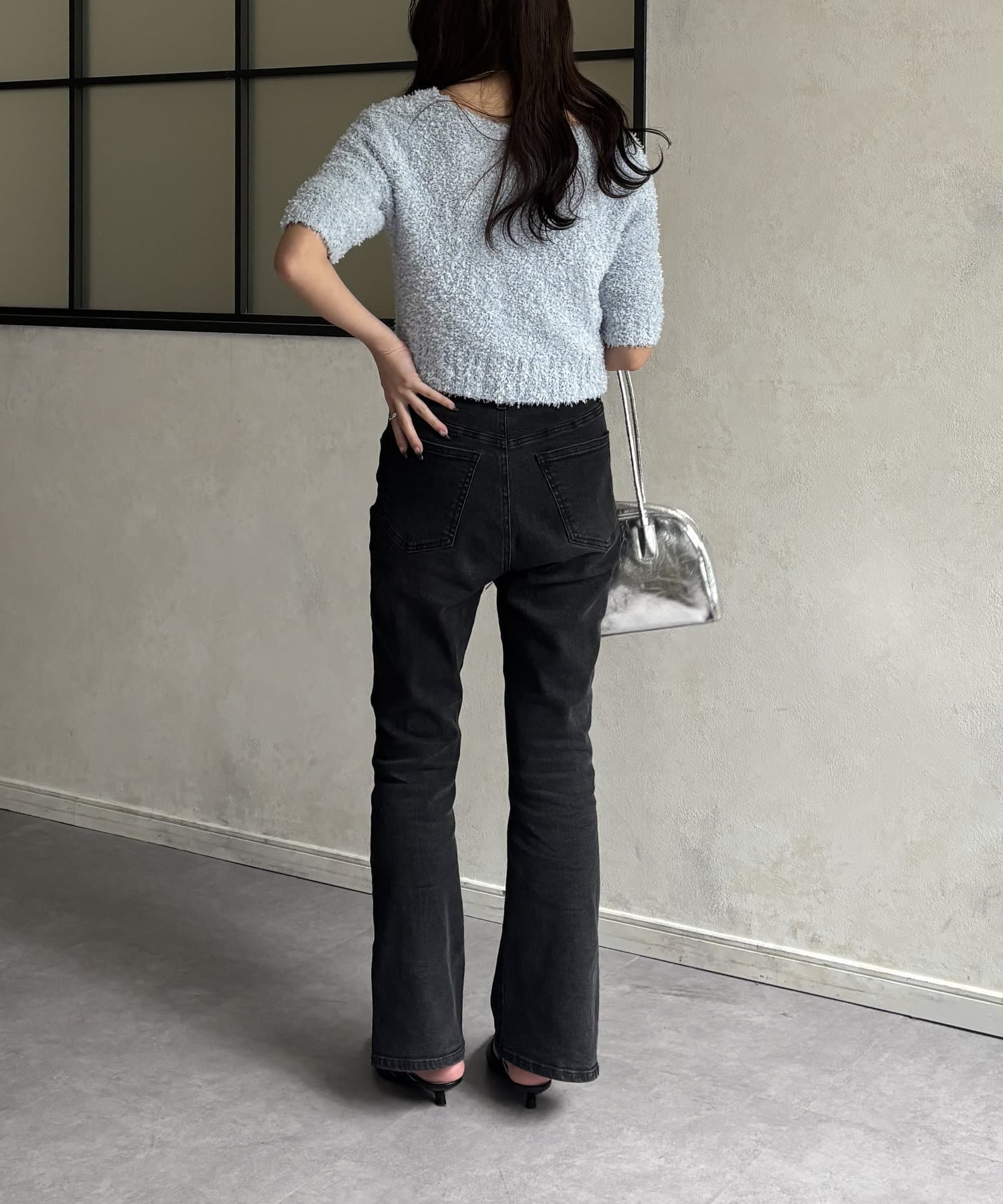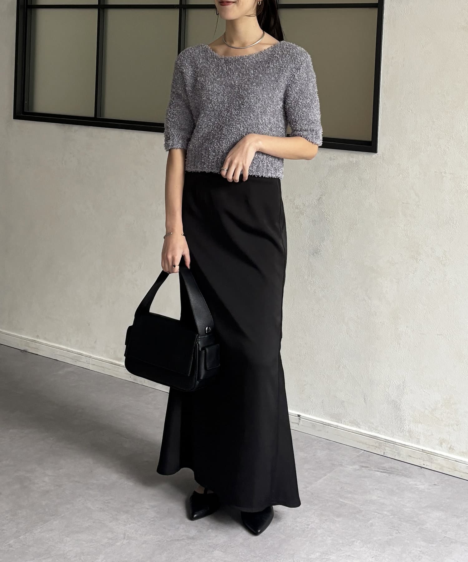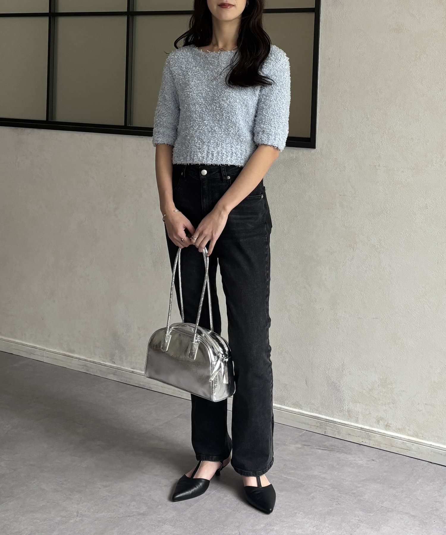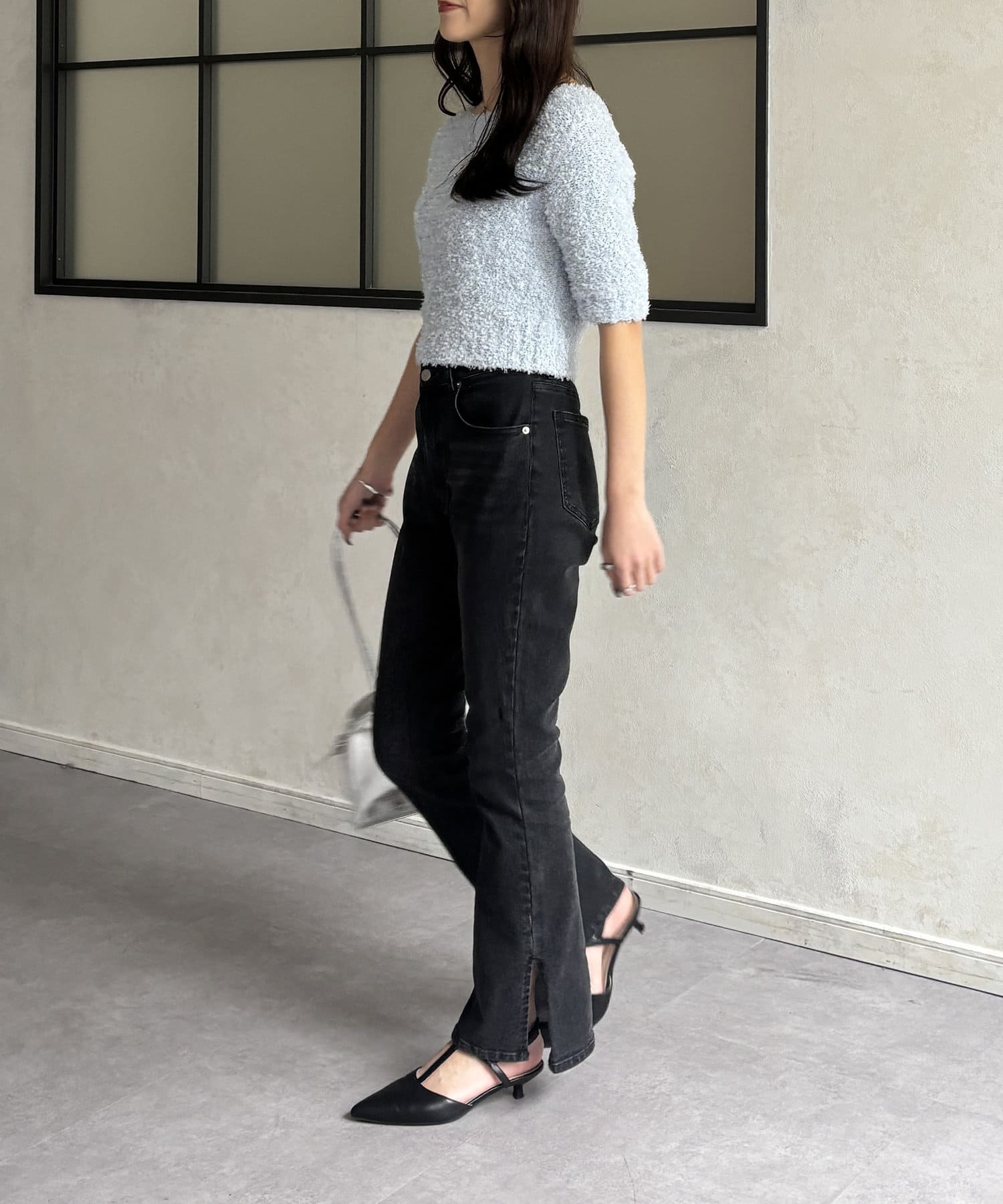 ・短めの丈なので、ハイウエストのパンツやスカート、ワイドパンツとの合わせがおすすめです。