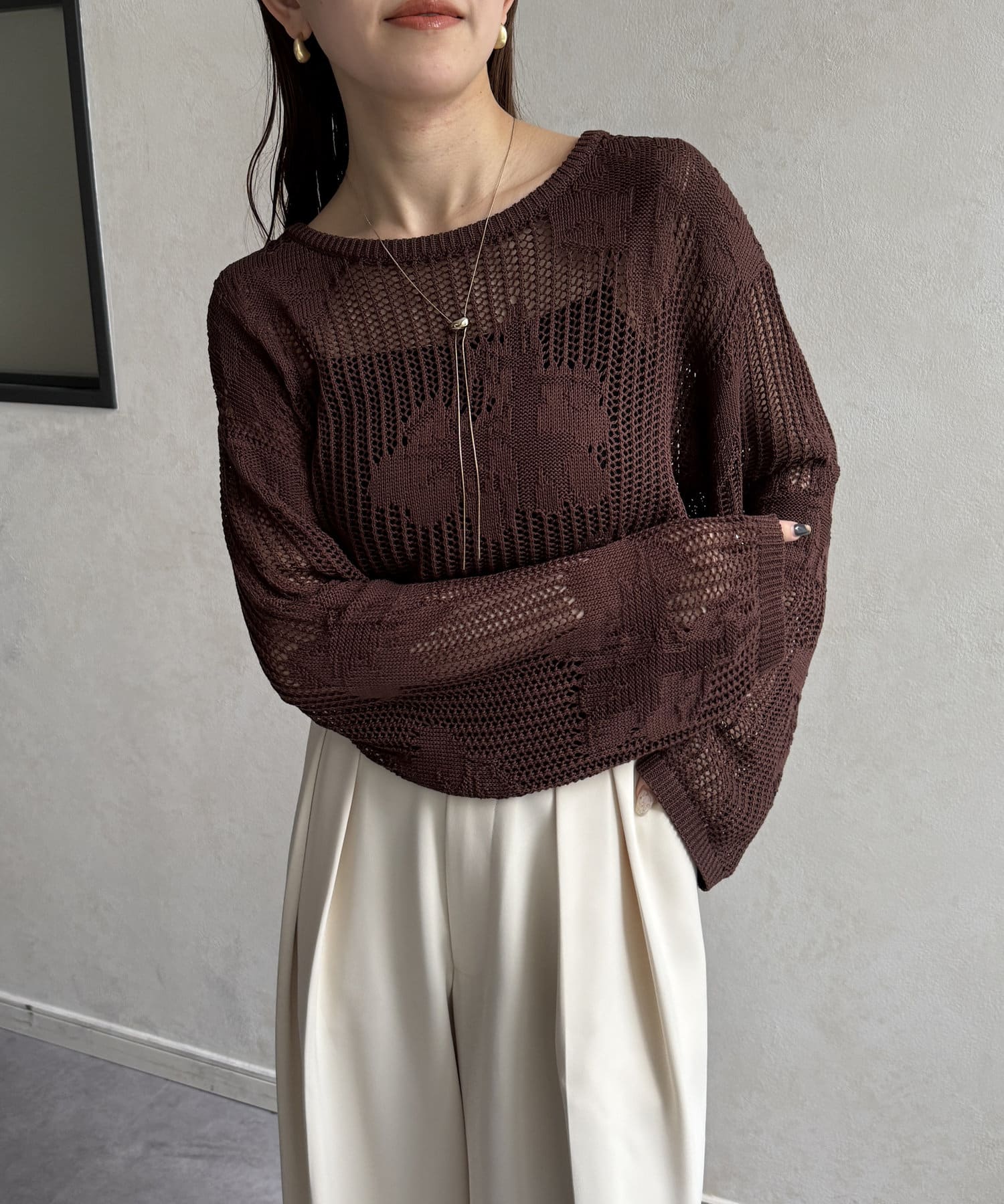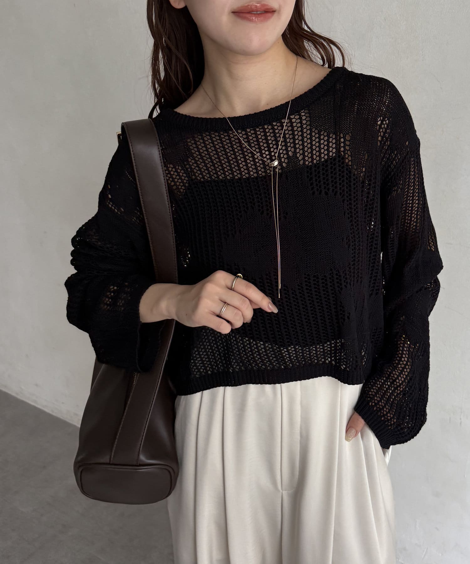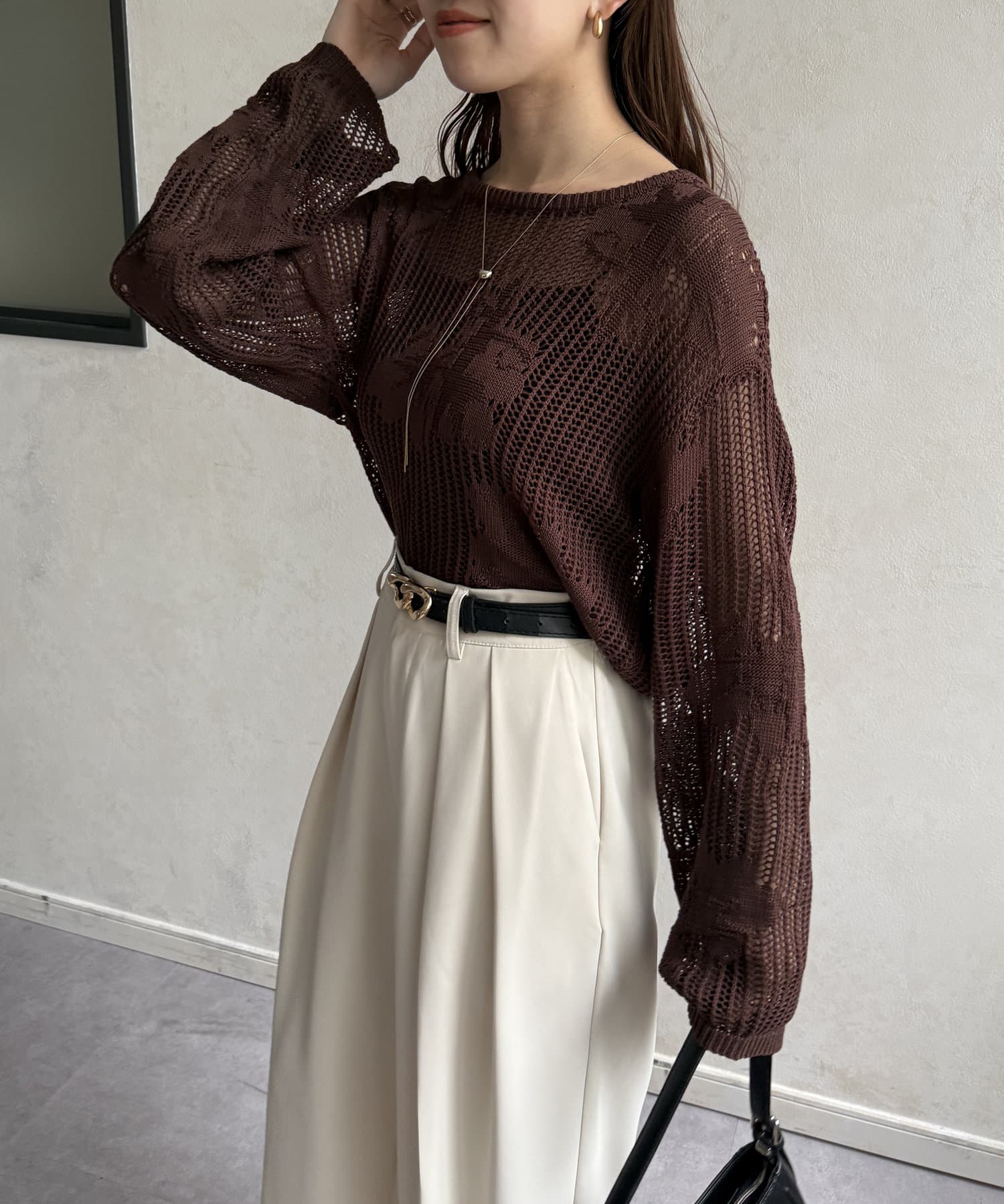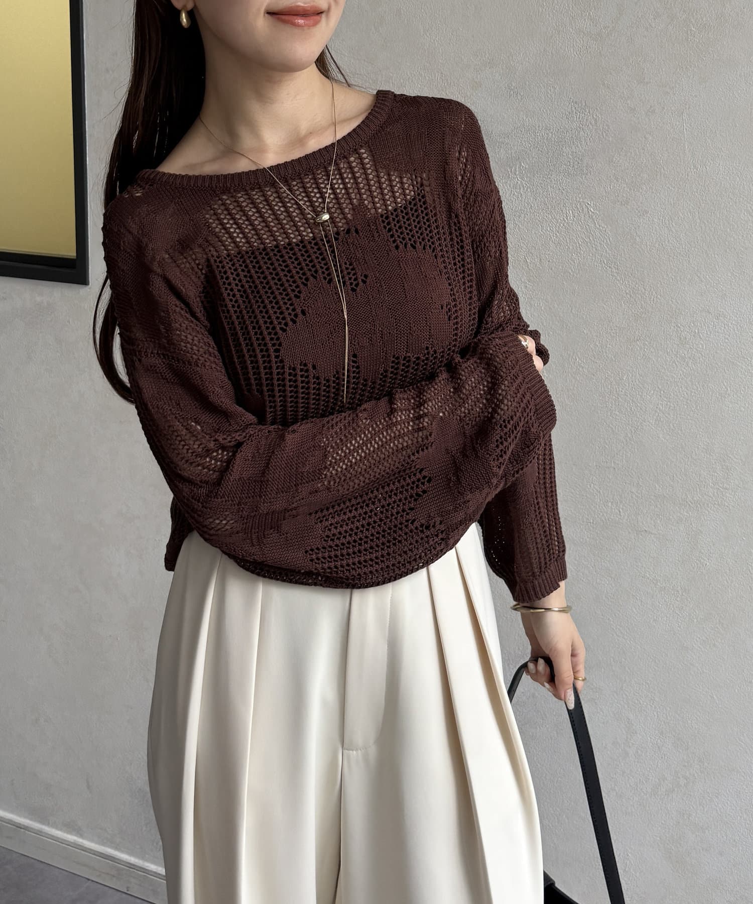 #メッシュニット #ジャガード #春ニット #大人カジュアル #きれいめ #透け感 #春夏コーデ #おでかけ