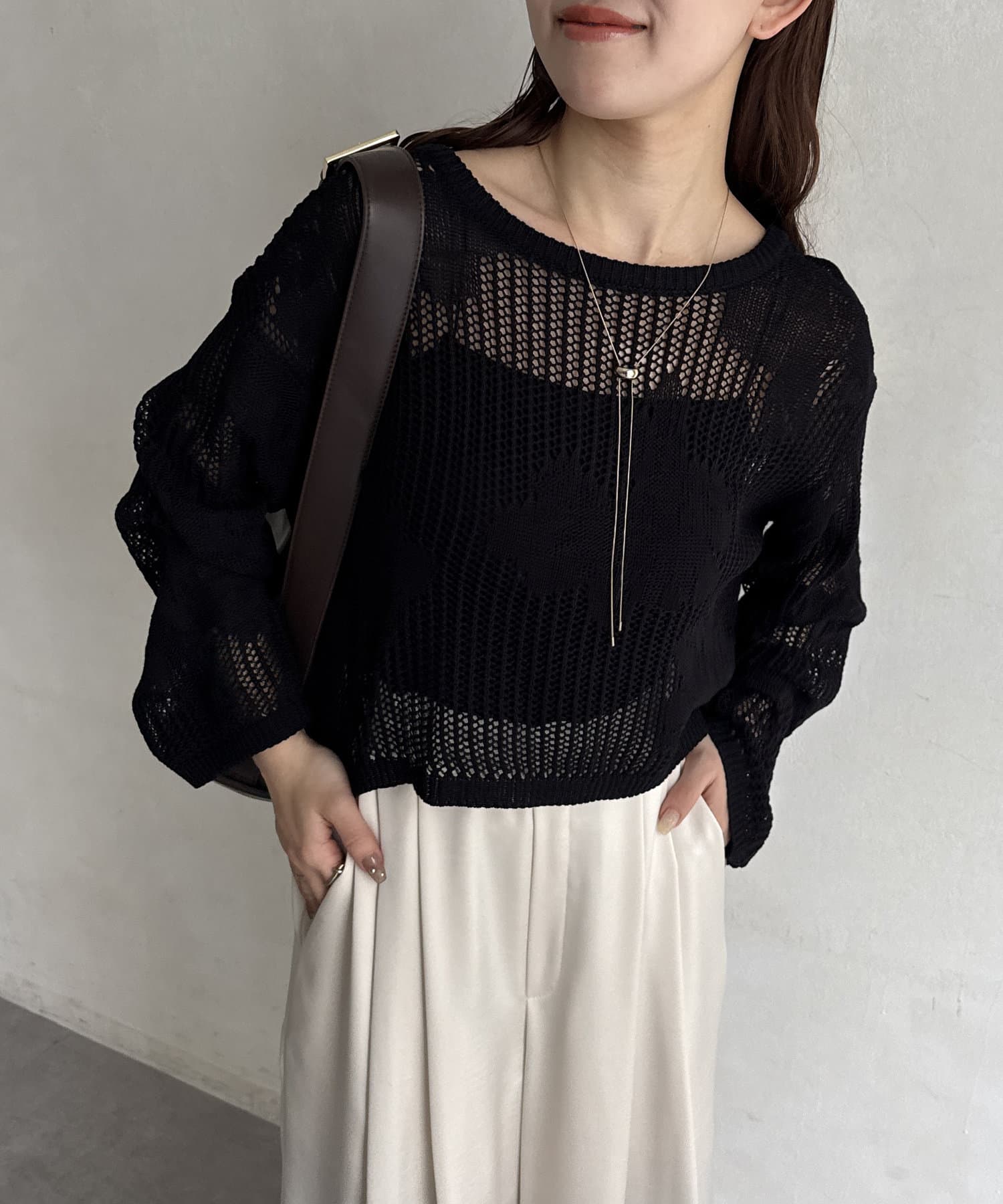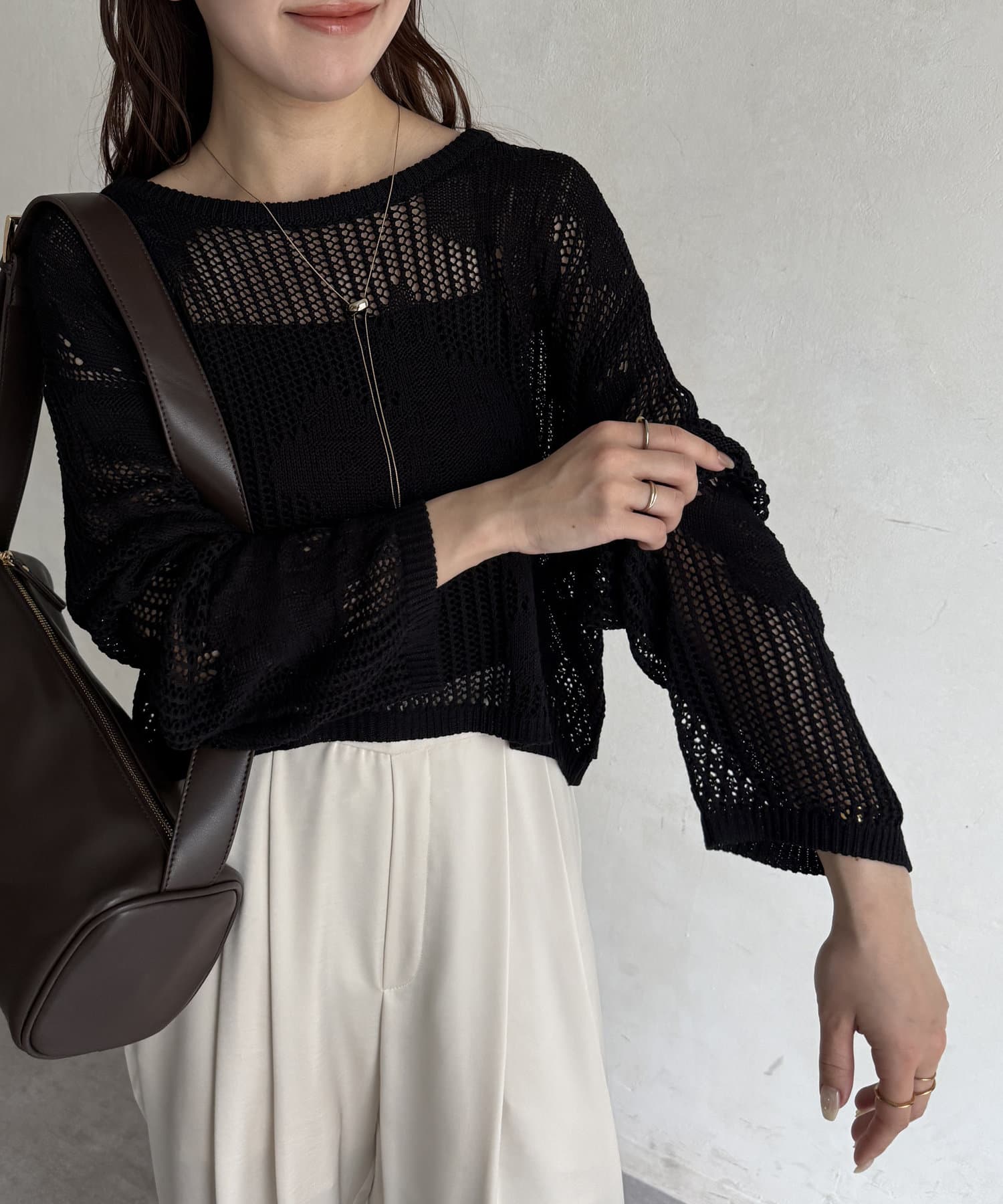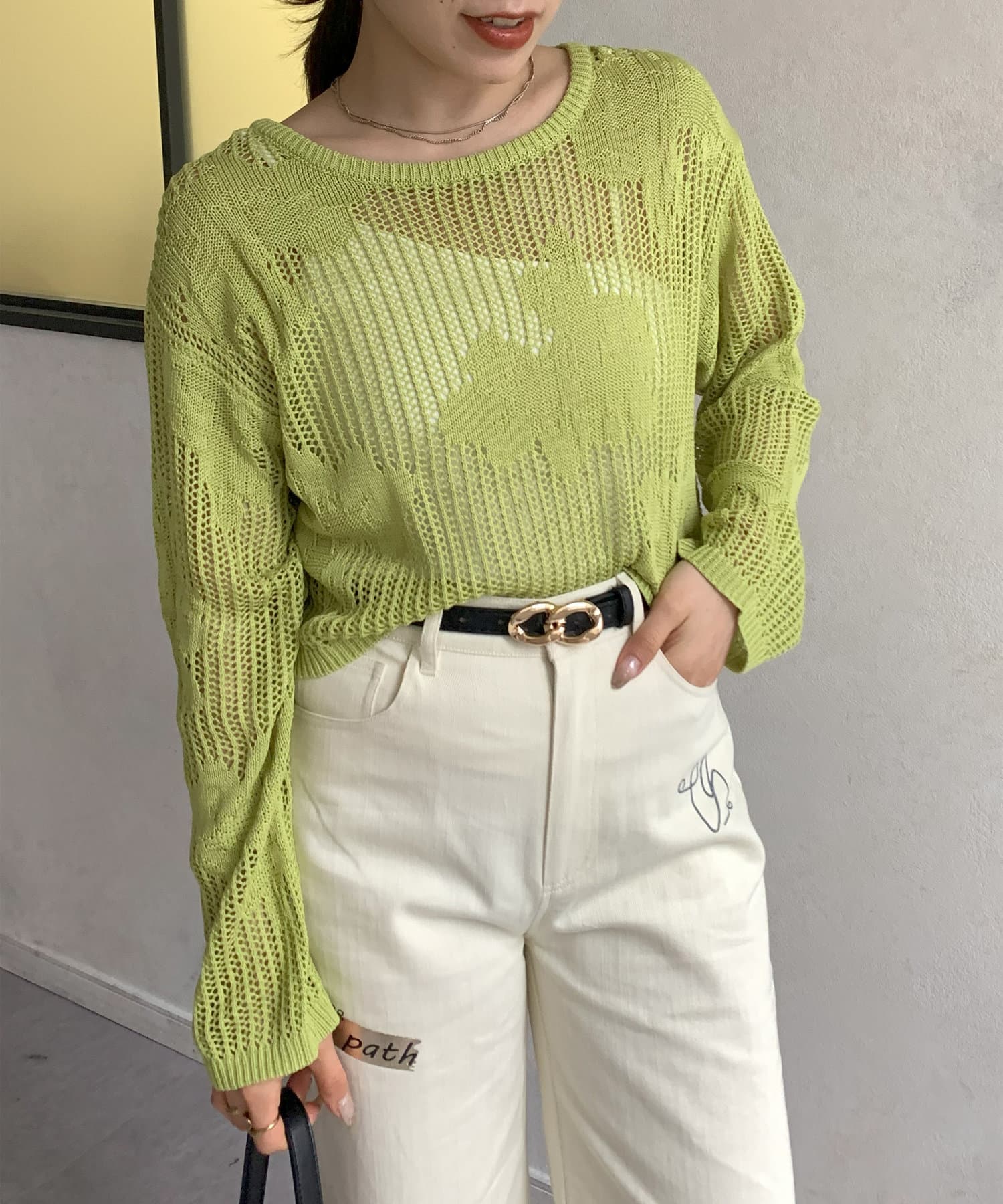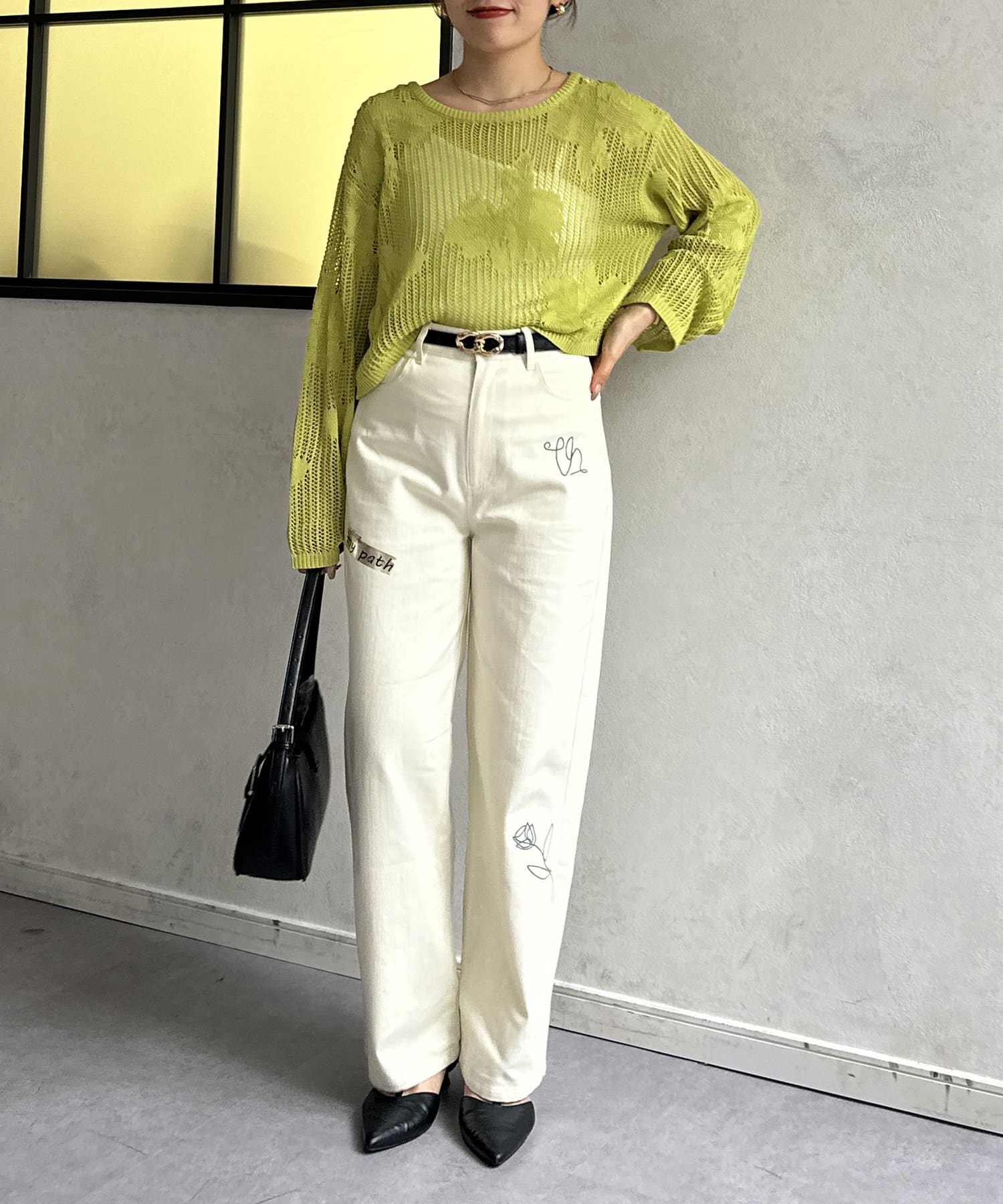 #メッシュニット #ジャガード #春ニット #大人カジュアル #きれいめ #透け感 #春夏コーデ #おでかけ