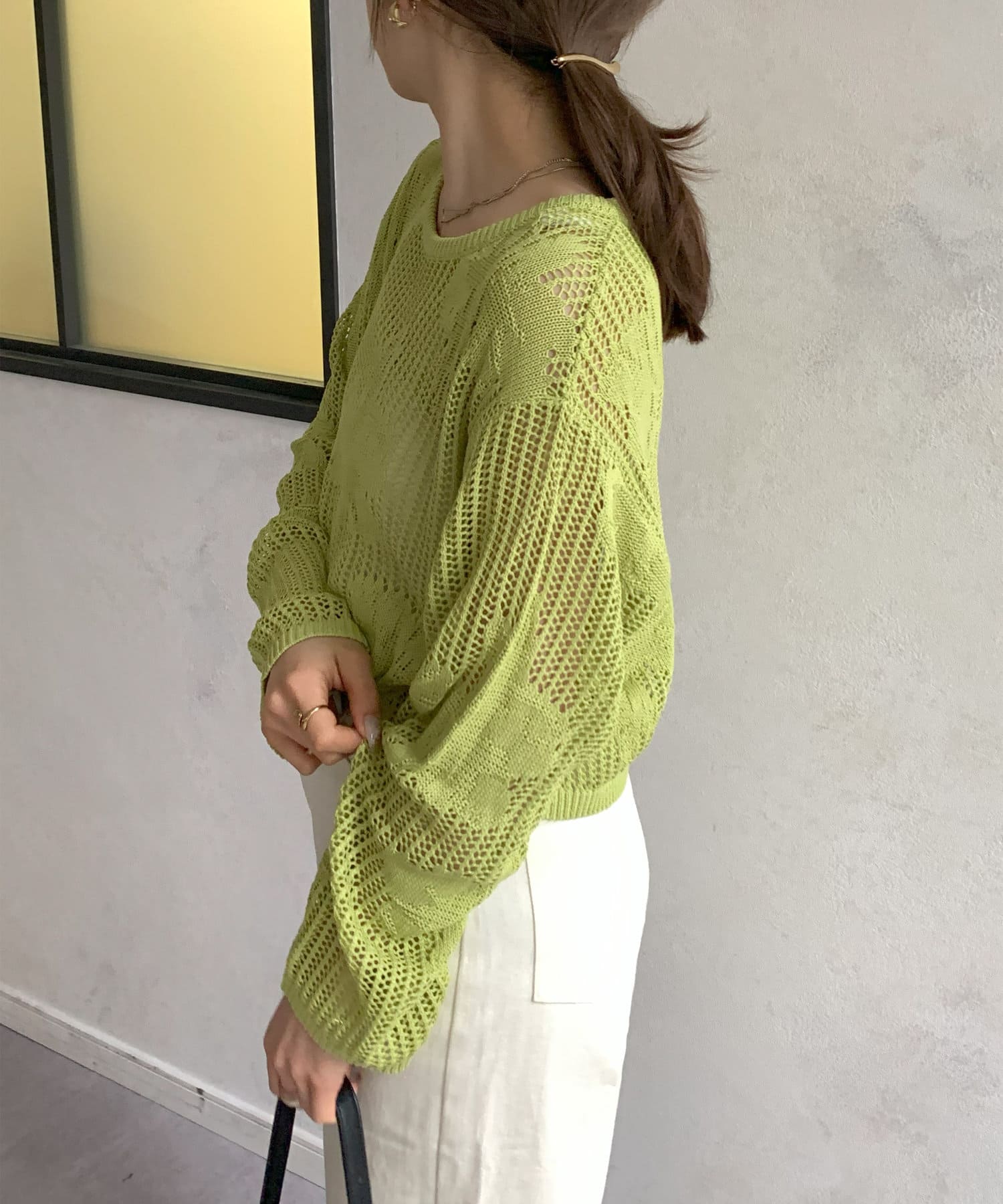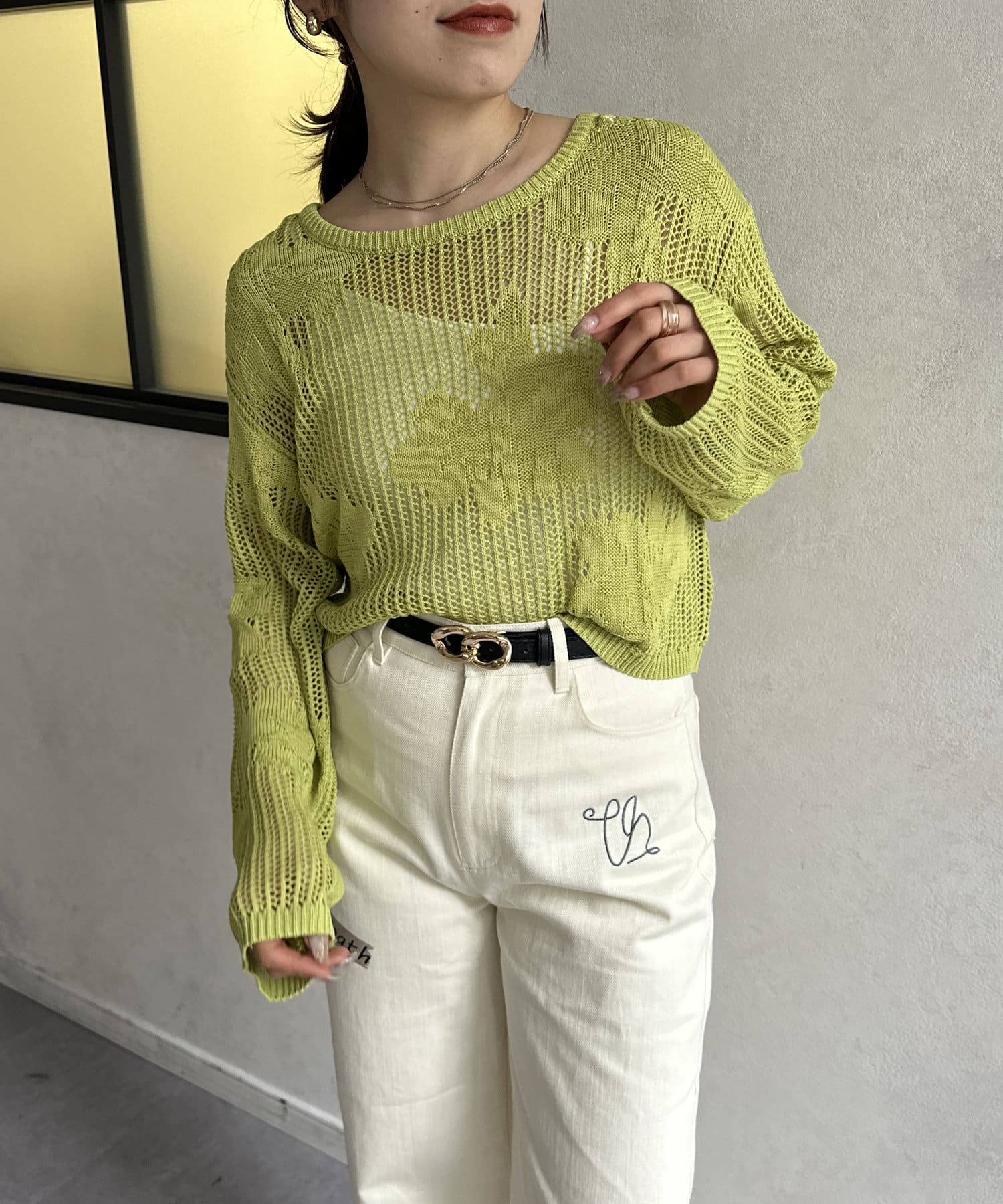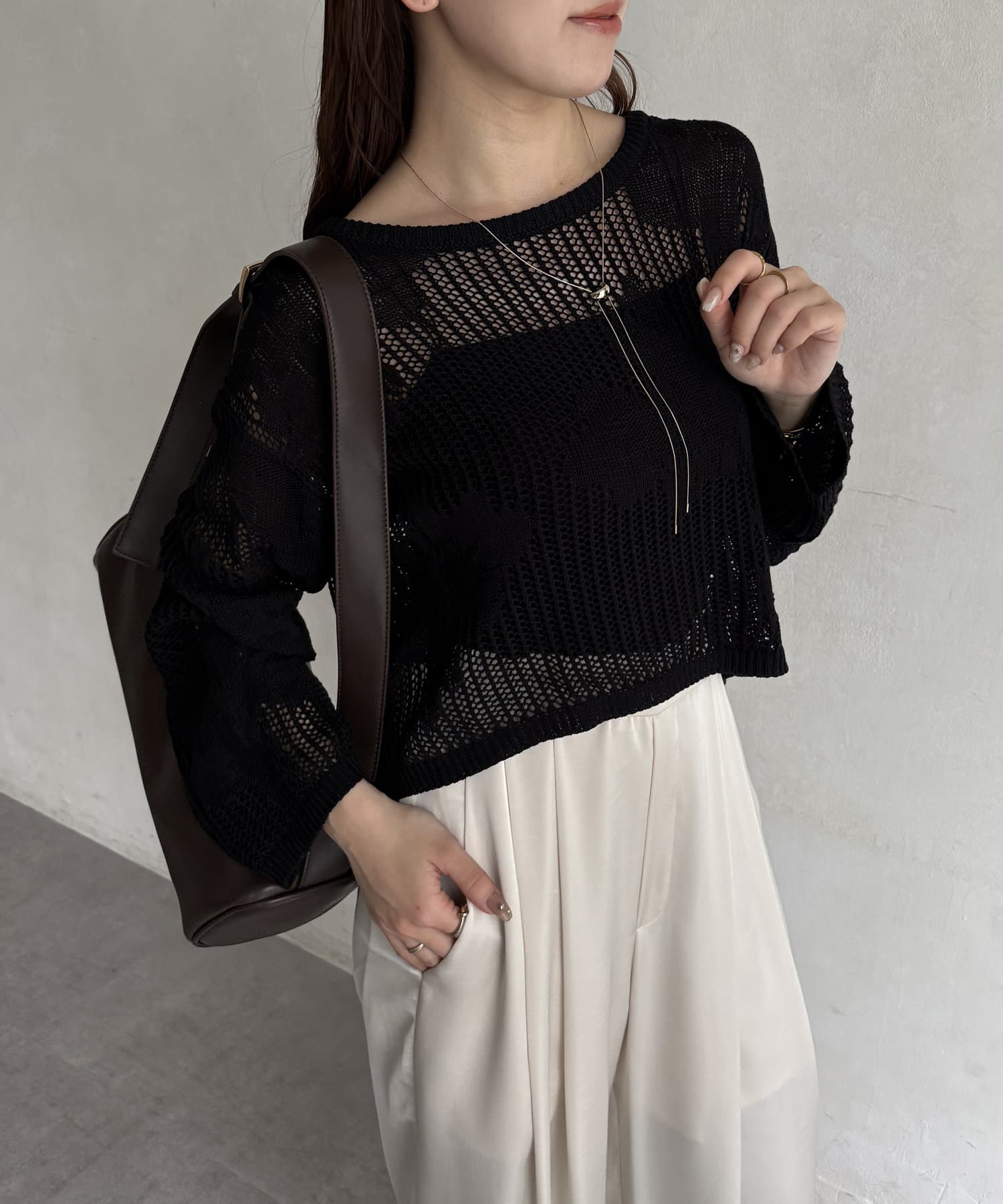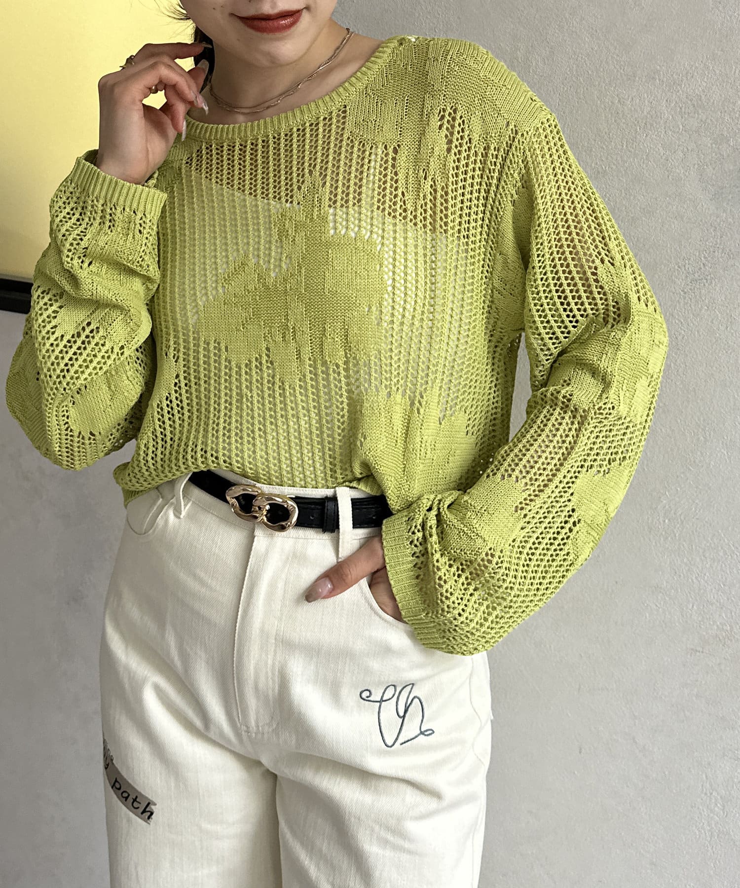 #メッシュニット #ジャガード #春ニット #大人カジュアル #きれいめ #透け感 #春夏コーデ #おでかけ