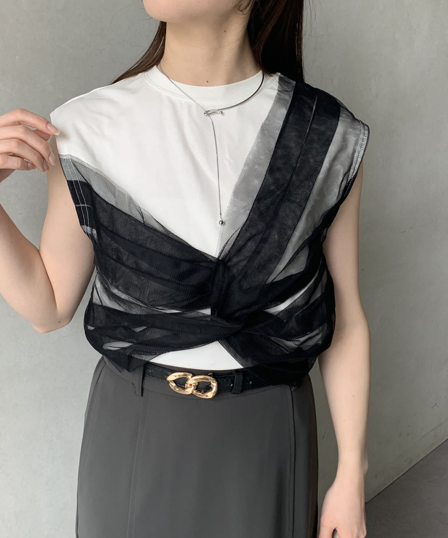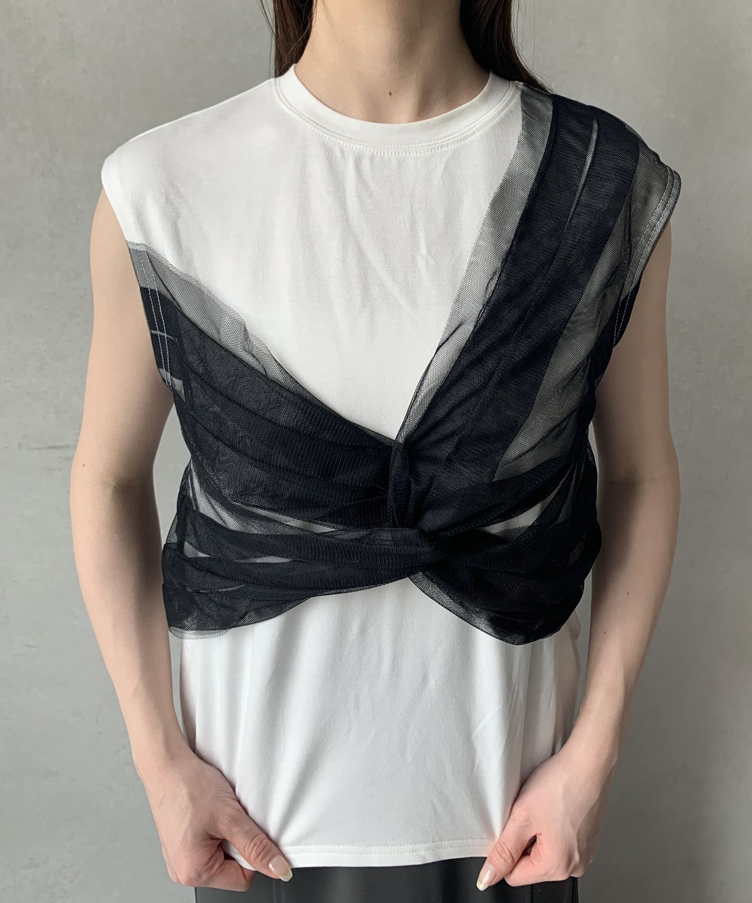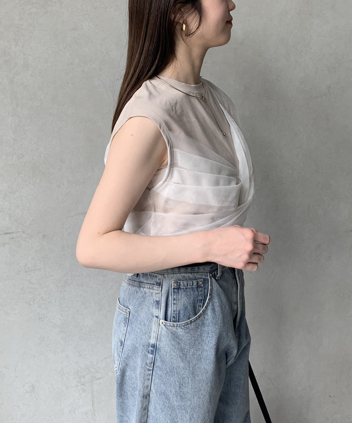 ツイストチュールドッキングノースリプルオーバー