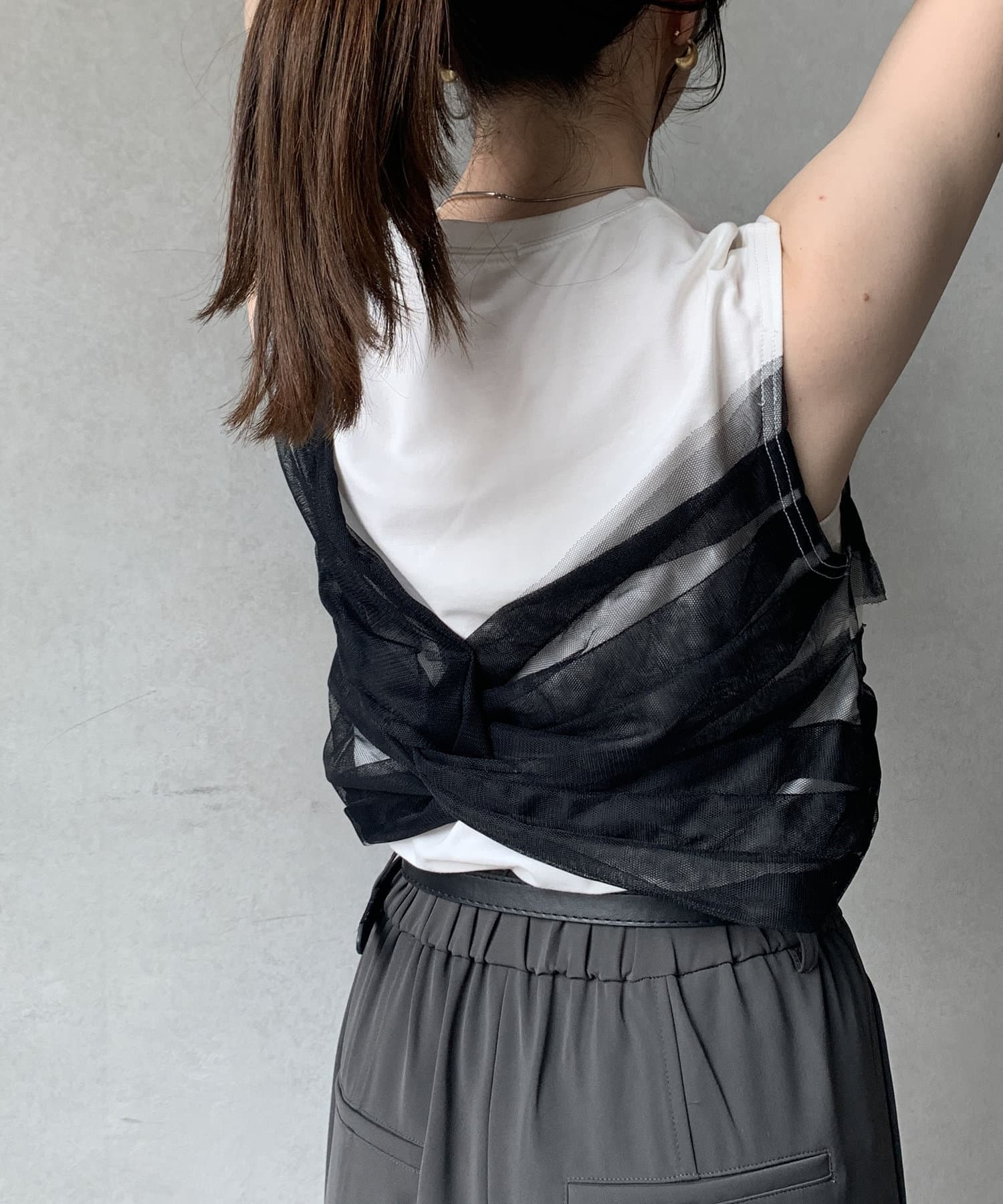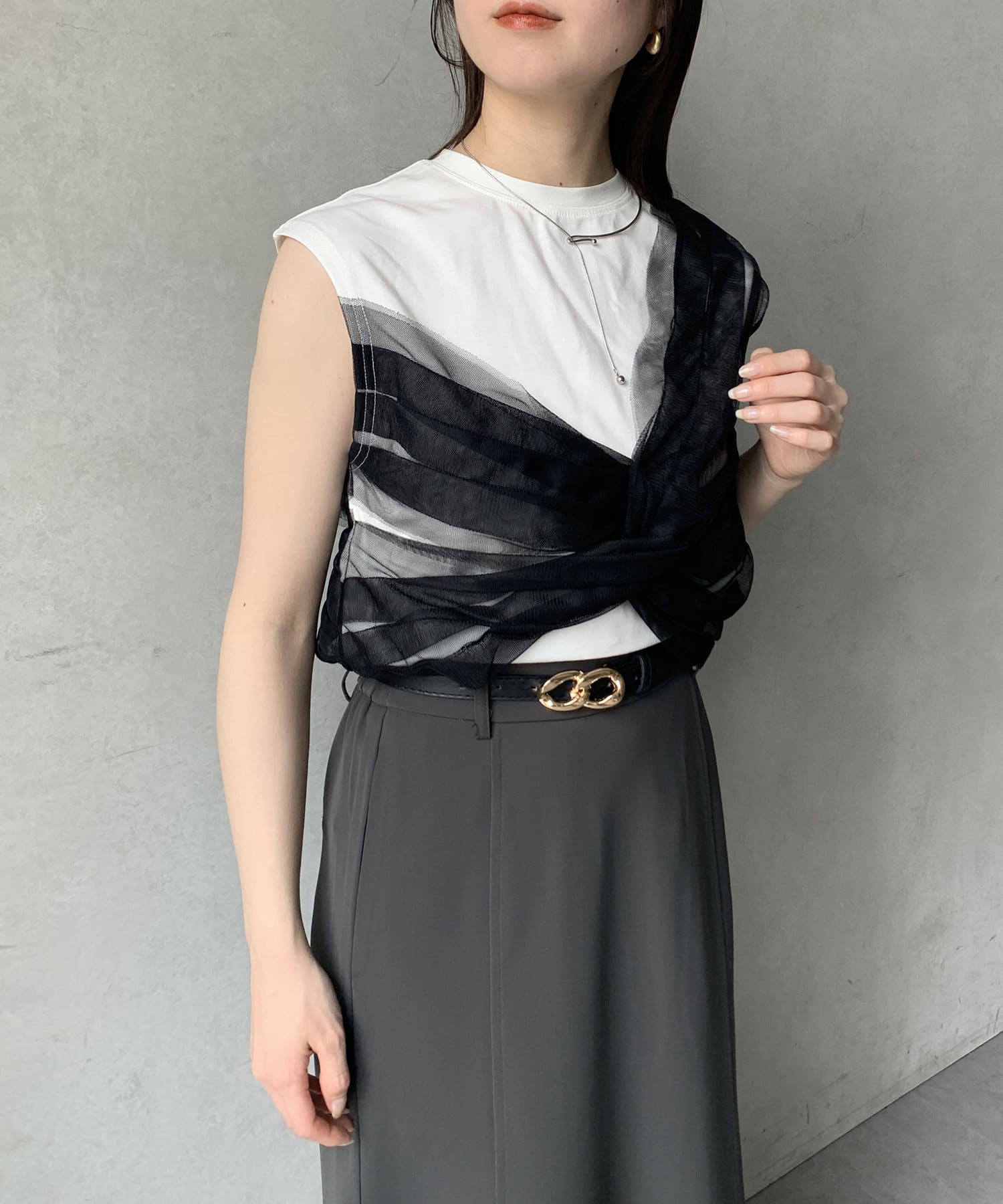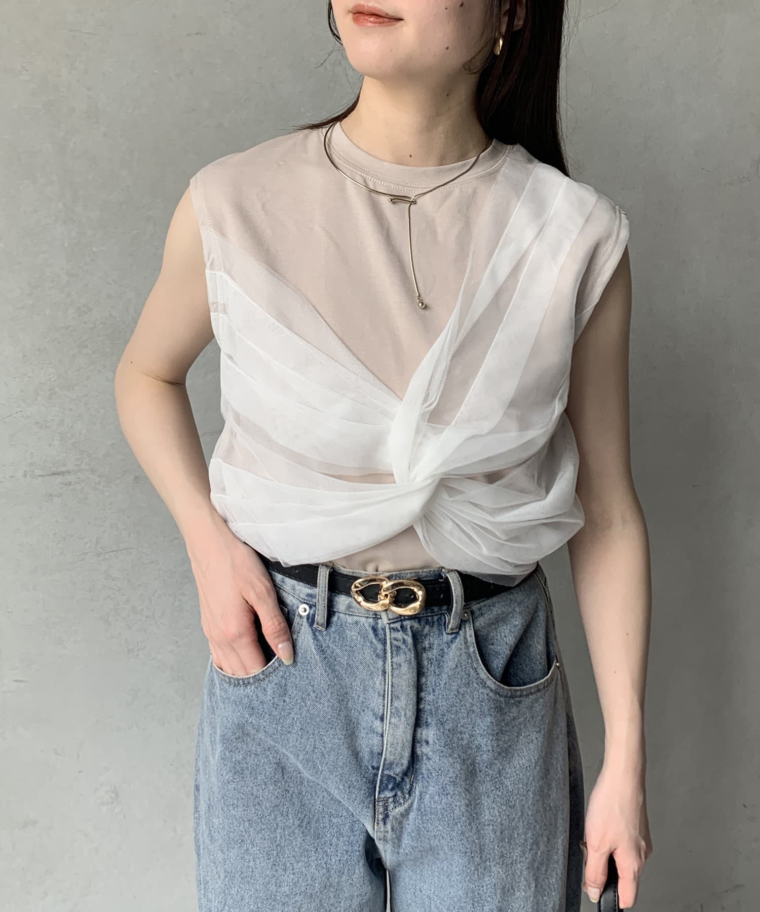 ツイストチュールドッキングノースリプルオーバー