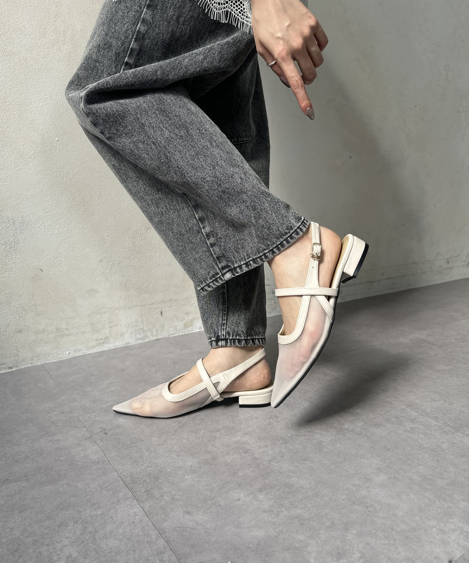 #ミュール #シアー #メッシュ #ストラップ #メッシュミュール