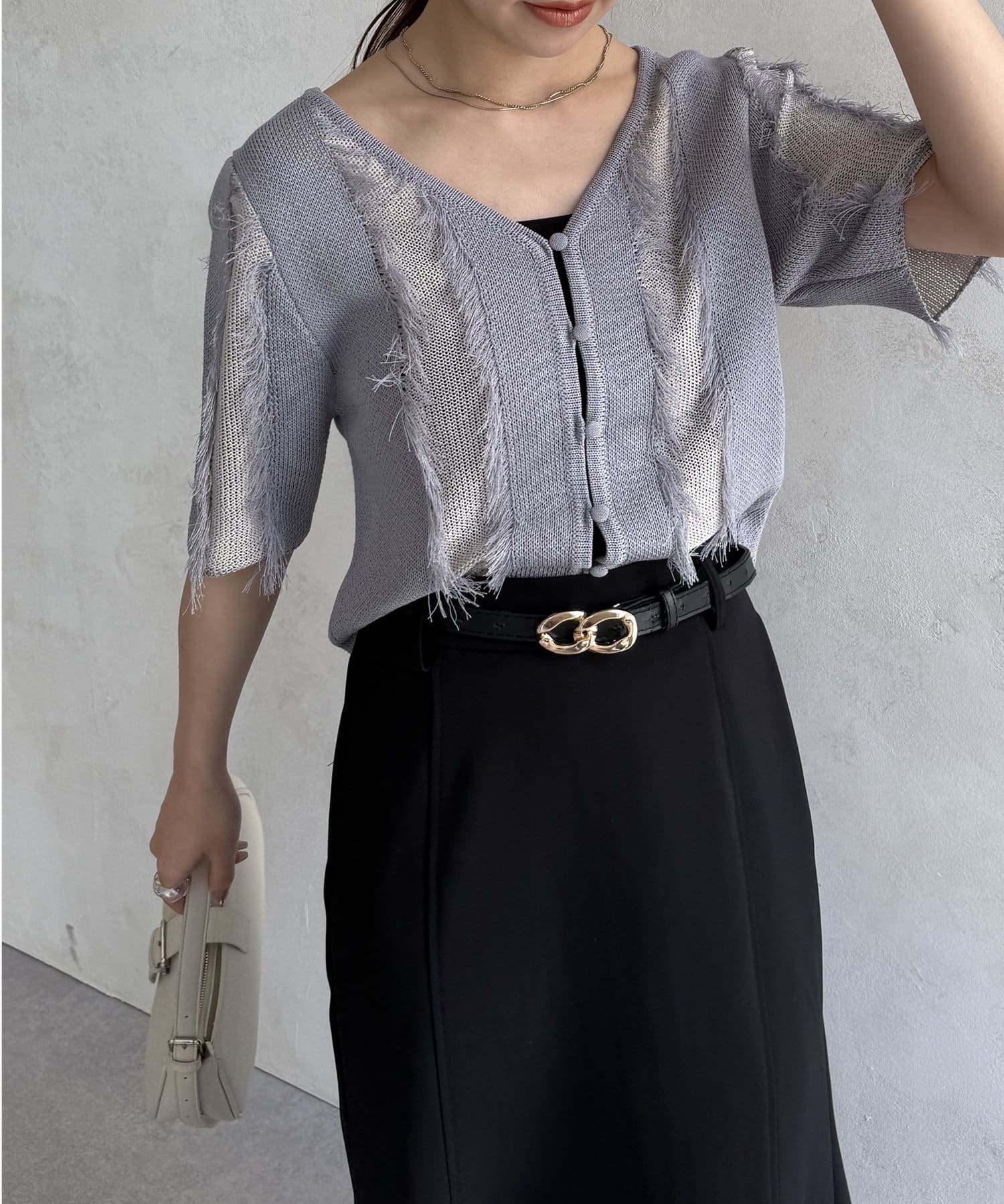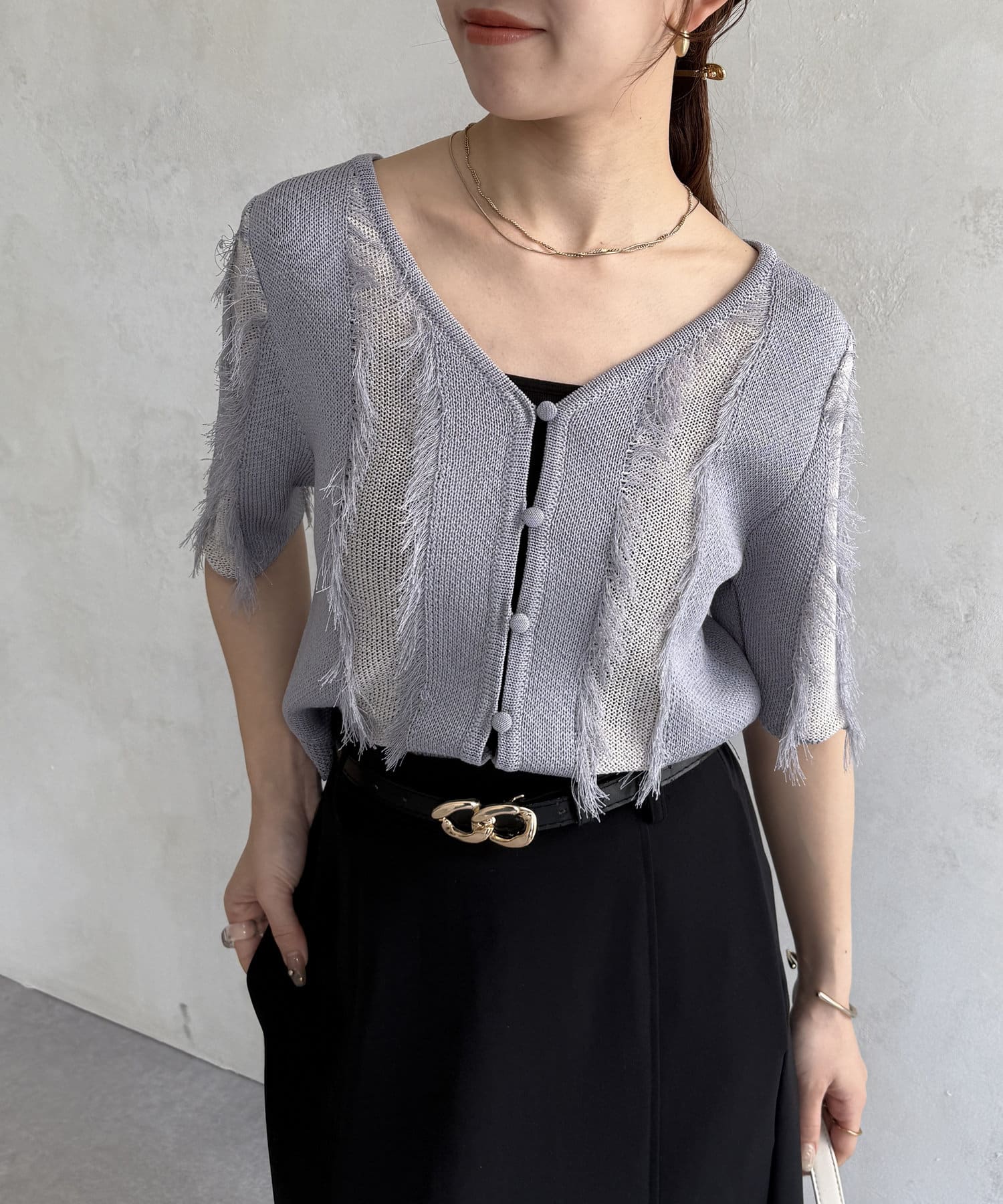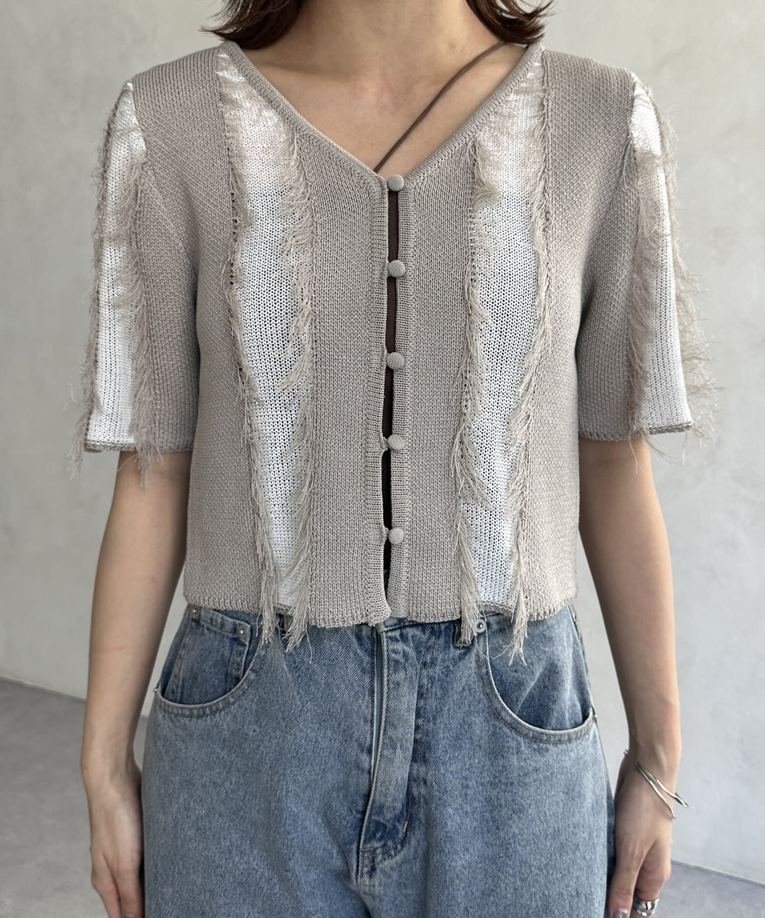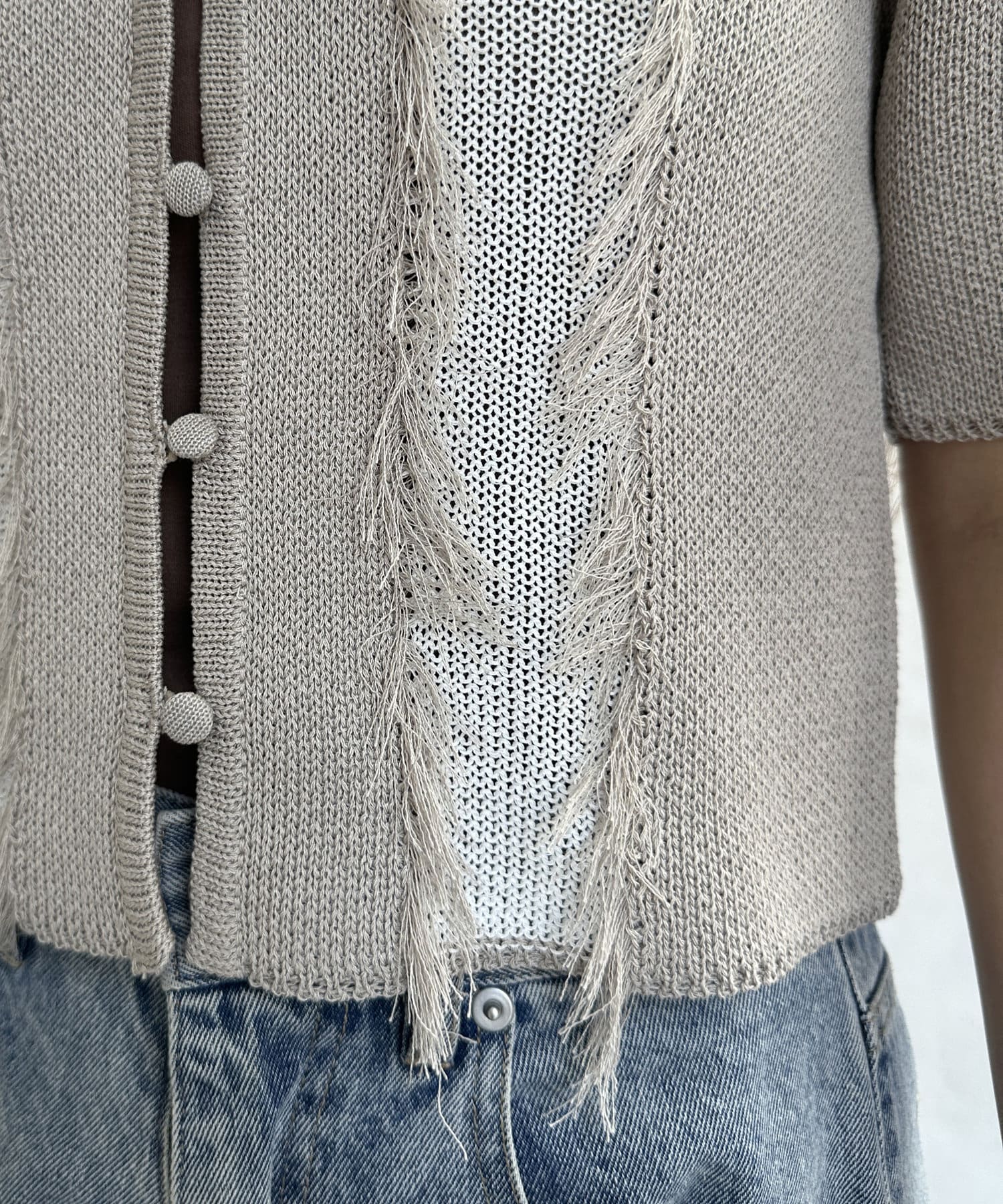 #カーディガン #ショート丈 #フリンジ #5分袖