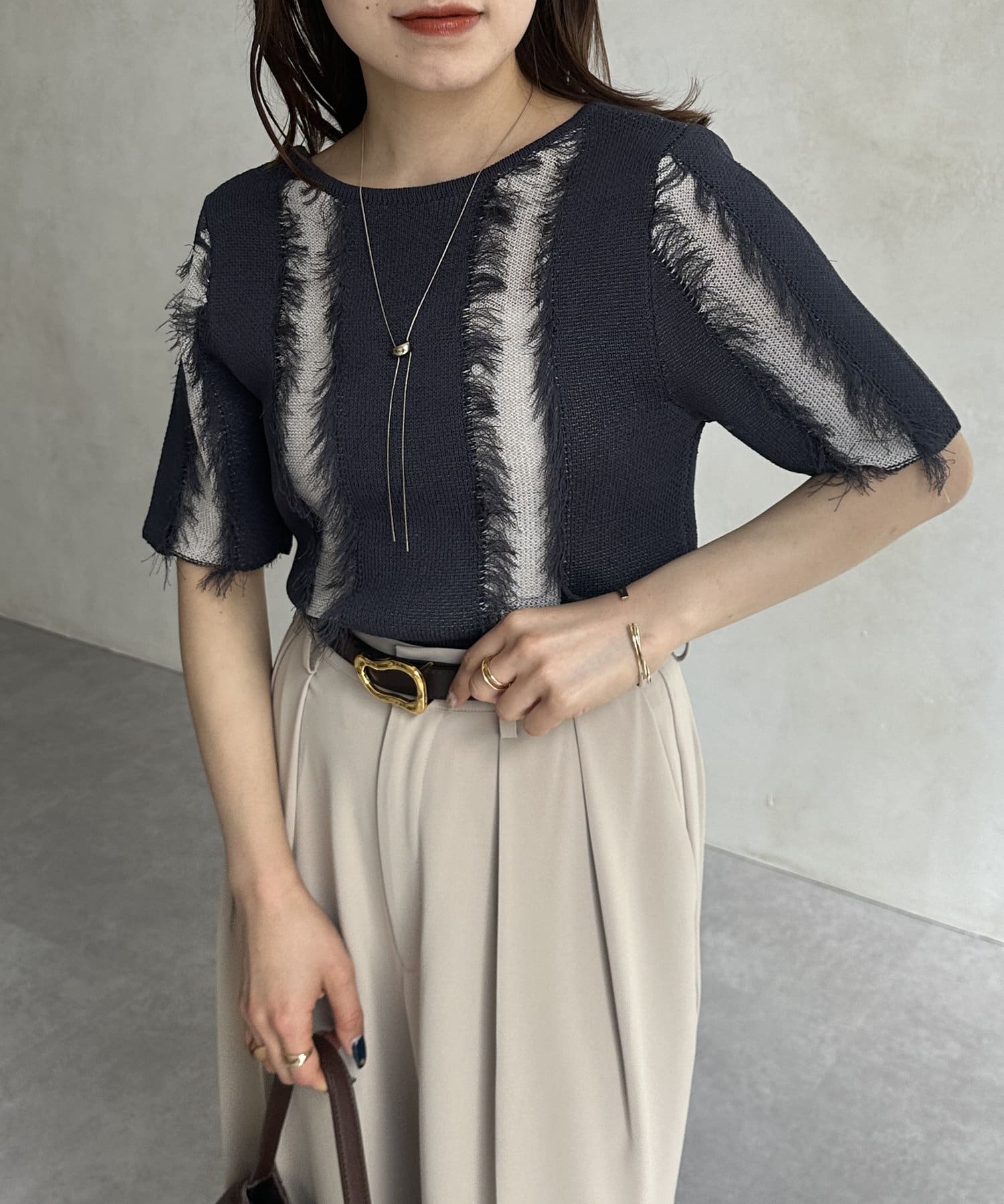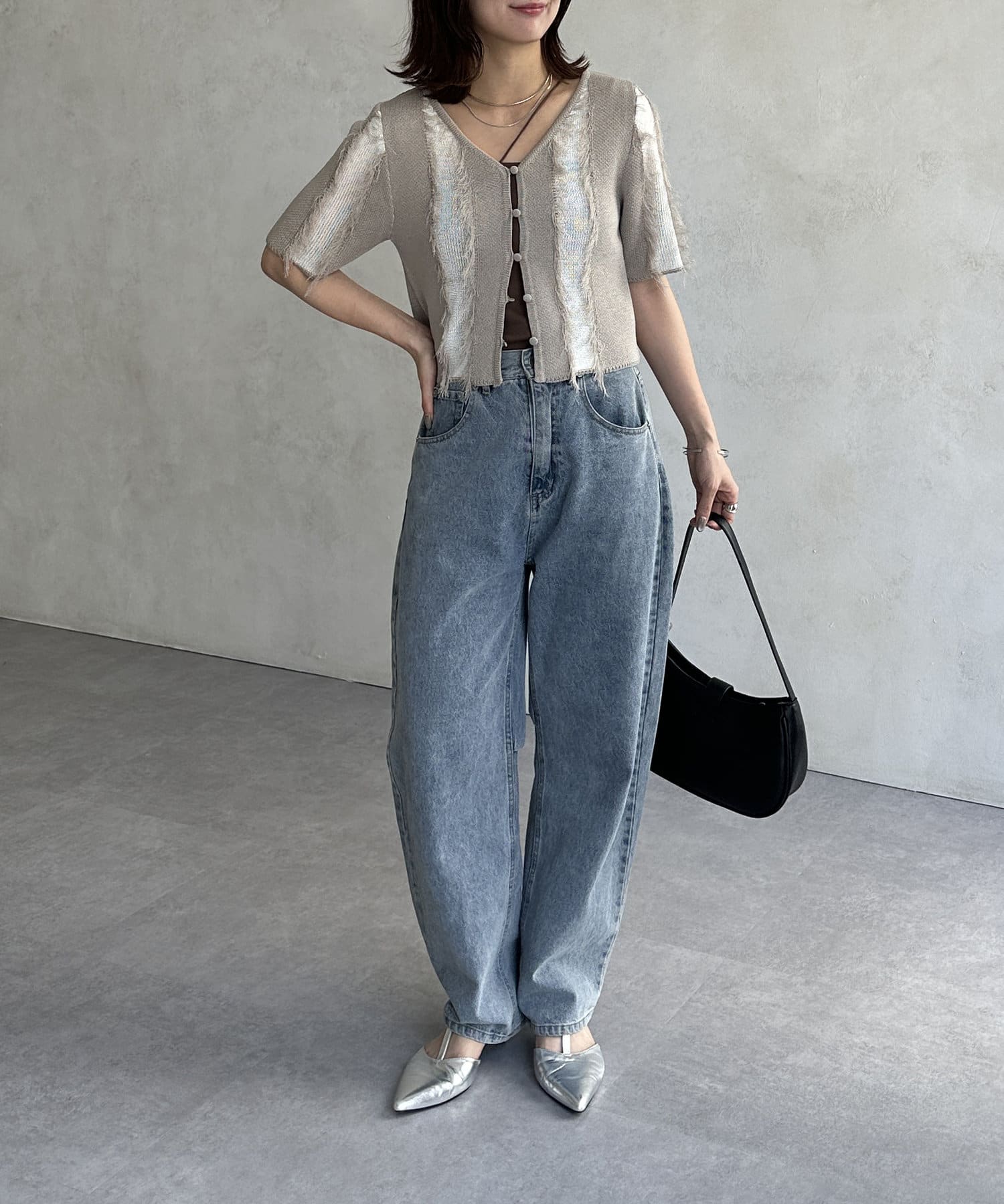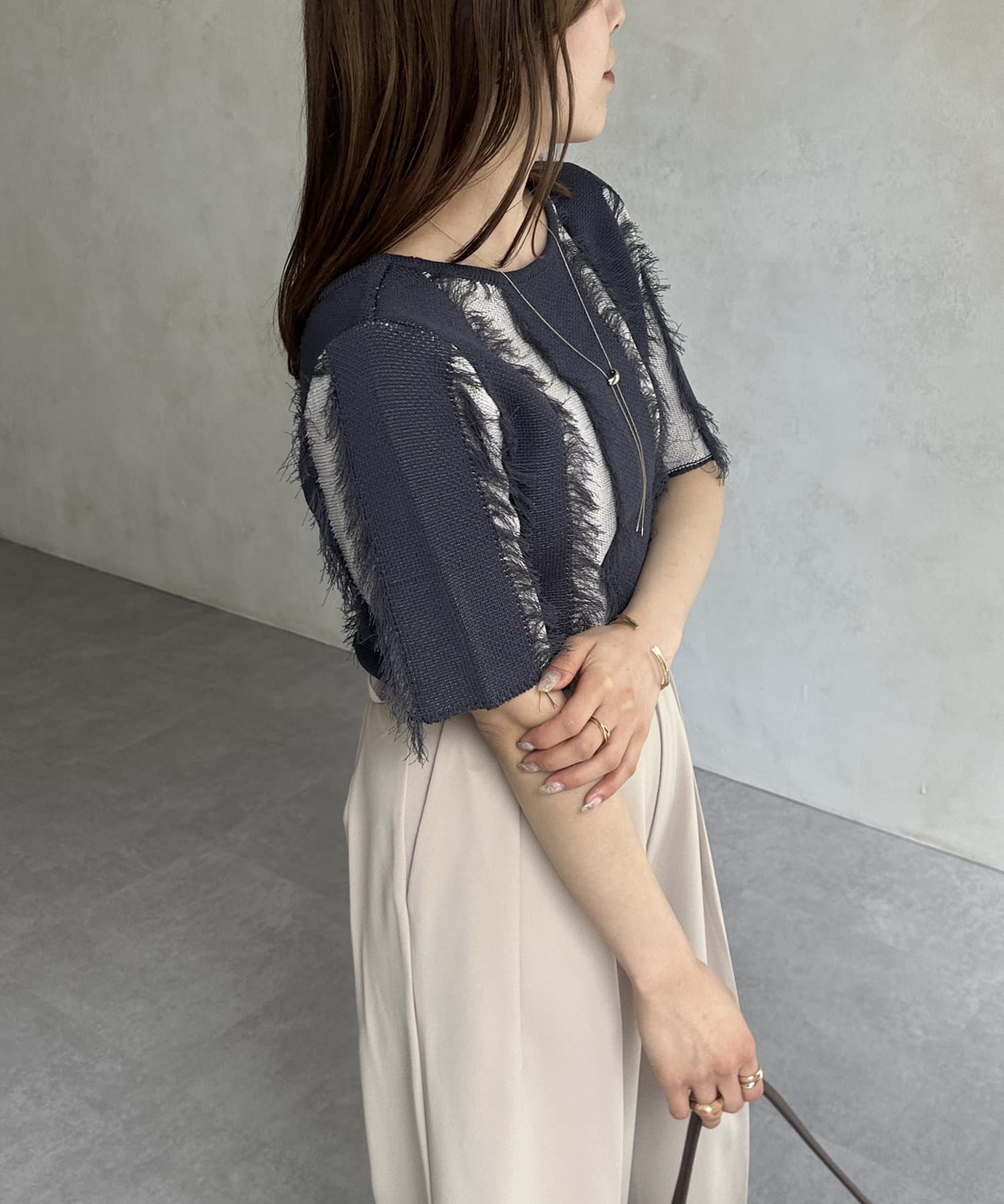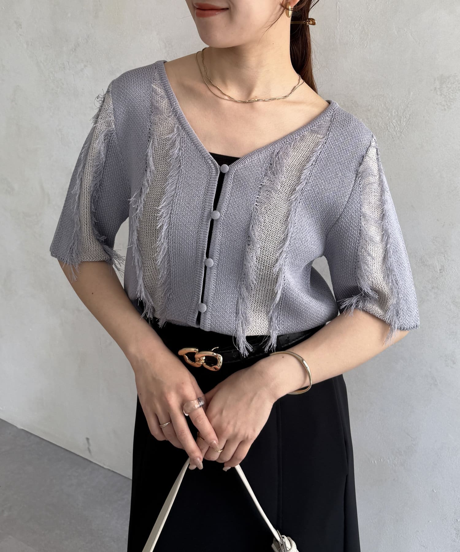 #カーディガン #ショート丈 #フリンジ #5分袖