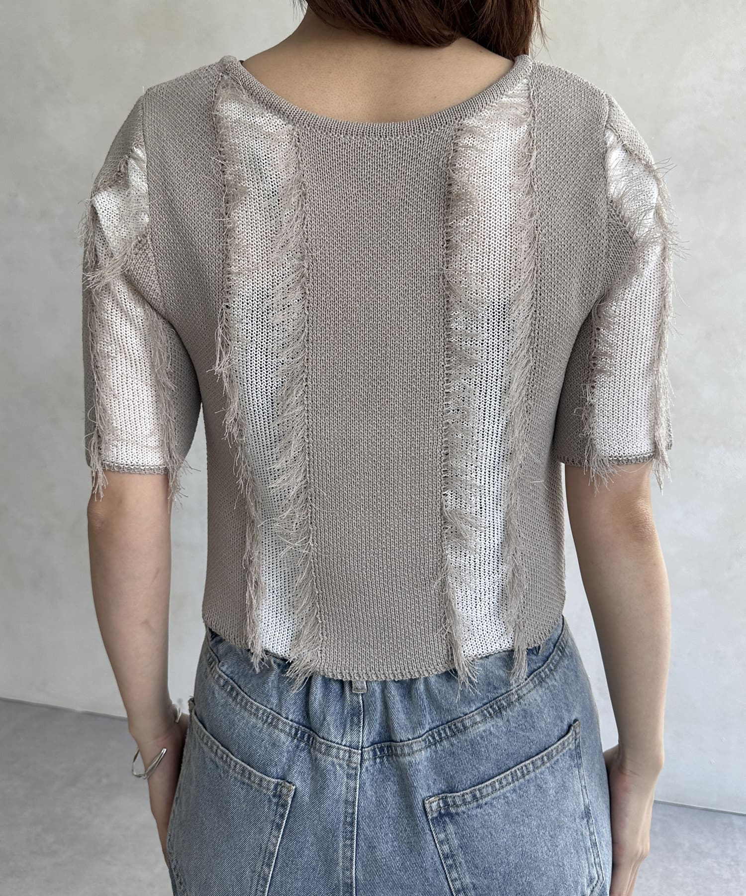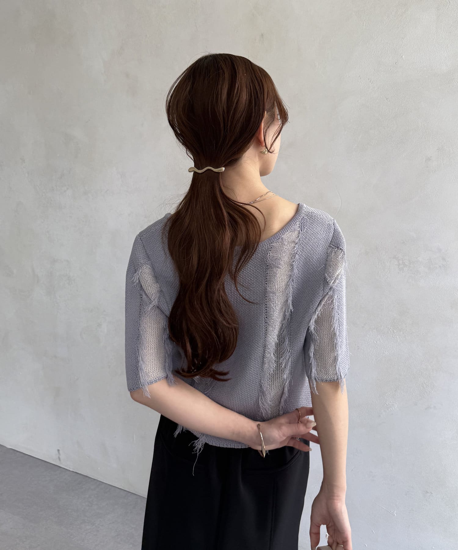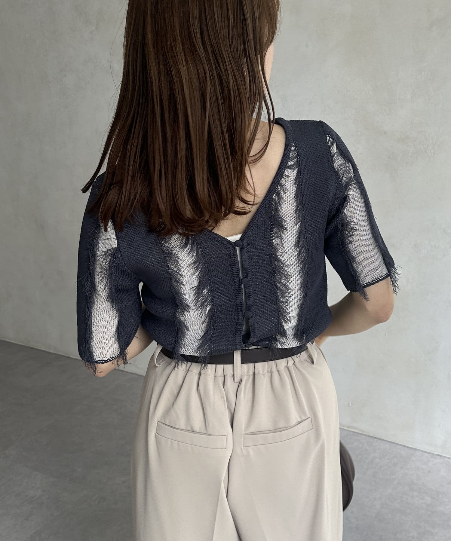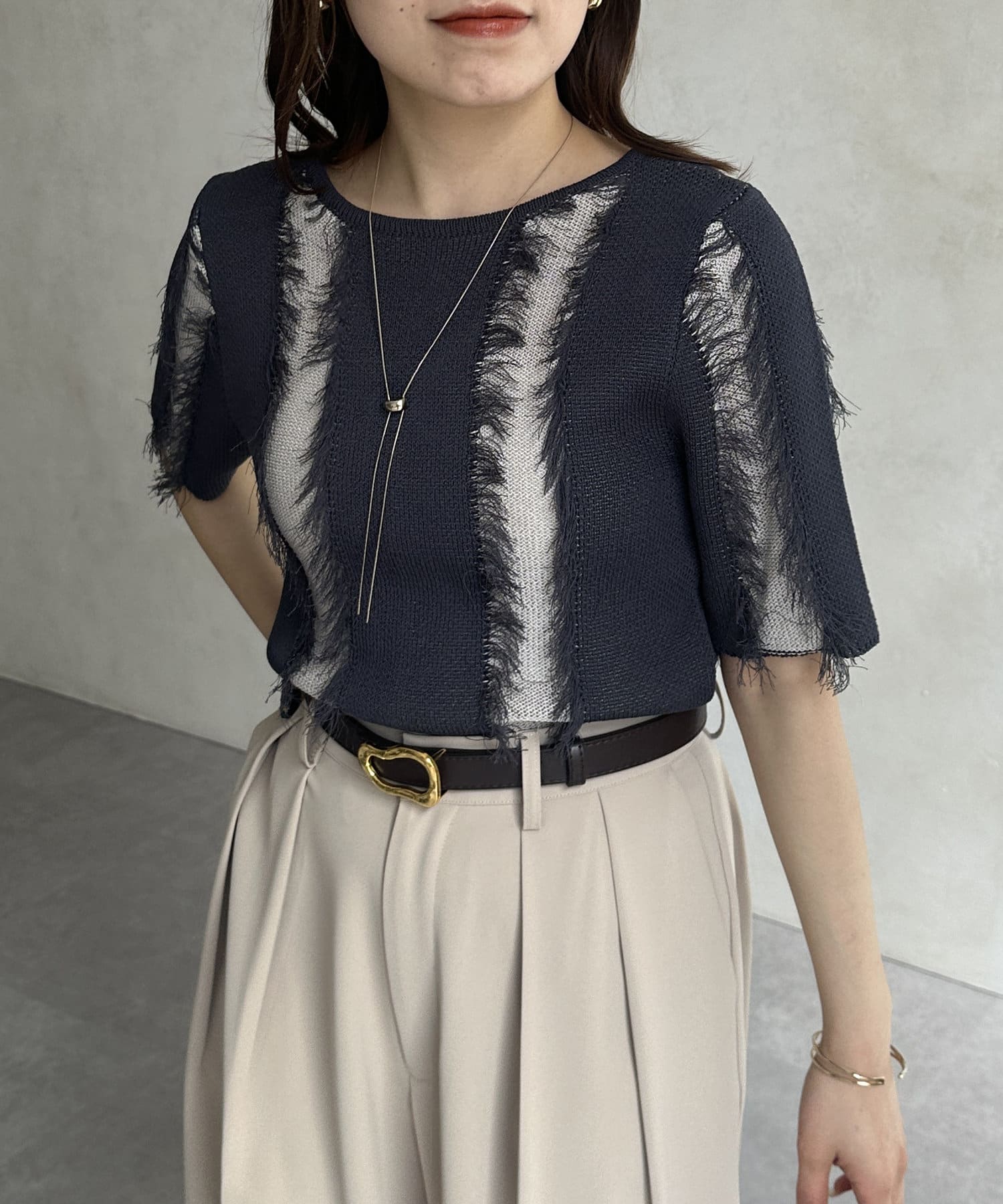 #カーディガン #ショート丈 #フリンジ #5分袖