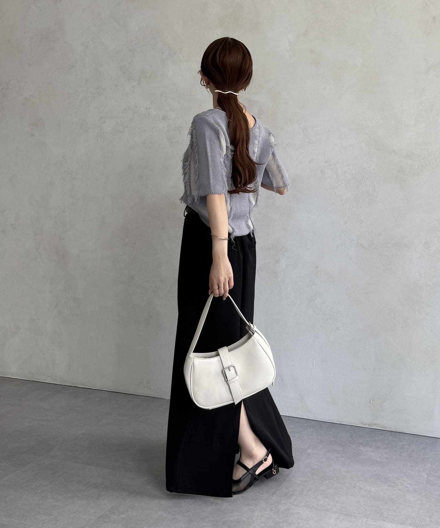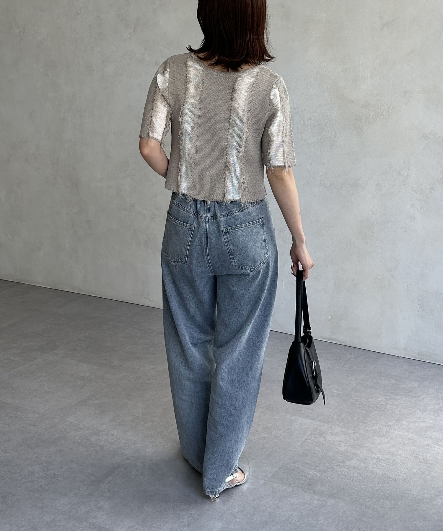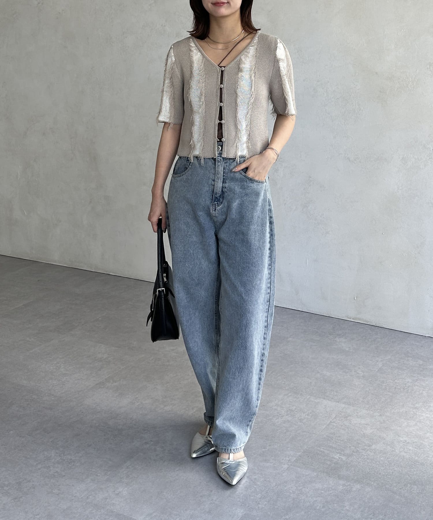 ・特徴的なフリンジデザインはカジュアルなデニムで