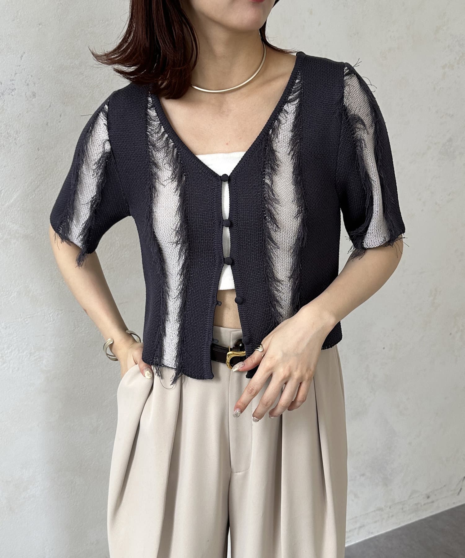 ・フリンジやフレンチスリーブが特徴的なカーディガン