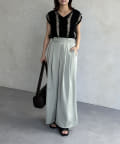 ・デザイン性のあるトップスには、タックパンツやスラックスと合わせて、