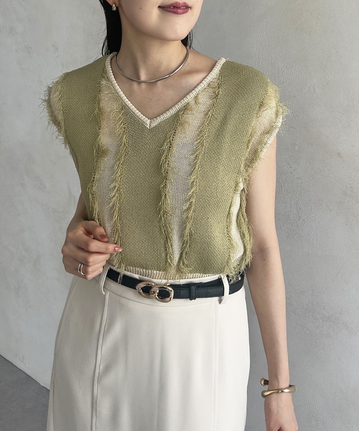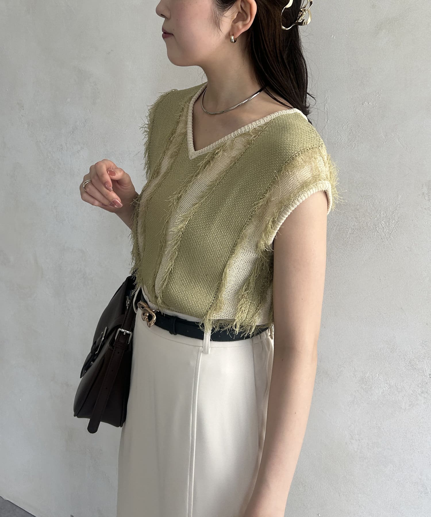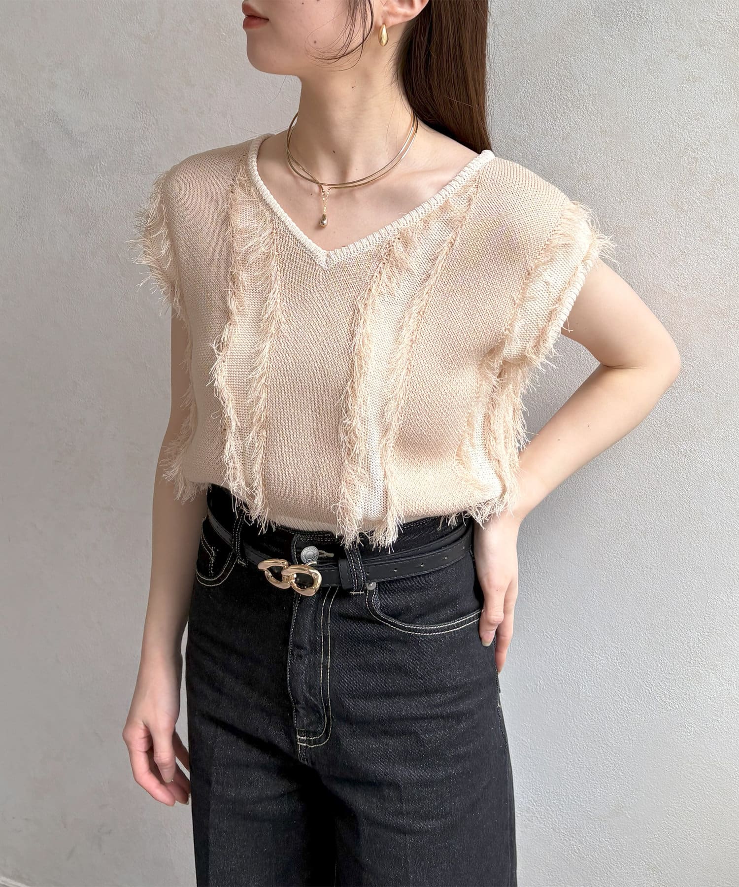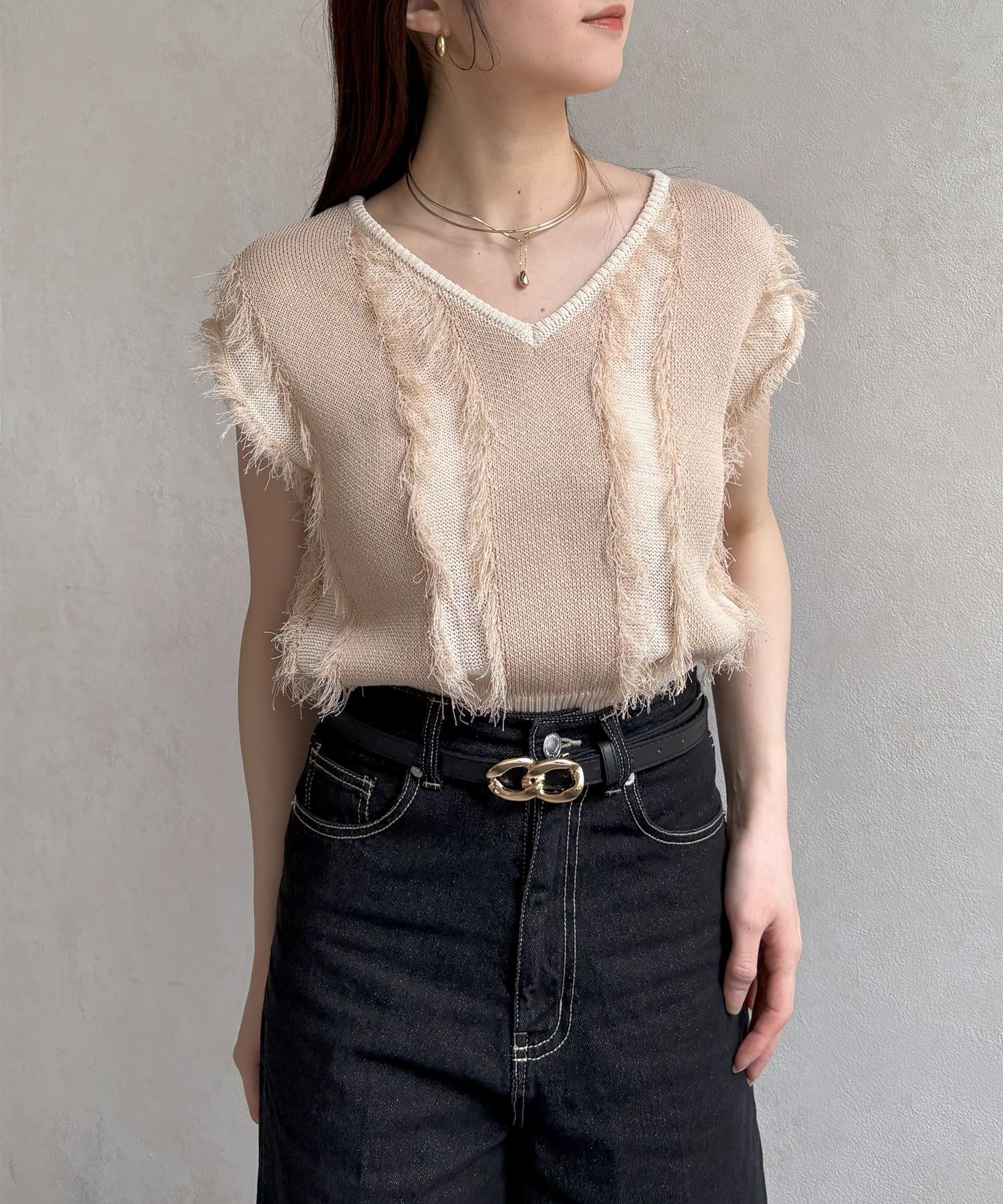 #フリンジ #2WAY #ニット #春ニット #カジュアル #春夏コーデ #トレンド