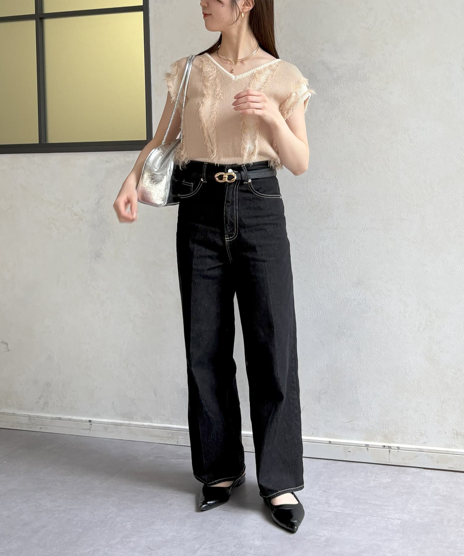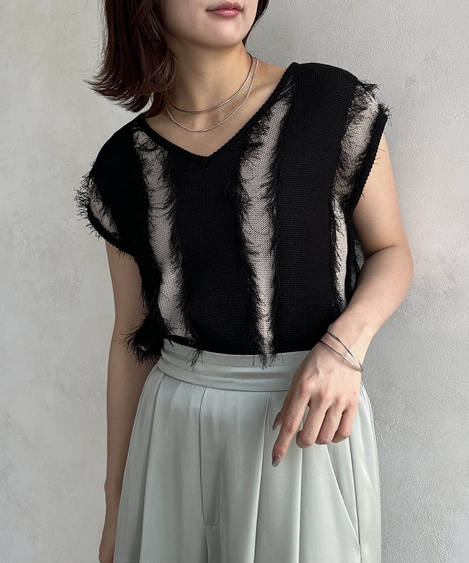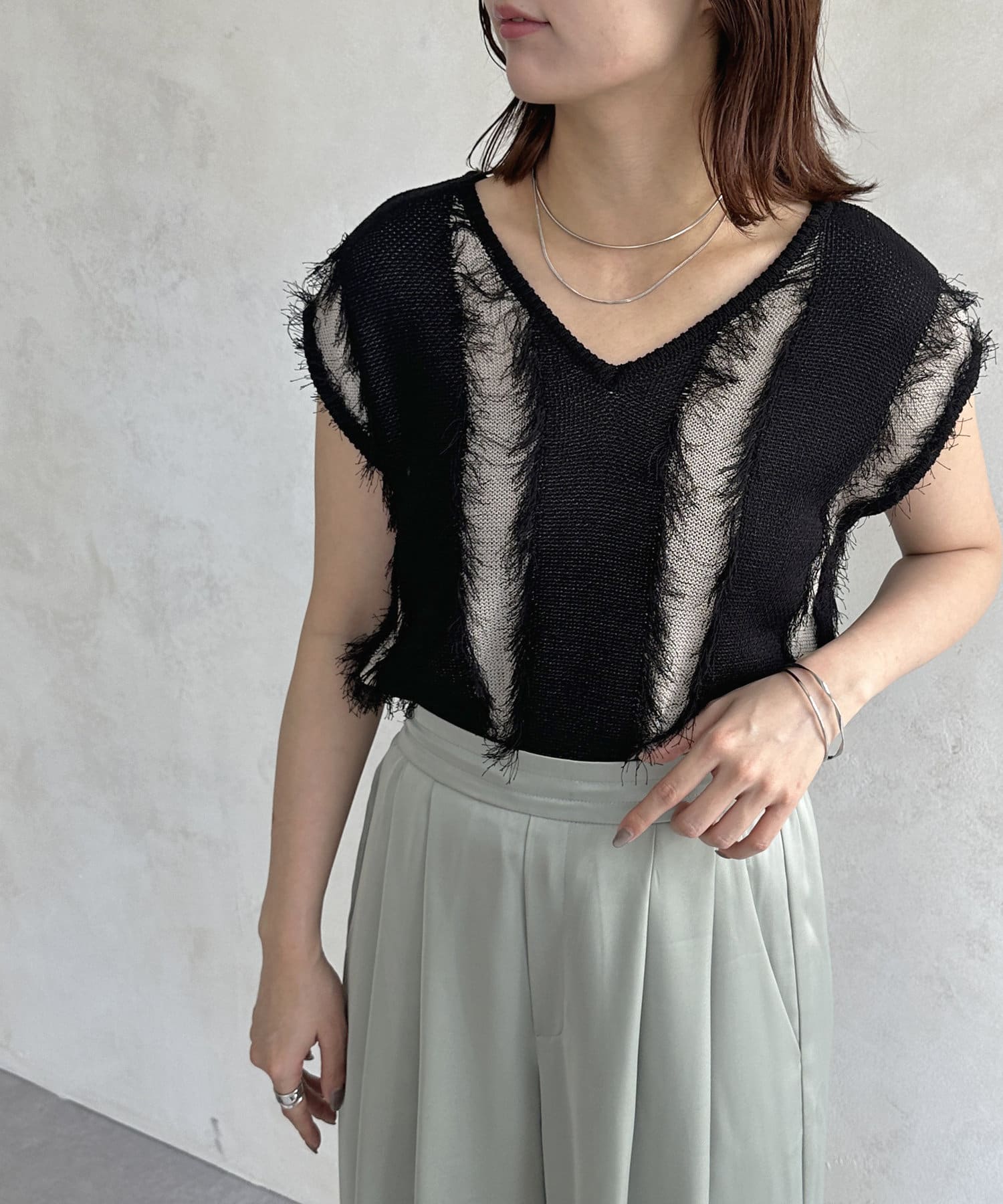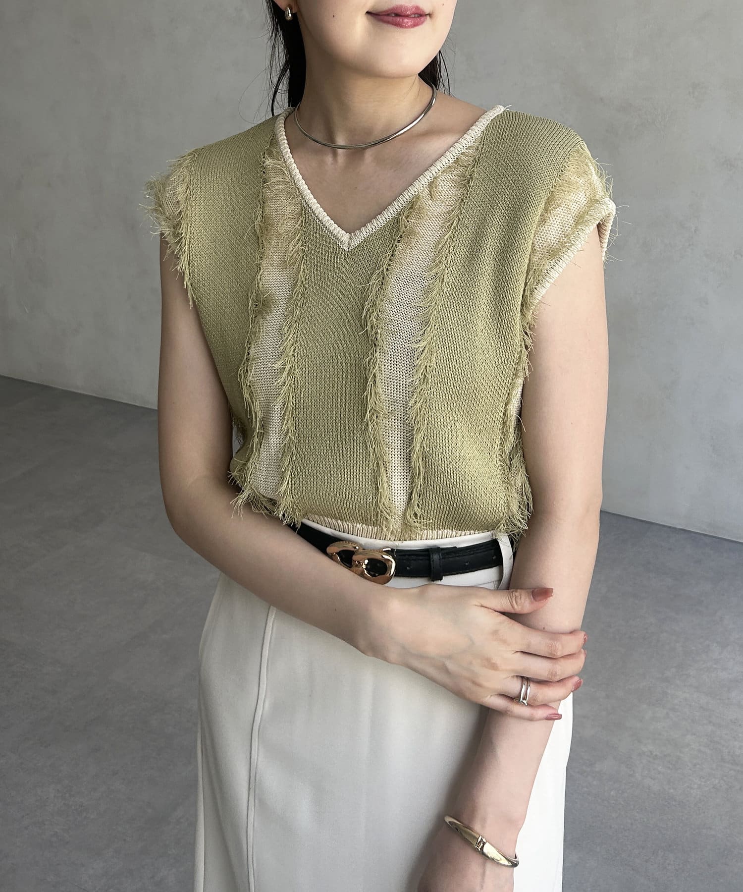 #フリンジ #2WAY #ニット #春ニット #カジュアル #春夏コーデ #トレンド