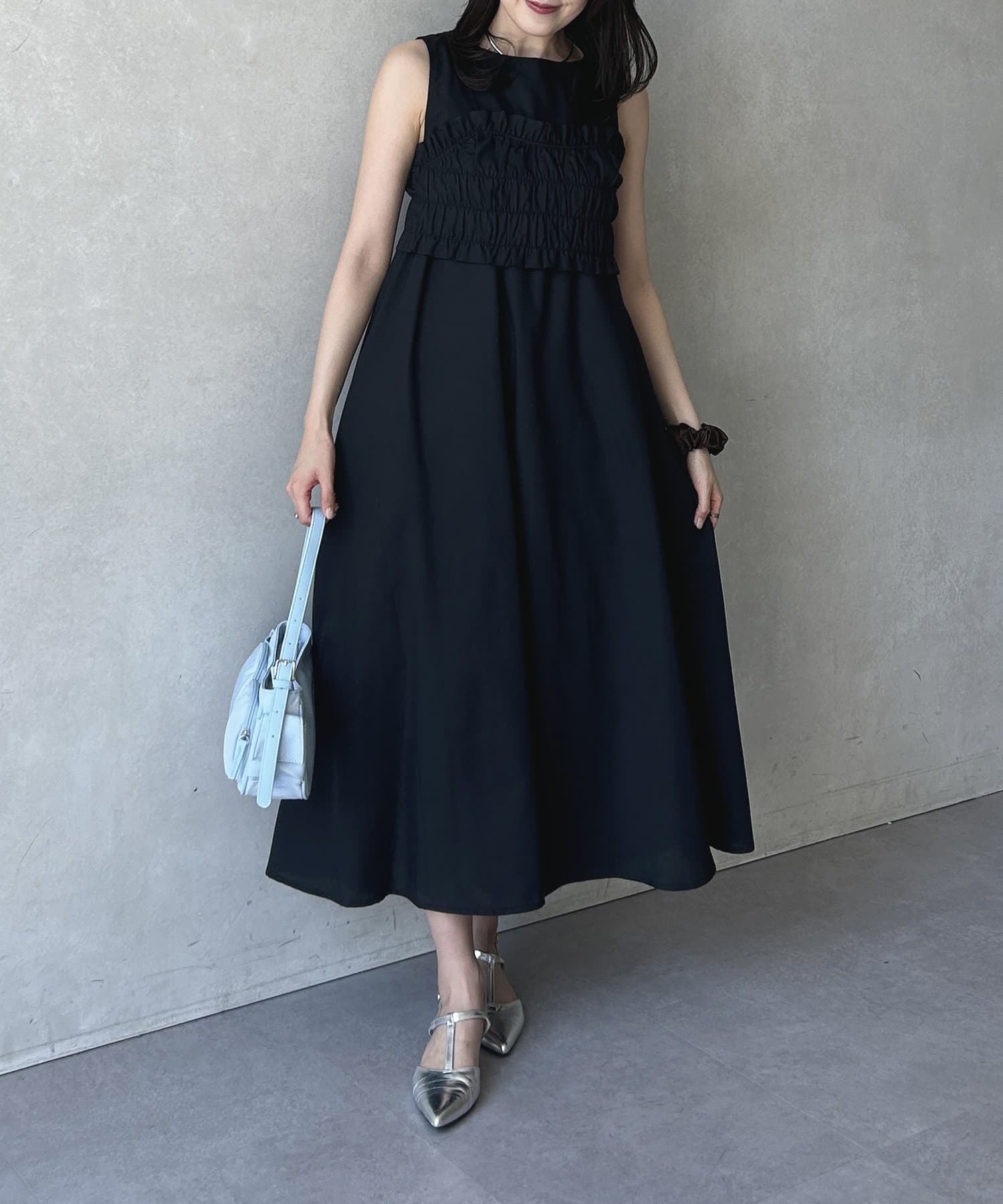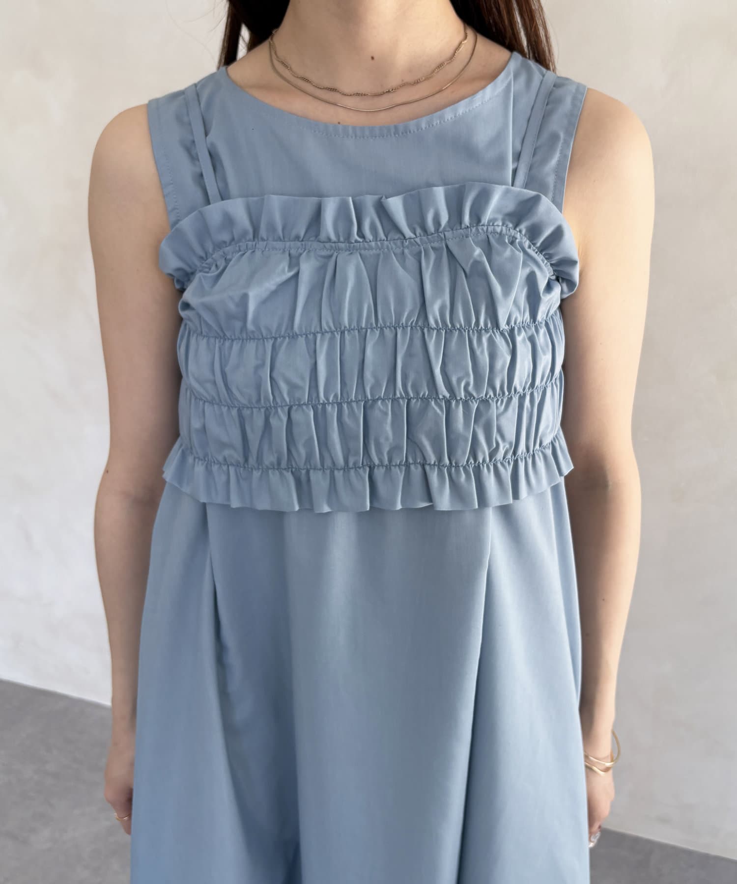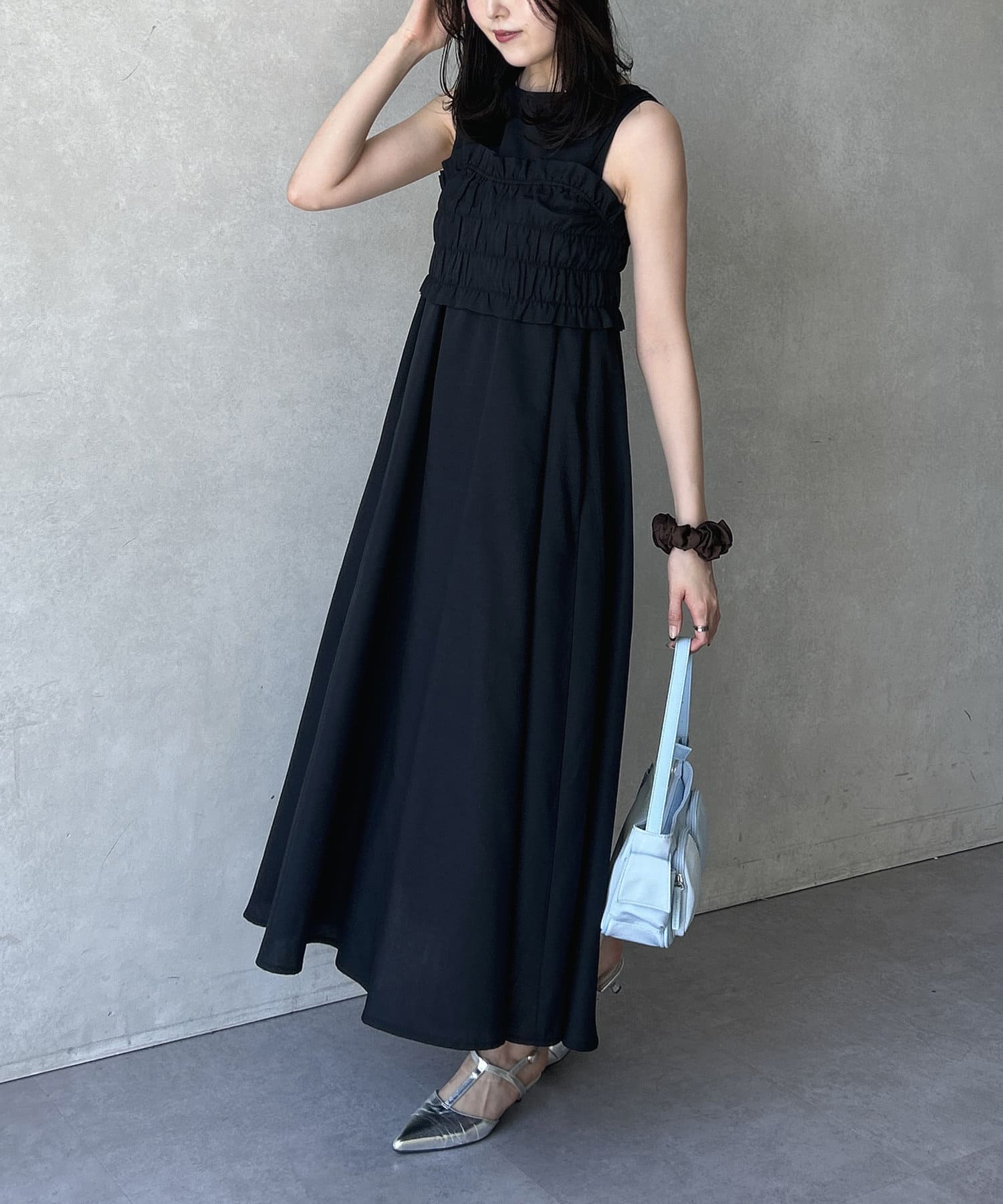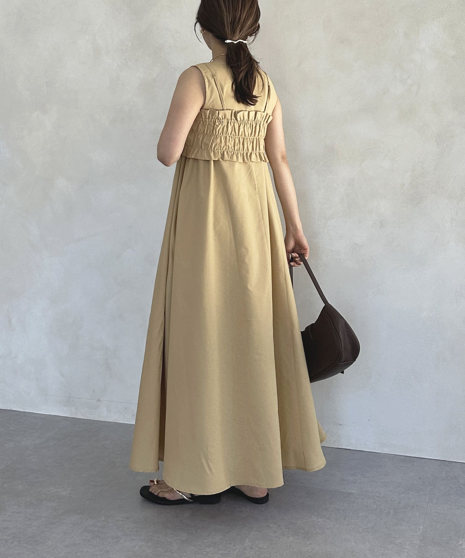 #シャーリングビスチェ #ノースリワンピース #セットアップ #レイヤード
