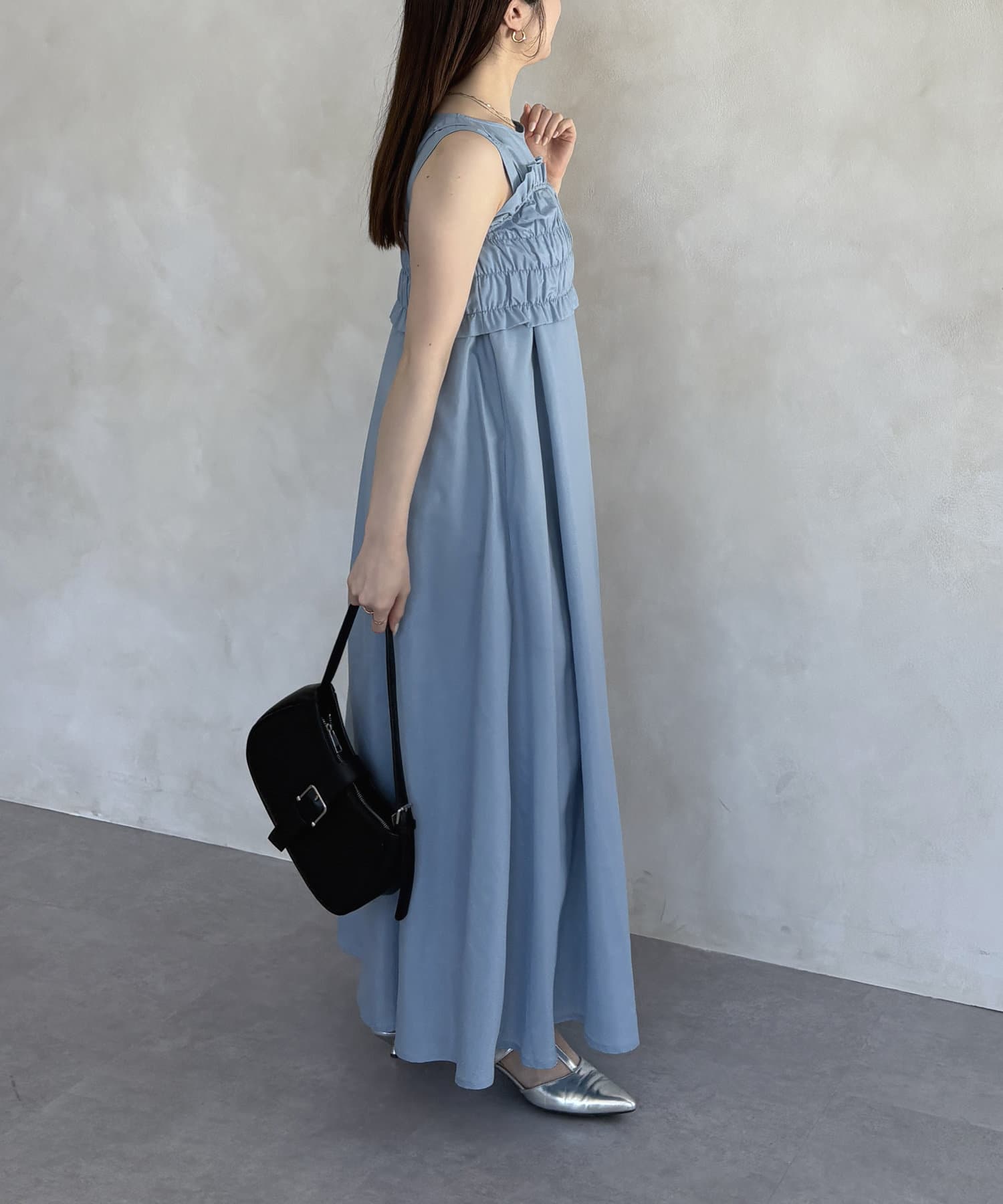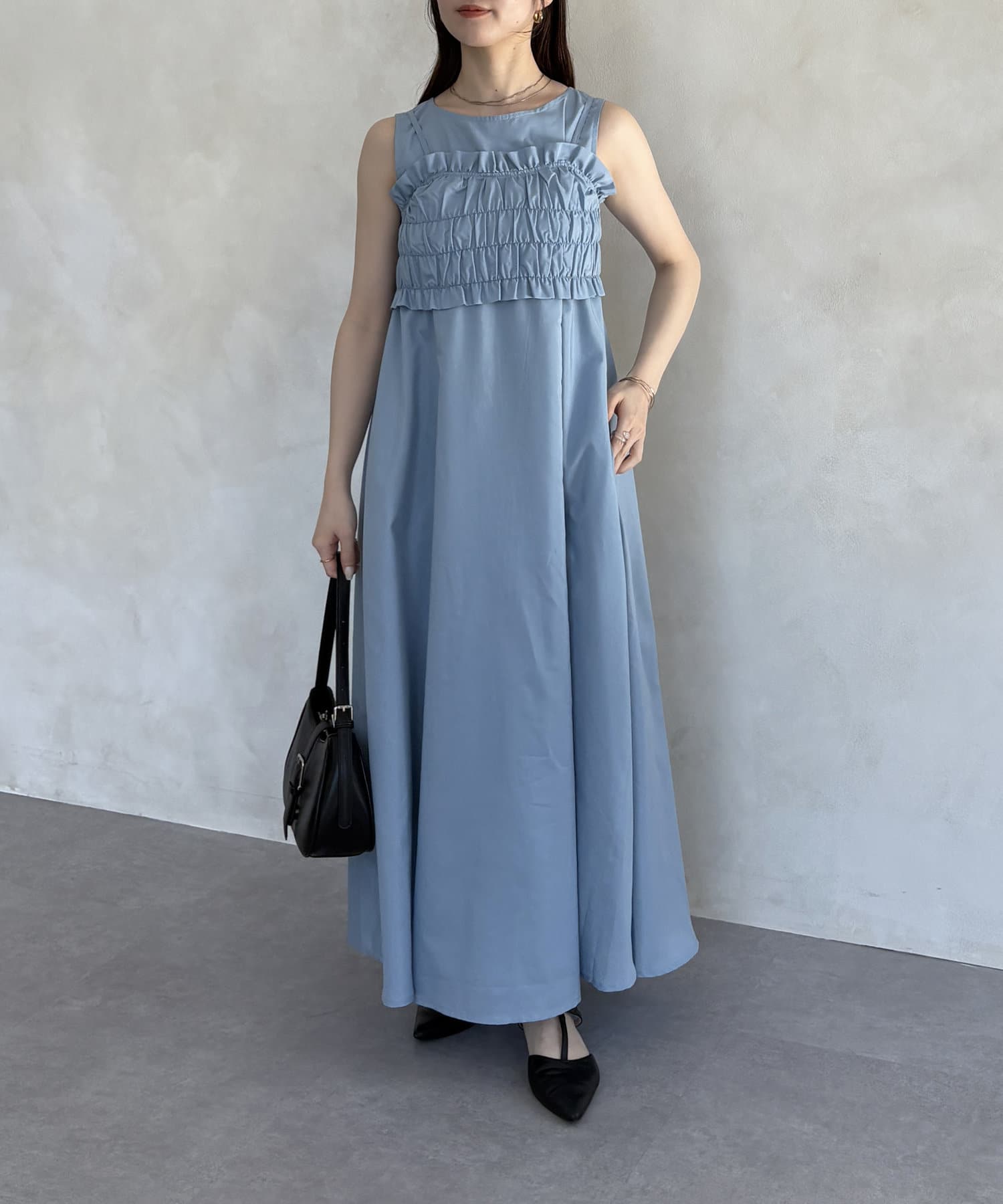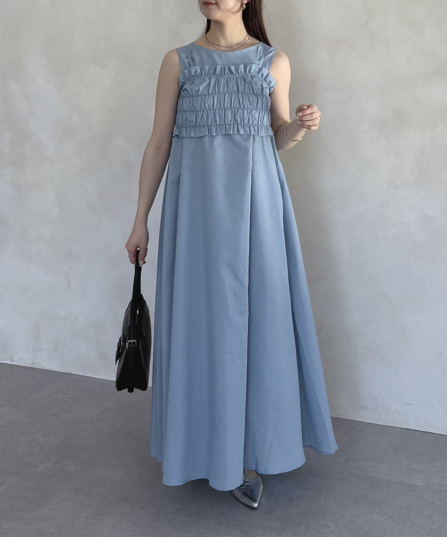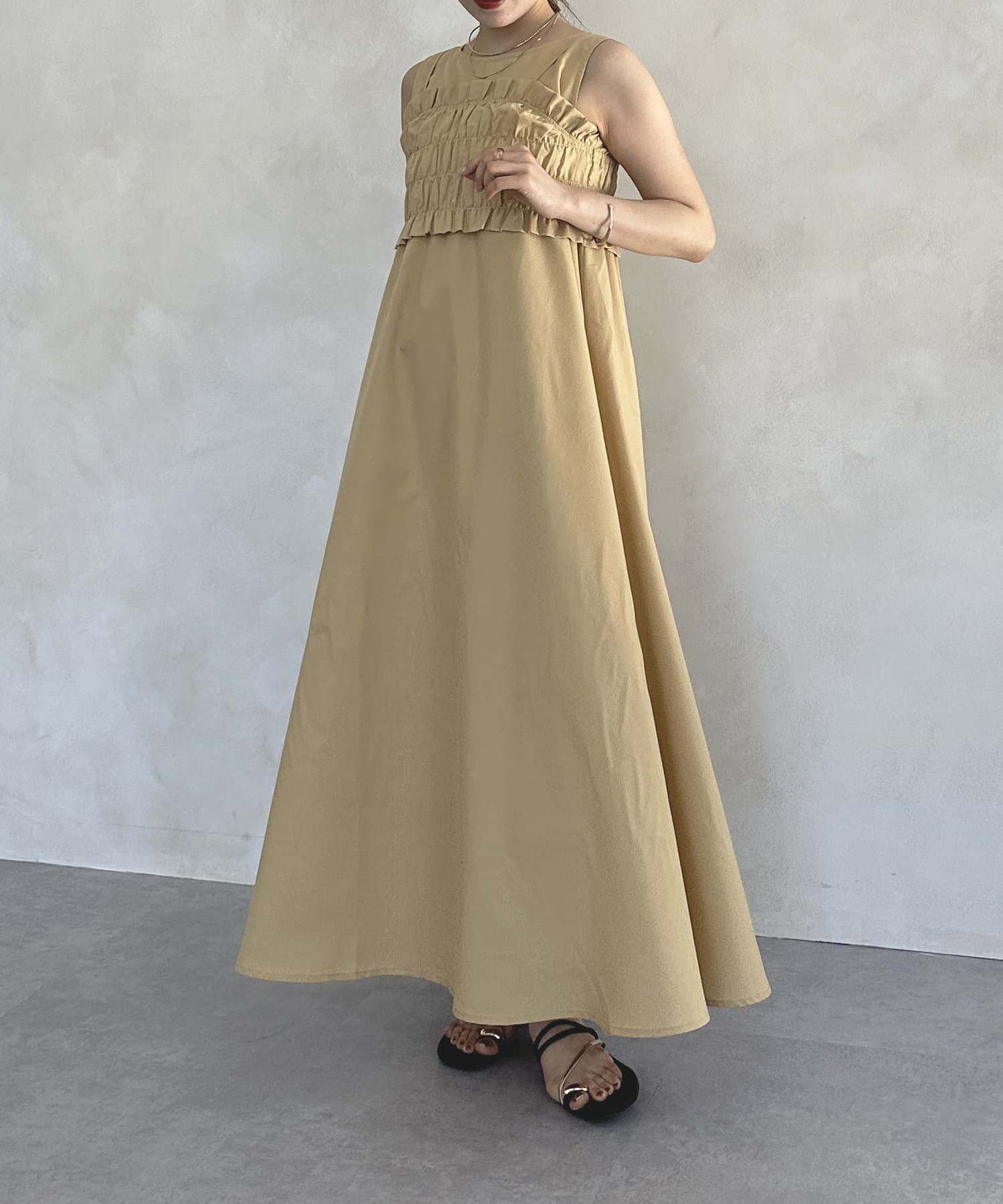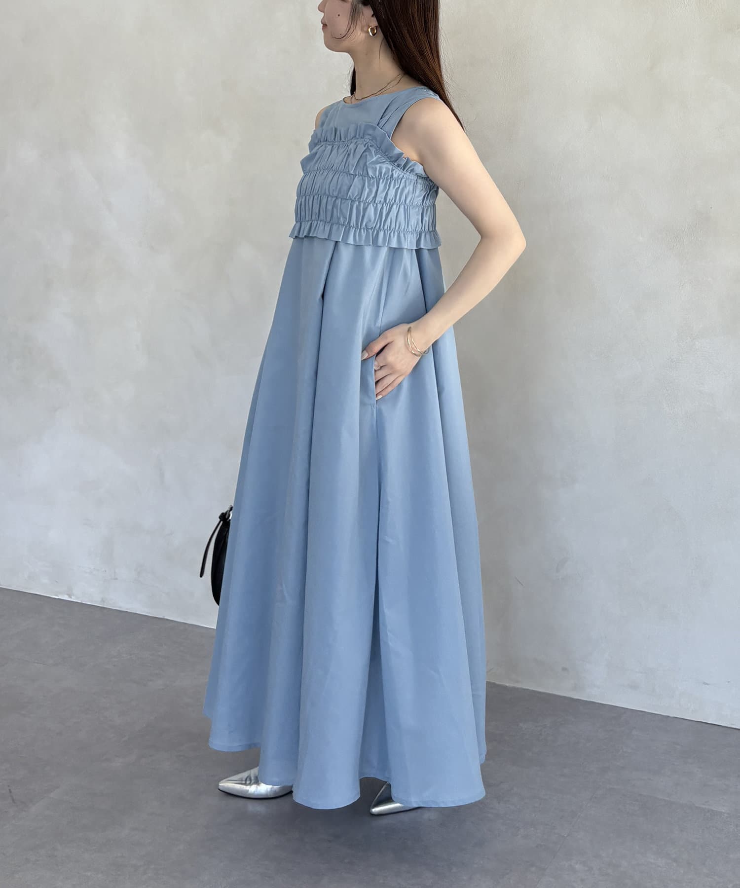 #シャーリングビスチェ #ノースリワンピース #セットアップ #レイヤード